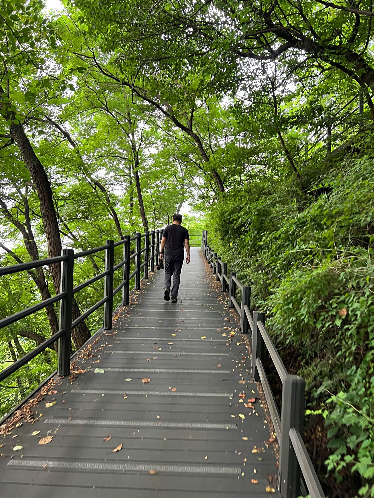 안산자락길은 사진에 보이듯이 데크로 이어져 있어 걷기에 편합니다. 생각보다 너무 잘되어 있어서 감탄하면 걸었습니다.