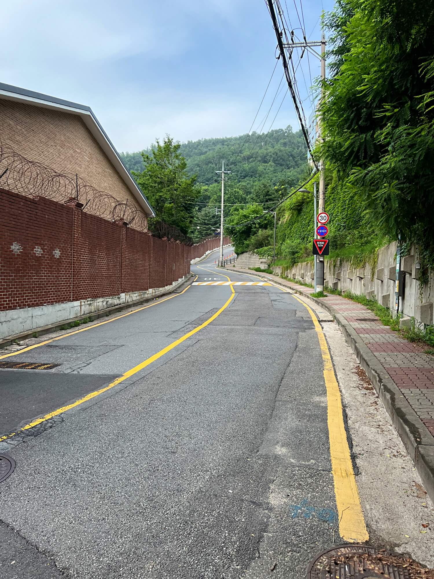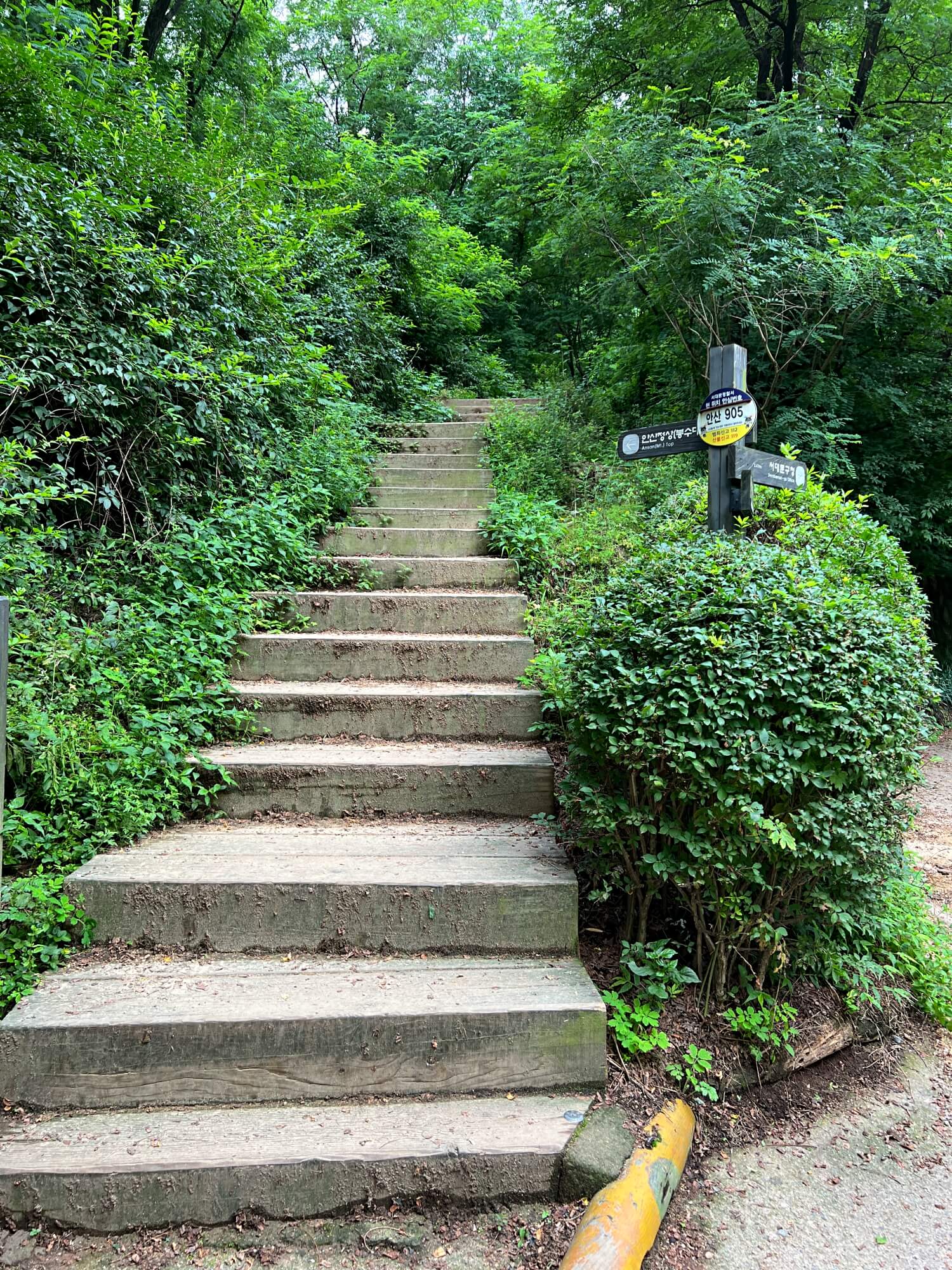 계단을 올라오니 넓은 도로가 이어졌습니다. 좀 지루하고 심심한 길인데 안산으로 가는길은 맞습니다. 조금만 올라가면 이정표가 나오는데 쉽게 찾을 수 있습니다. 표지판이 잘 안내되어 있어요.