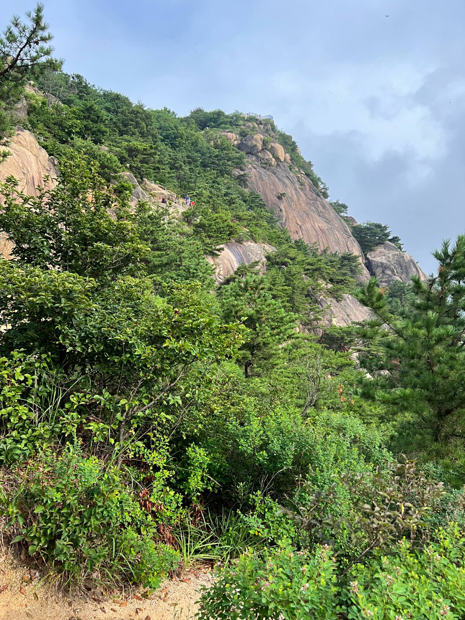 안산은 사진에 보이듯이 절벽으로 되있습니다. 보기엔 어려운 산처럼 보이지만 등반로는 잘되어 있어 올라가기엔 무리없습니다.