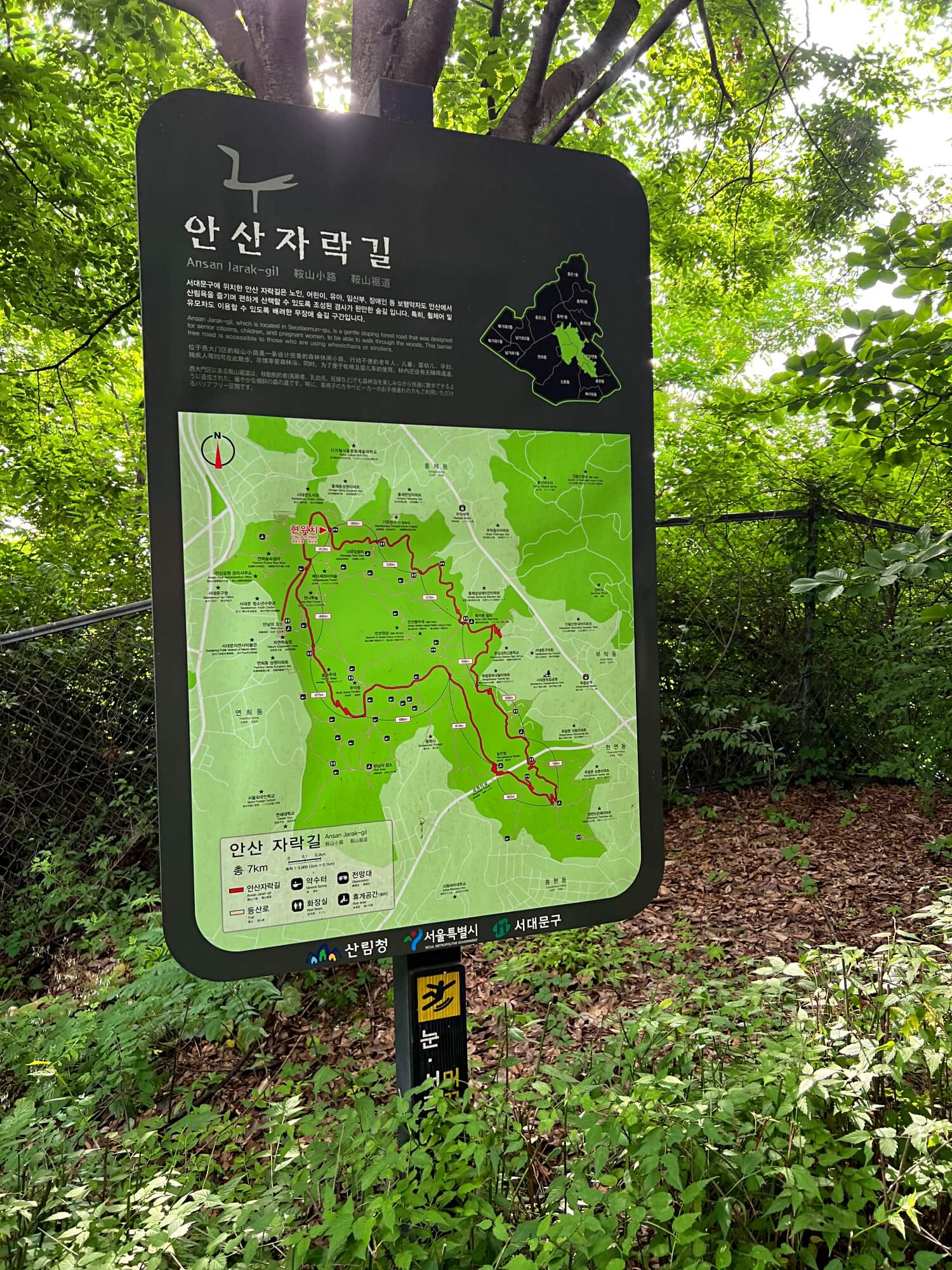 안산 자락길은 총 7km의 길이로 넉넉잡고 2시간내에 완주할 수 있는 코스입니다. 시작구간이 사람마다 달라서 정확한 입구를 찾아 다녀온 독립문역 5번출구만 이야기해봤습니다. 내려온 방향도 독립문 근처였고 올라갔던 방향과는 조금 다른 곳이었습니다. 갈라지는 길들이 많아 헤멜수도 있는데 차를 가지고 온 게 아니라면 어디로든 내려와도 상관 없을 듯합니다.