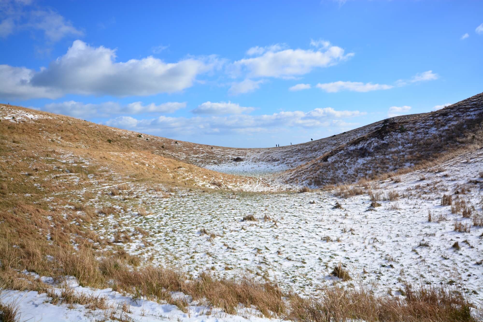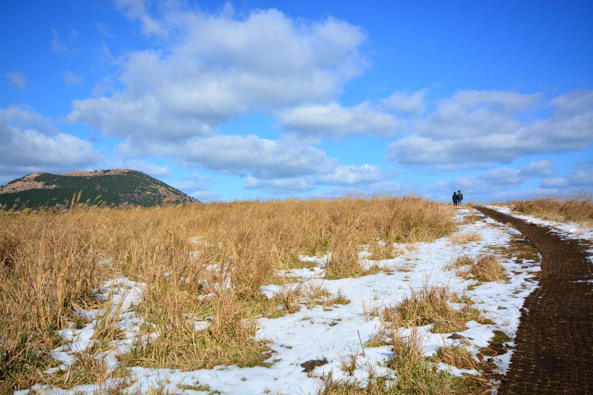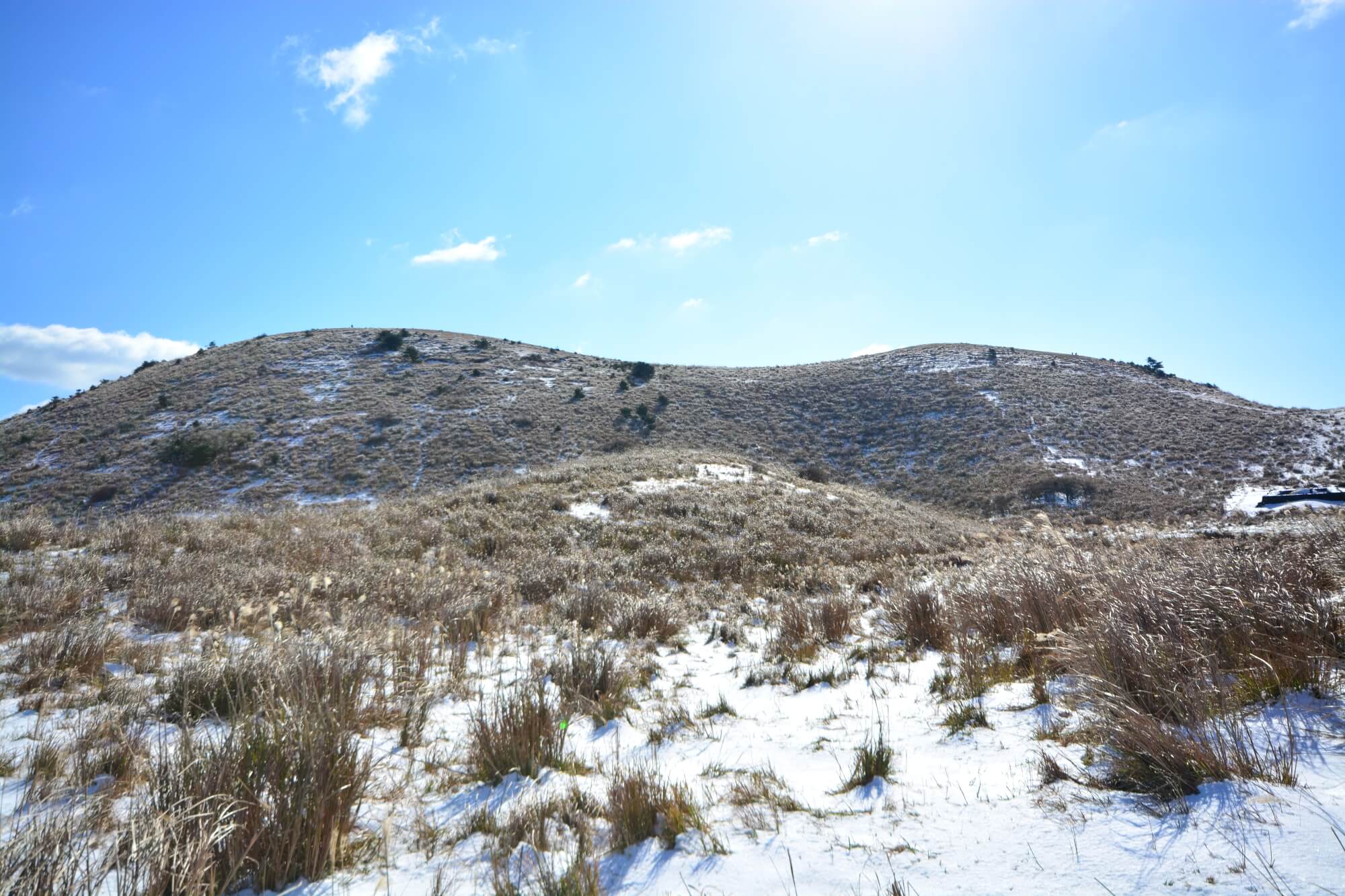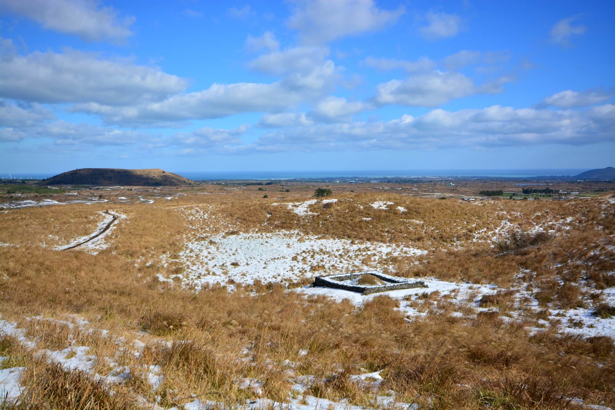 용눈이 오름에 눈이 내리면 희끗희끗한 새치처럼 듬성듬성 하얀눈을 볼 수 있습니다. 눈이 엄청 내려야 새하얗게 덮인 모습을 볼 수 있을텐데 그런 날이라면 차로 움직이기에도 어려운 날씨일테지요. 제주에 눈이 내리면 우선 교통이 마비되는 일이 많습니다. 제설작업이 턱없이 부족해 거북이운전을 하다 못해 차를 내버리고 가는 사람도 많기 때문이죠. 초보운전자들의 관광객들이 많아 대로변도 눈이 쌓이면 거의 멈춤상태가 되곤 합니다.