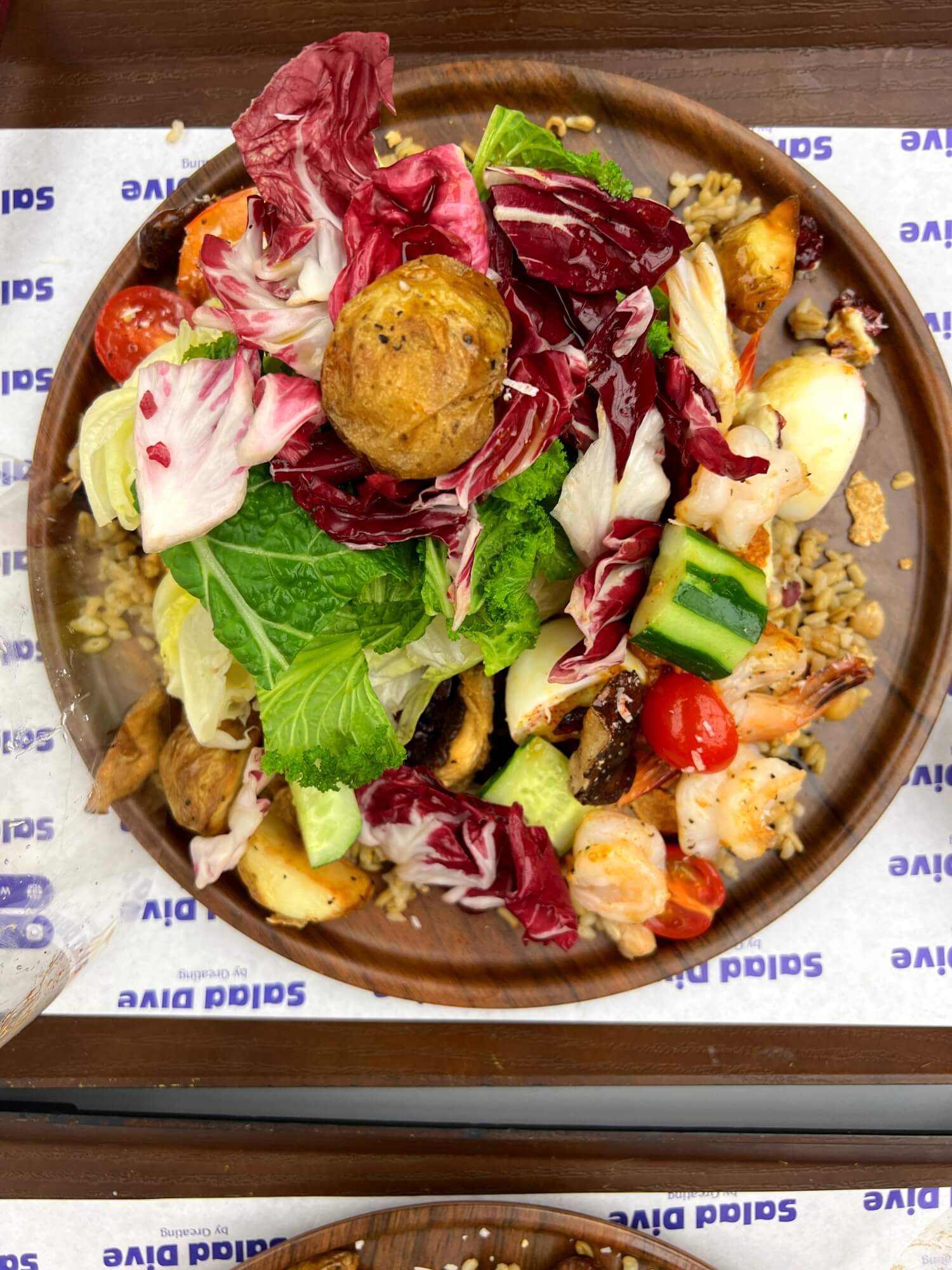 샐러드다이브의 한끼 샐러드에는 푸짐한 야채와 토핑꺼리가 한가득 넘쳐납니다. 먹어도 먹어도 줄지 않는 양이라서 끝까지 먹으면 포만감이 매우 만족스럽답니다.