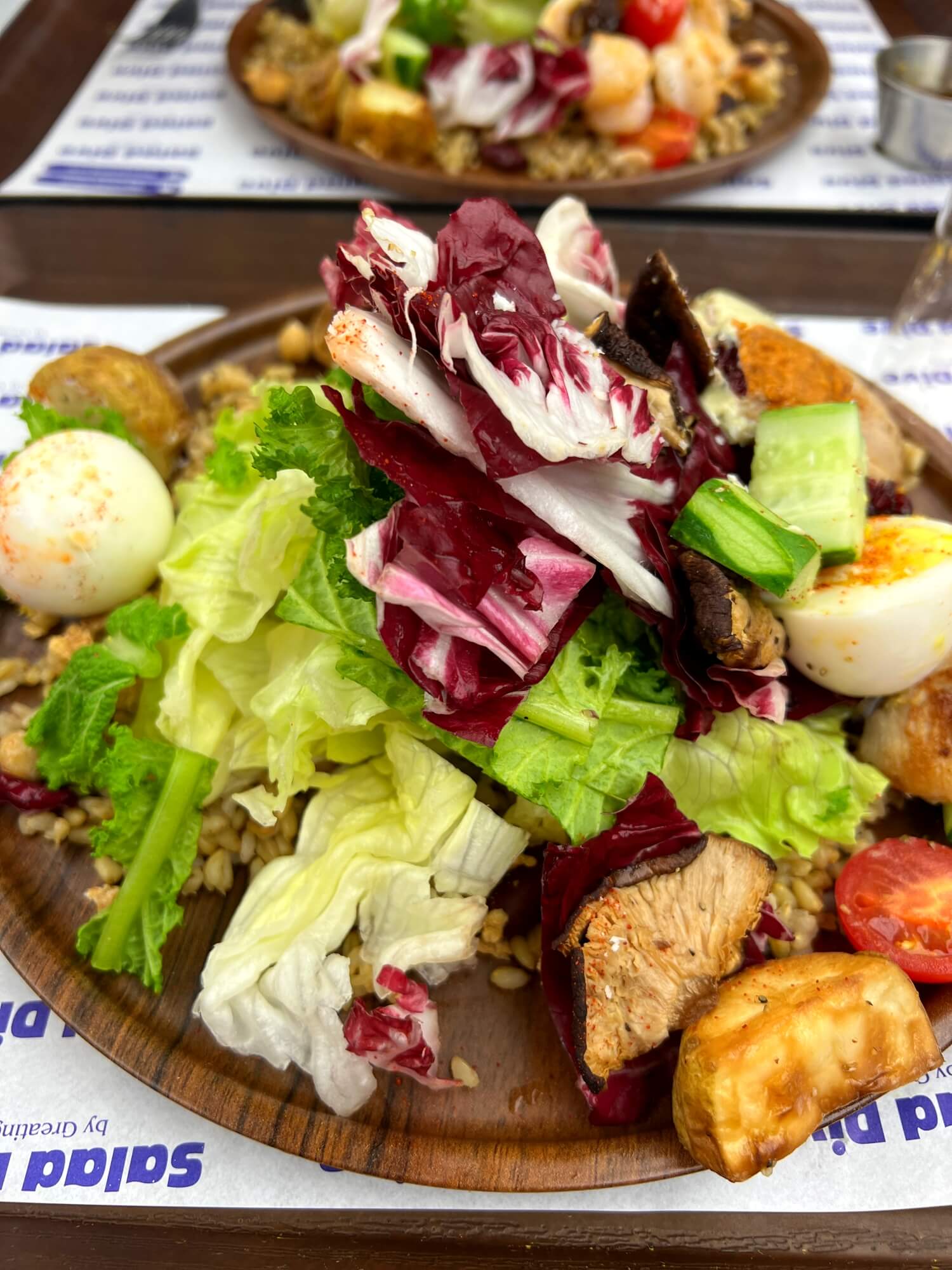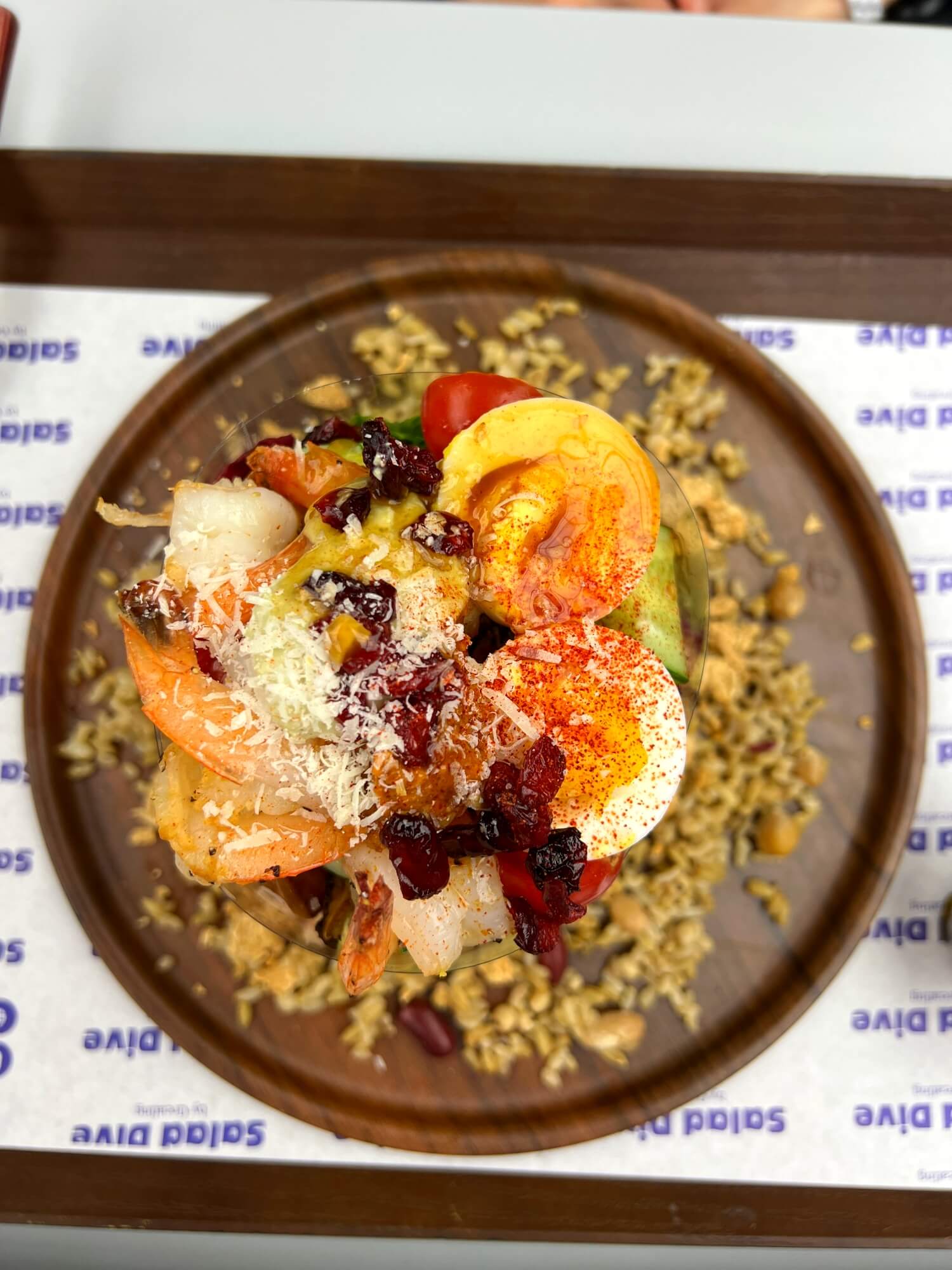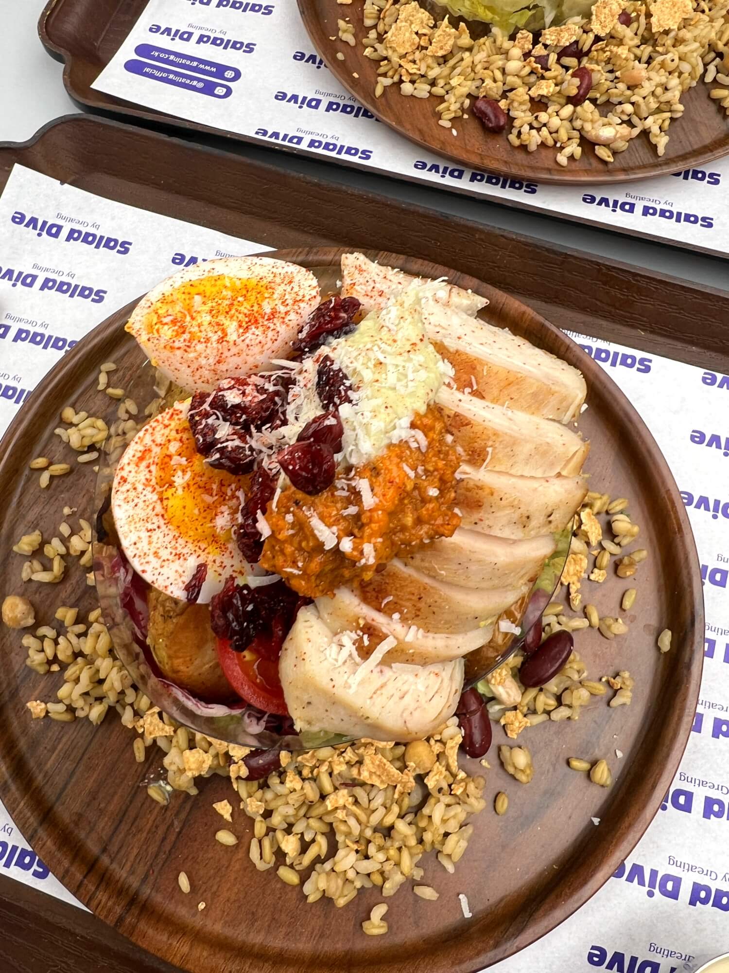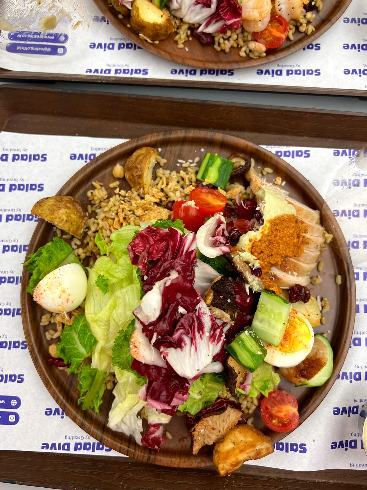 샐러드다이브의 한끼 샐러드에는 푸짐한 야채와 토핑꺼리가 한가득 넘쳐납니다. 먹어도 먹어도 줄지 않는 양이라서 끝까지 먹으면 포만감이 매우 만족스럽답니다.