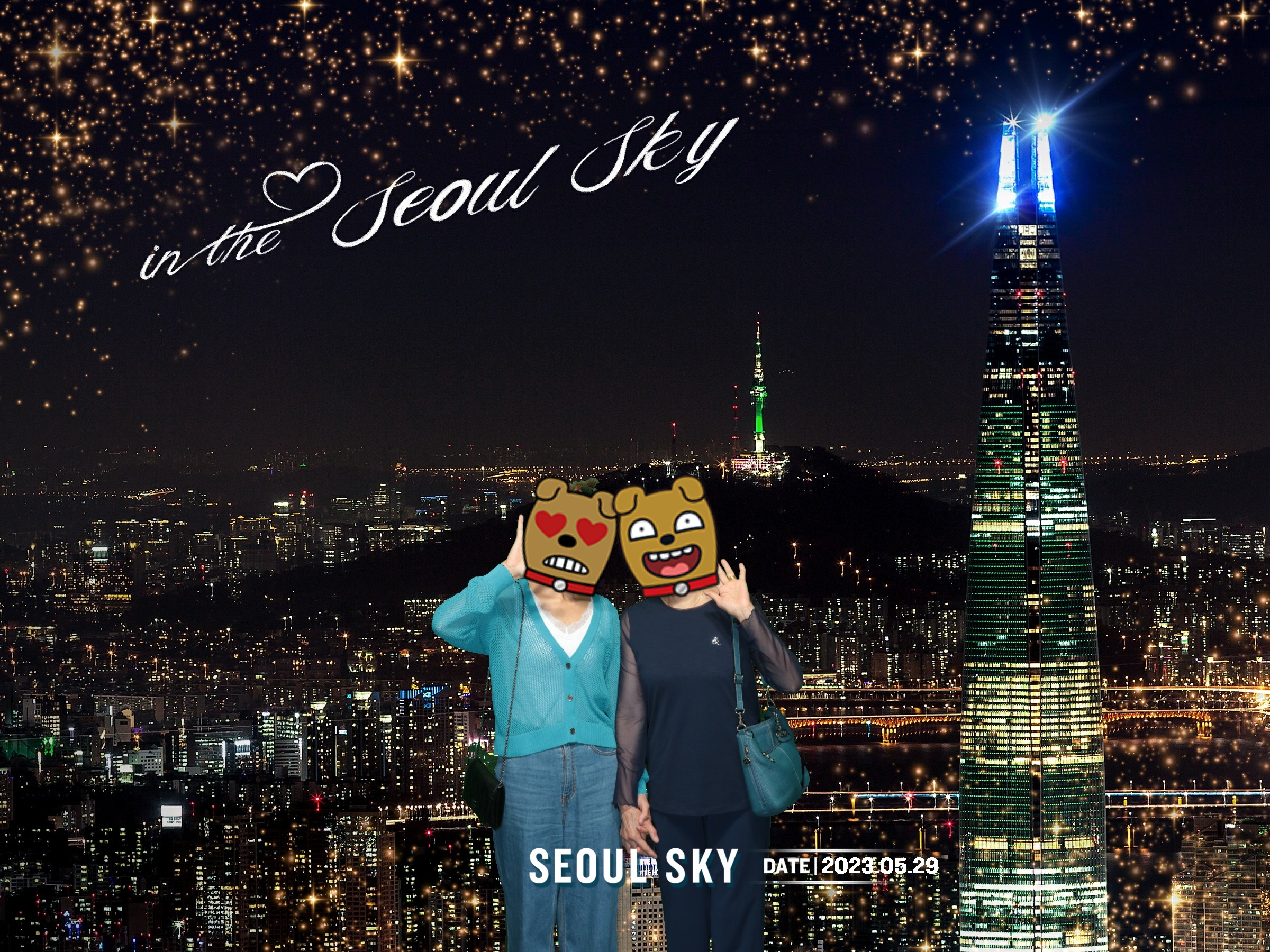 전망대에 올라가기 전에 포토존에서 사진을 찍어 줍니다. 두 컷은 의무이고 나머지는 선택인데 나중에 찾아도 그만 안찾아도 그만이에요. 사진 배경이 좋아 안찾을 수가 없을 겁니다. 저는 엄마와 찍어서 여러컷 배경으로 찾았고 엄마한텐 액자로도 선물을 드렸어요.