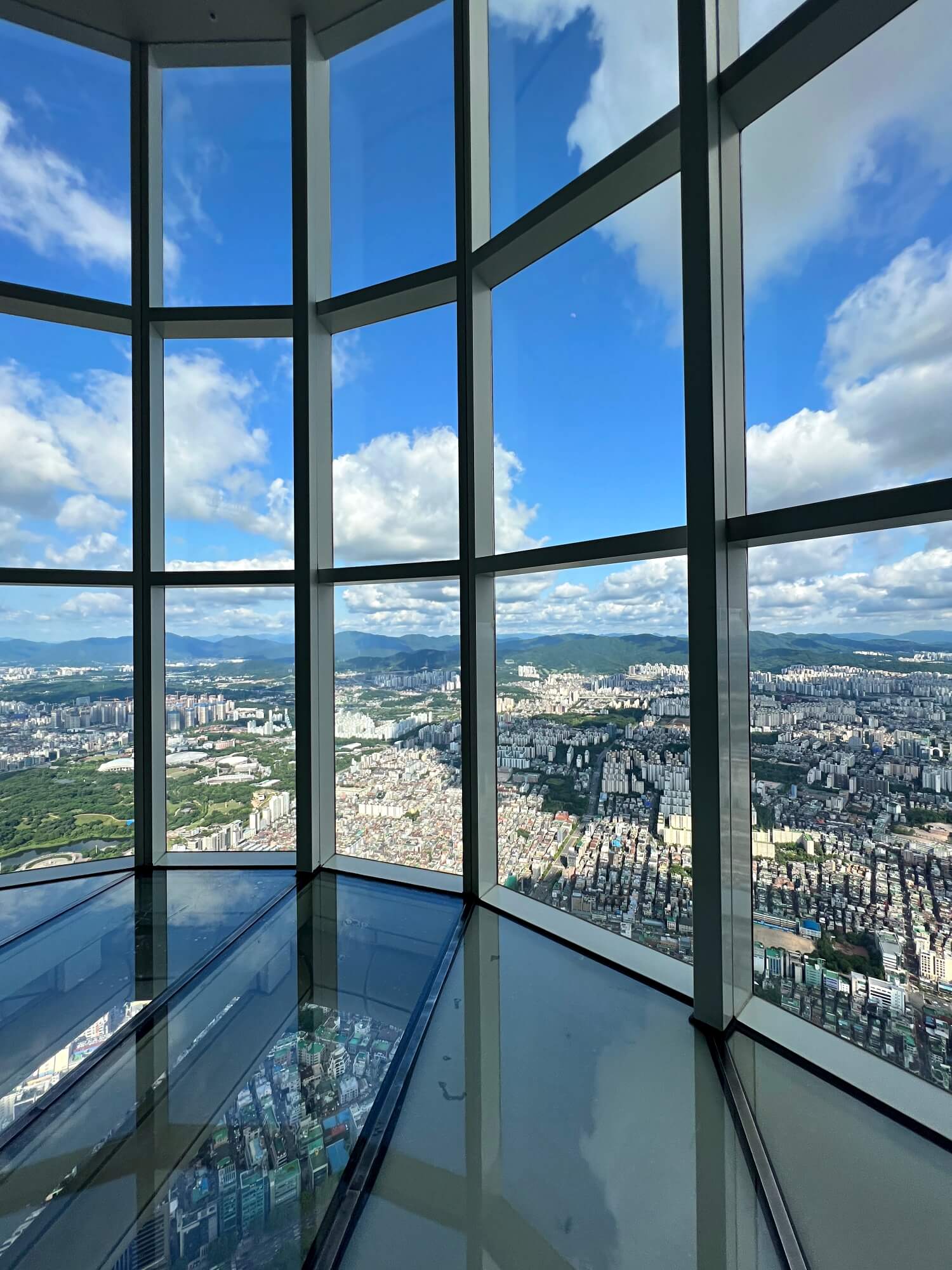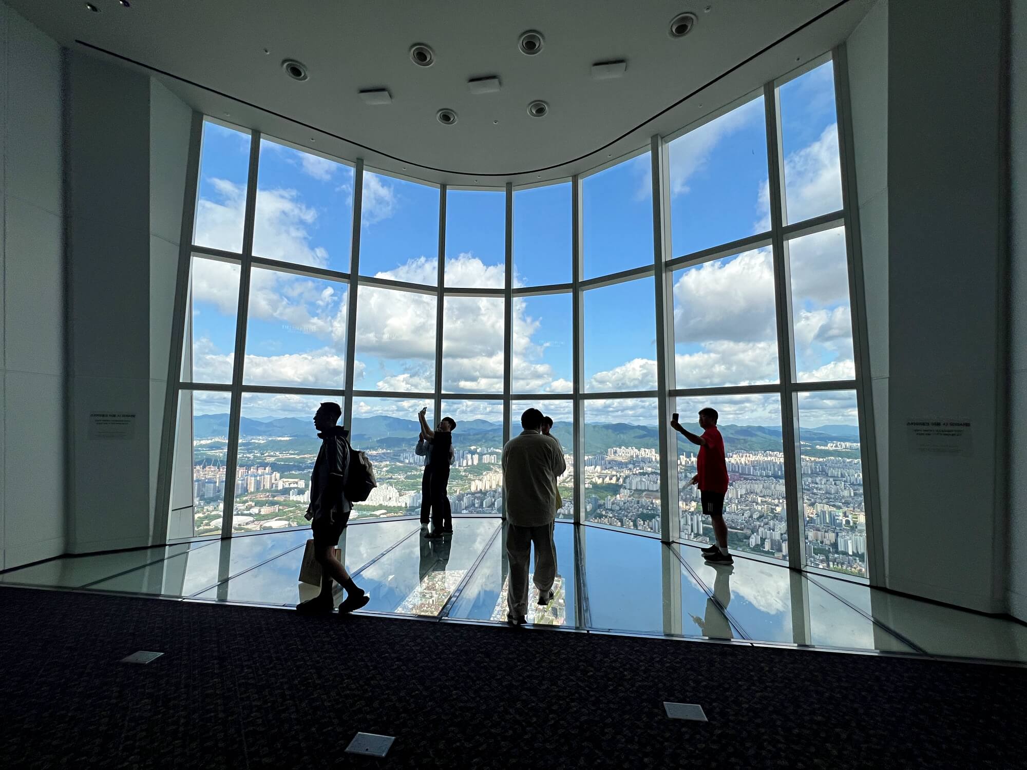 발 아래로 뻥뚫린 유리 위에 서는 공간입니다. 강심장만이 올라 설 수 있는 곳이에요. 유리는 안전하니 올라서도 걱정은 없습니다. 저도 웬만하면 잘 올라서는데 정말 아찔한 순간이었습니다.
