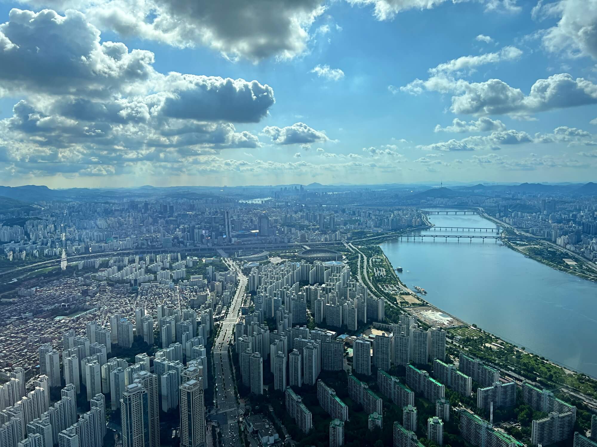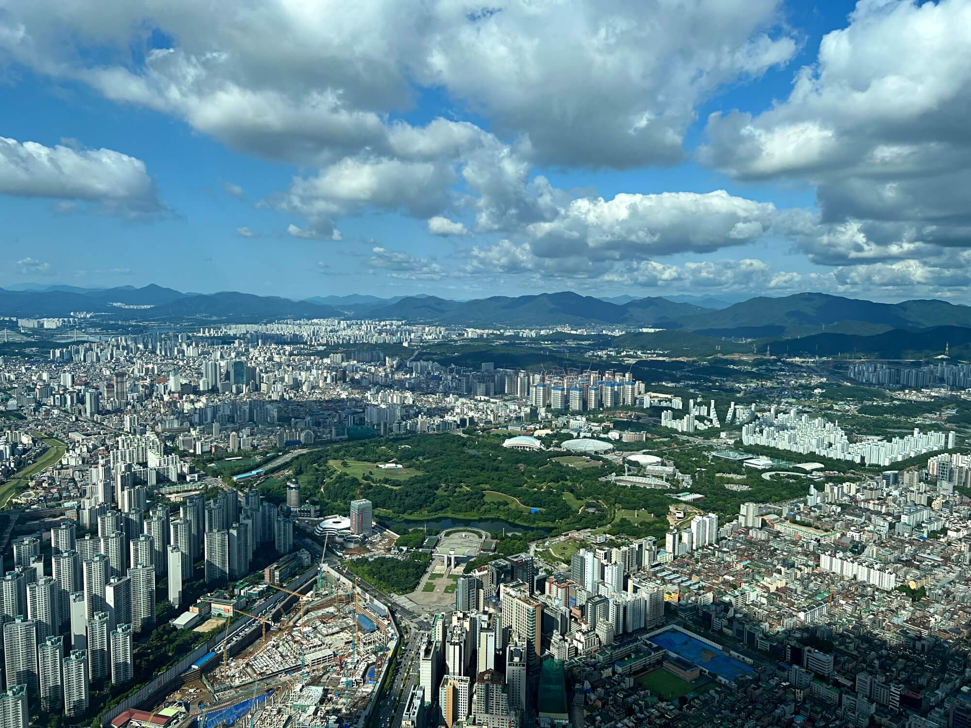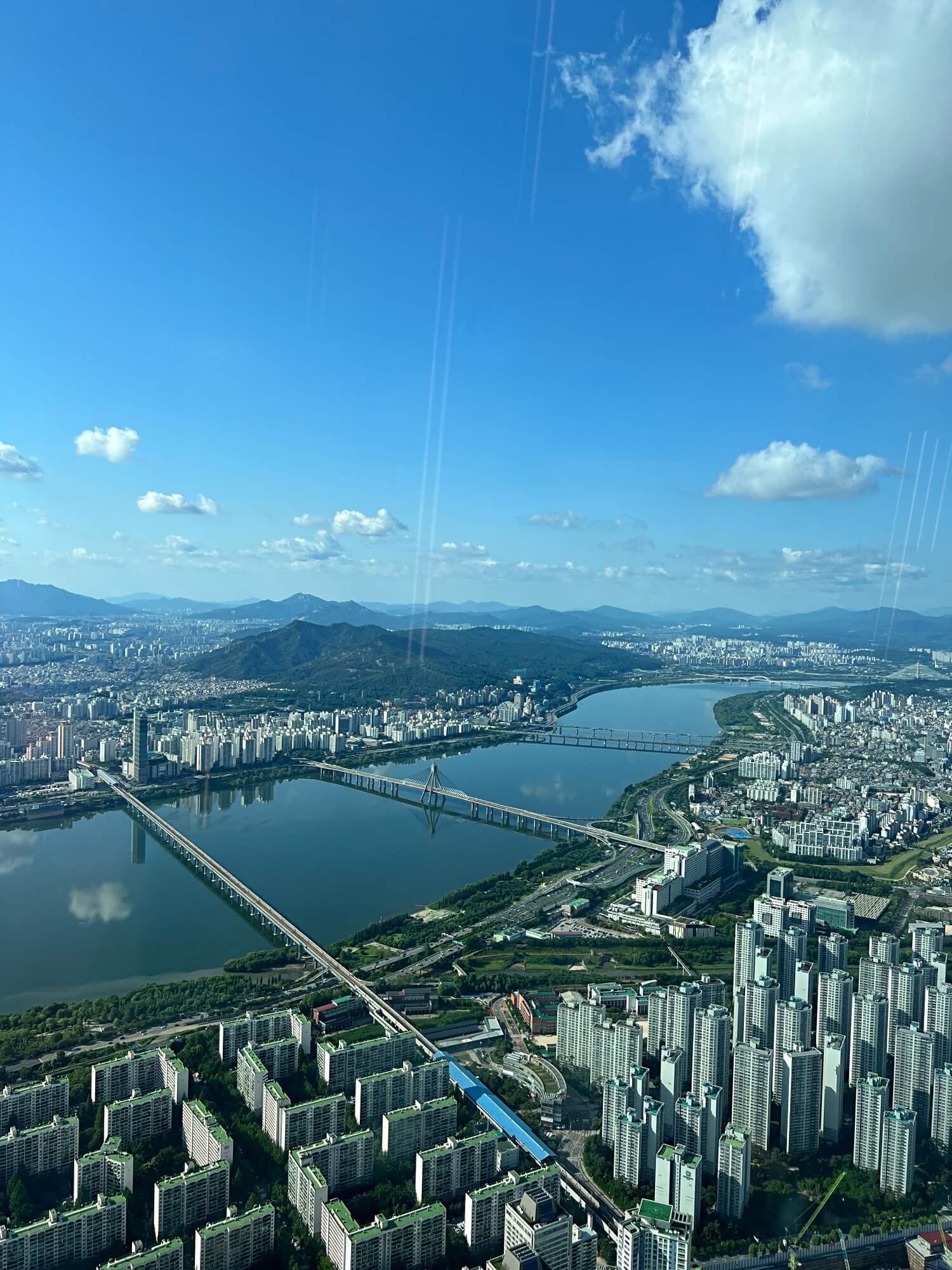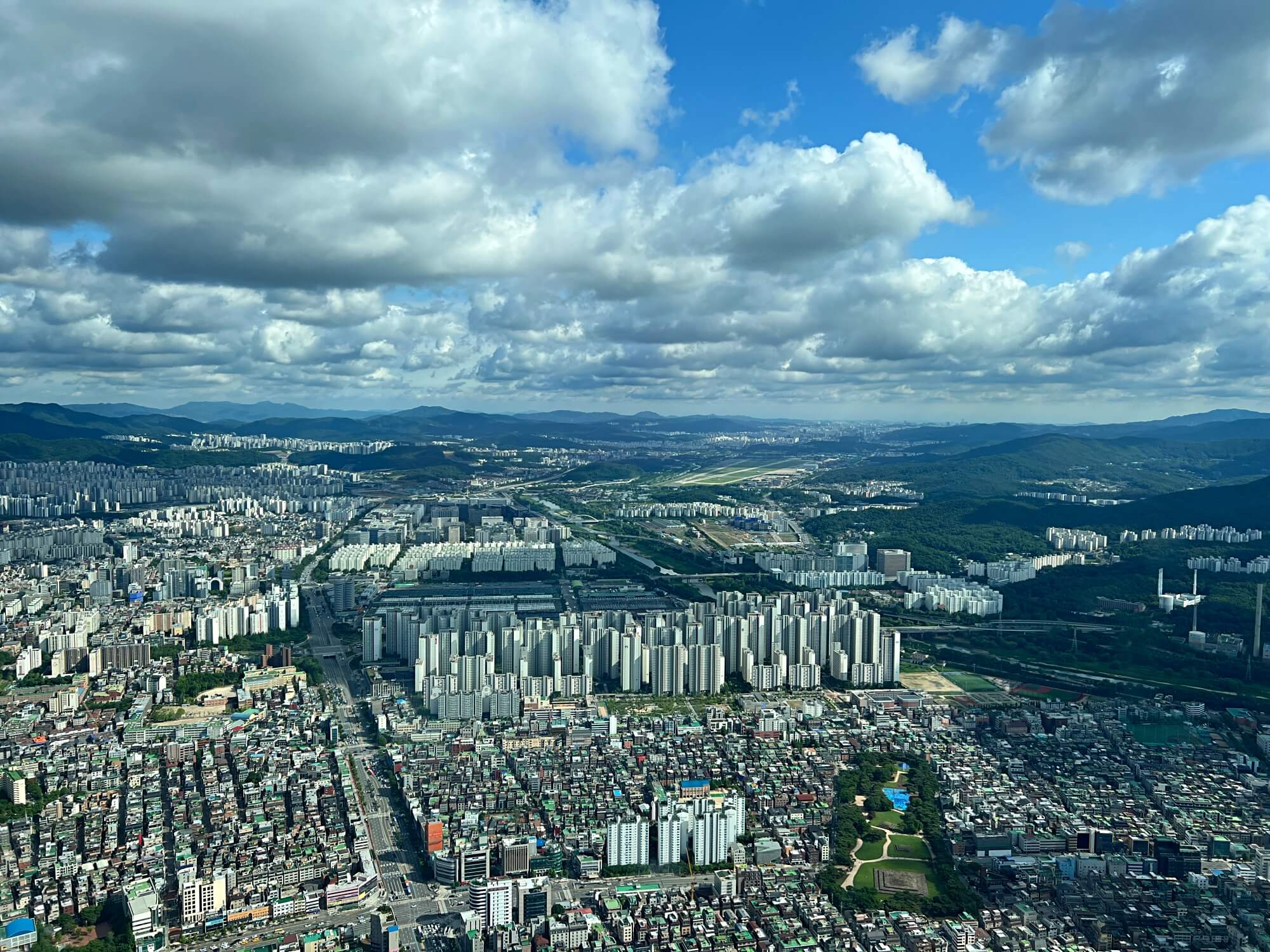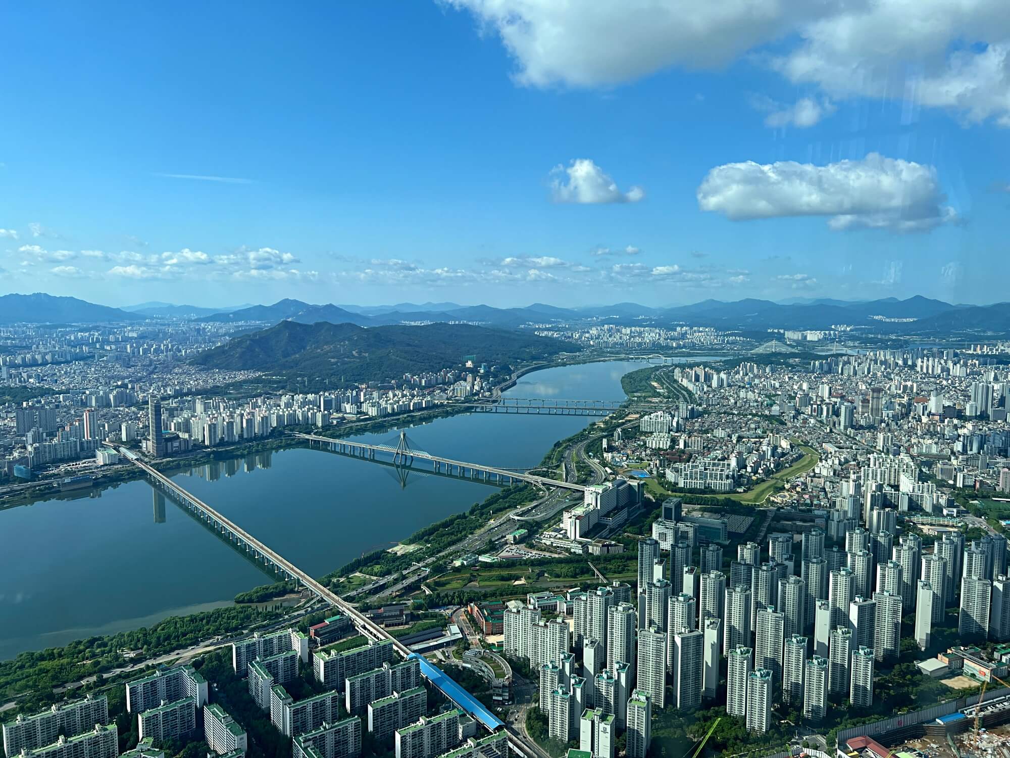 처음부터 펼쳐지는 스카이 전망에 눈이 휘둥그레 지면서 창 밖을 내다봅니다. 마치 비행기를 타고 이륙하는 것처럼 아찔한 장면이 내려다 보입니다. 아파트가 정말 많이 보이네요.