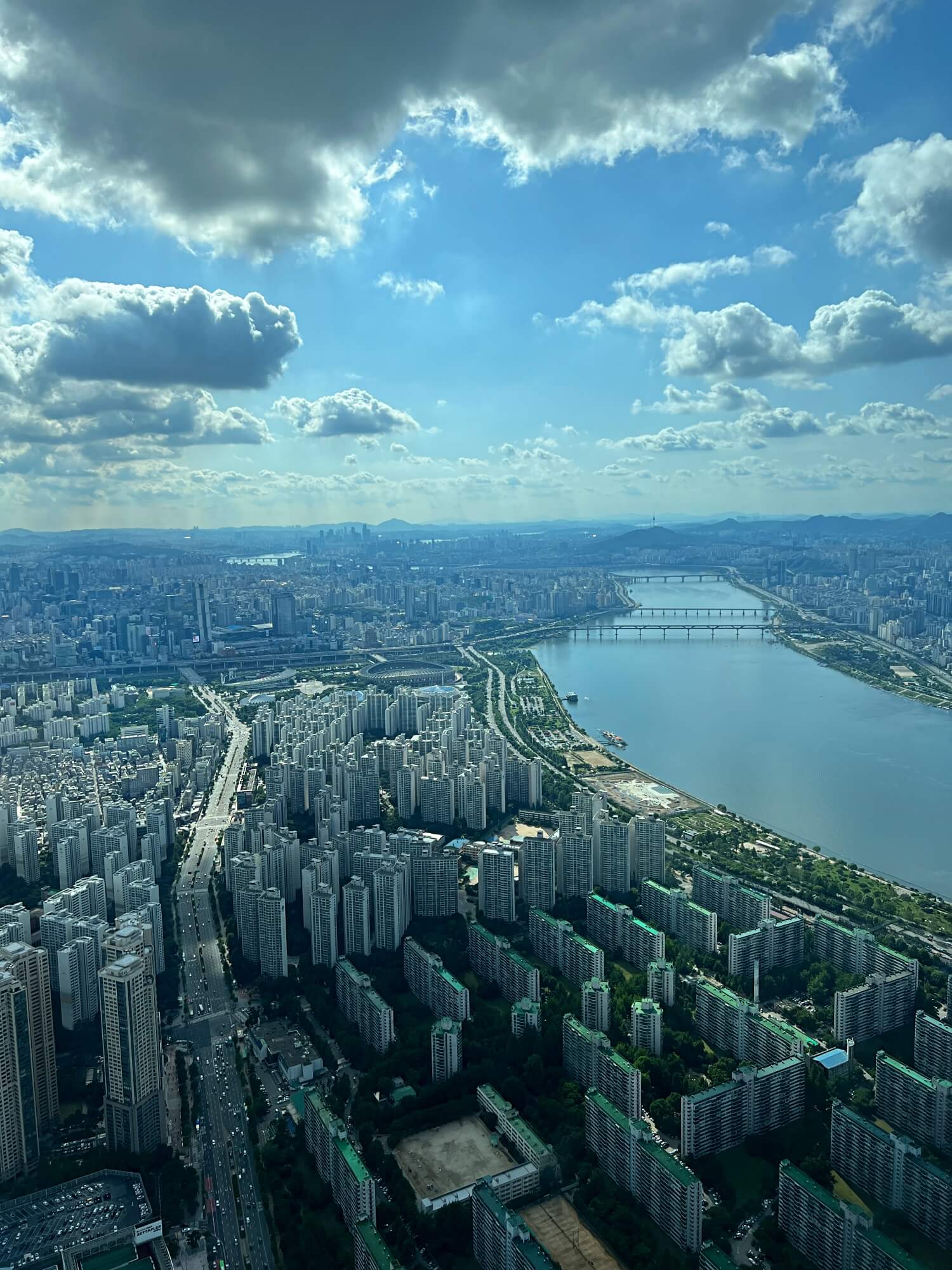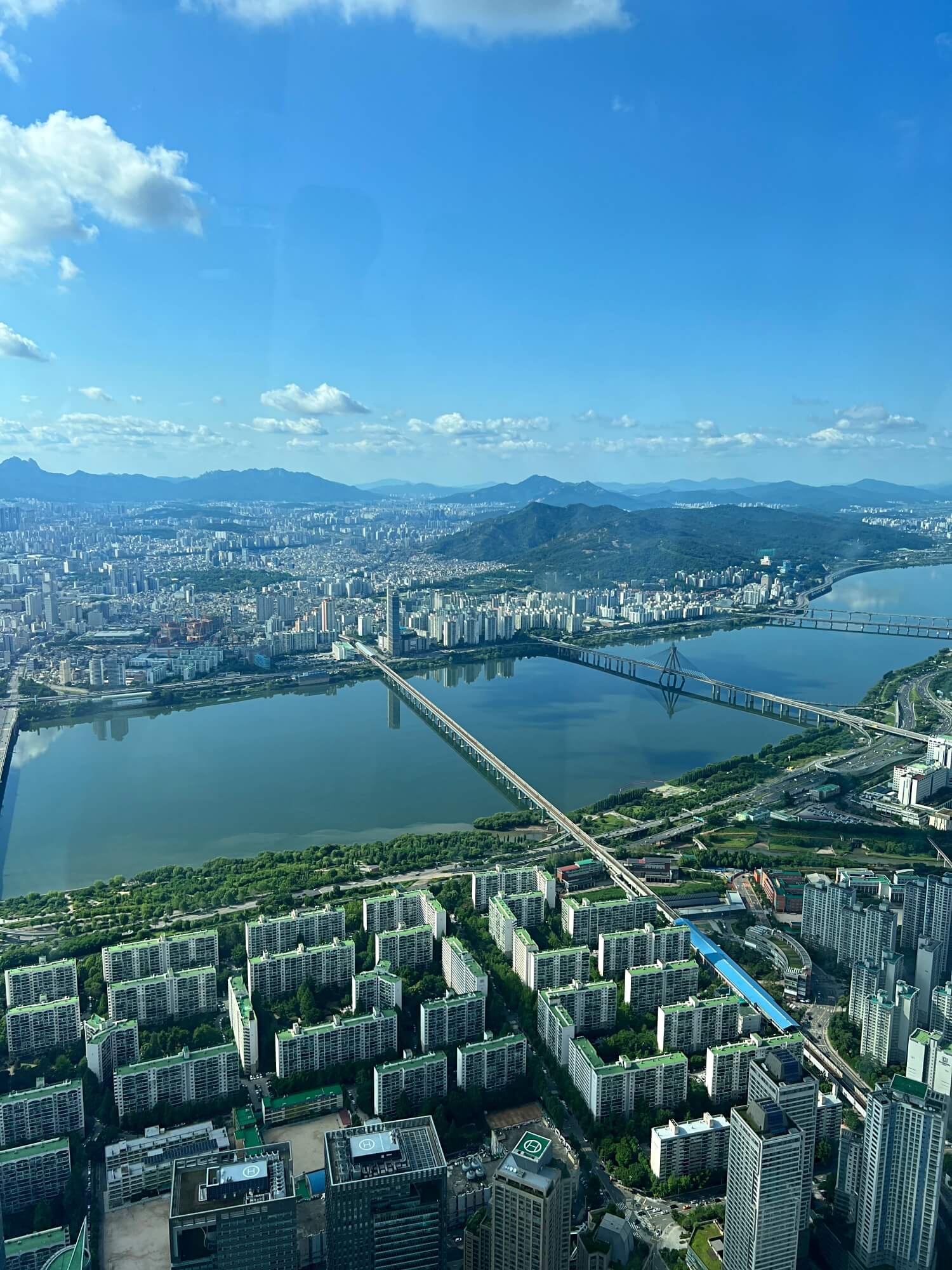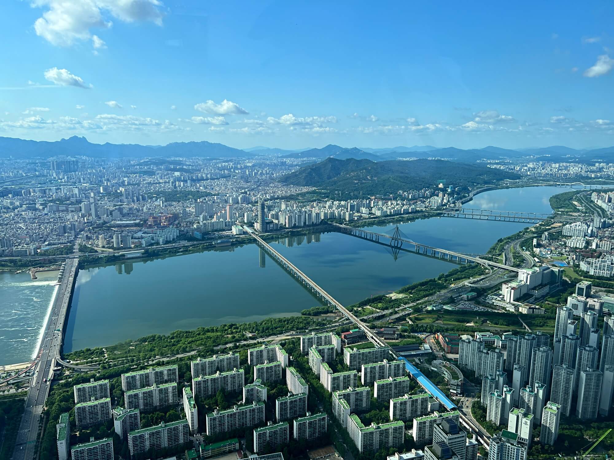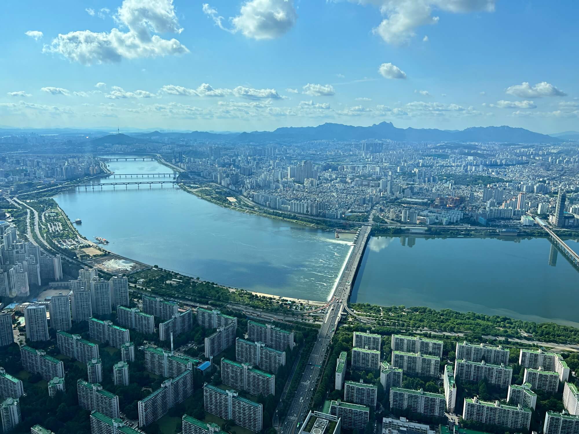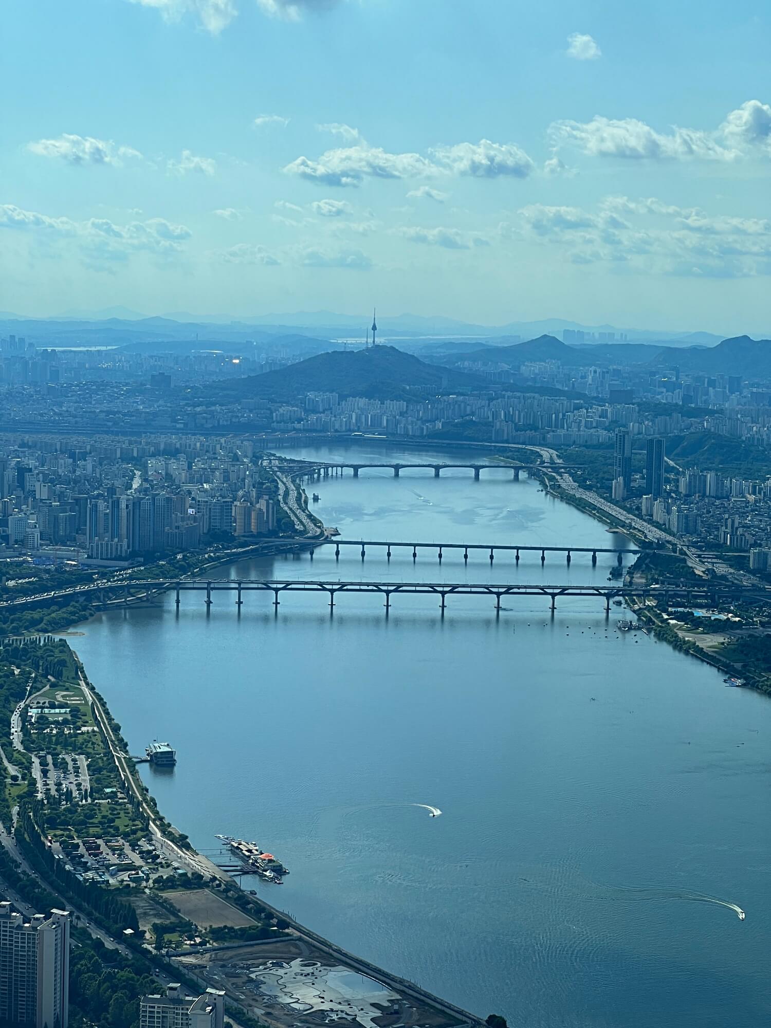 멀리 청담대교가 보이고 앞에 잠실대교가 잘 보입니다.