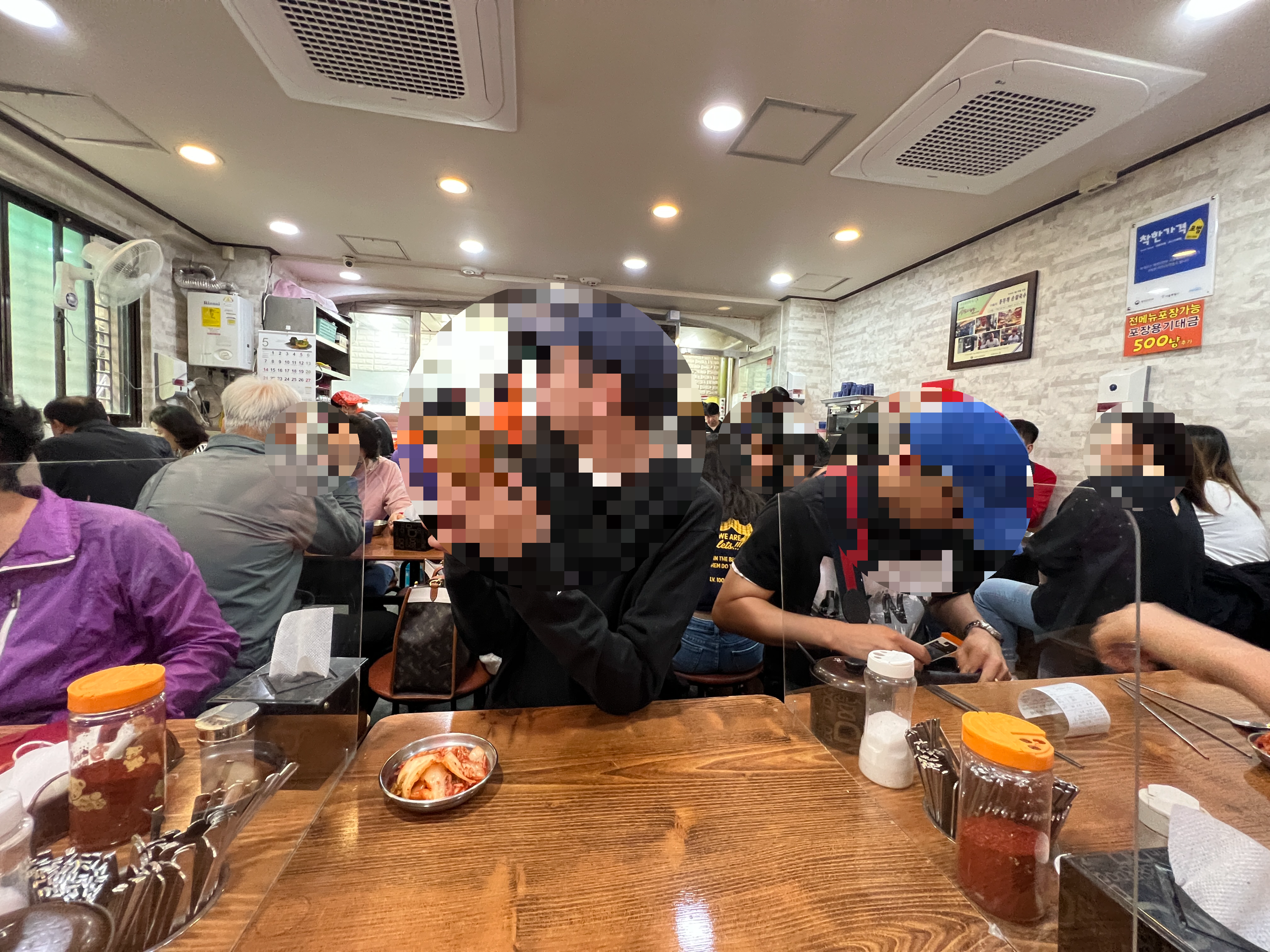 손칼국수 내부 매장은 공간이 비좁을 정도로 테이블이 꽉차 있습니다. 대기줄이 긴 것 보다 이렇게라도 앉아서 먹는게 낫다는 손님들의 만족스런 표정들을 볼 수 있었어요. 저희도 이렇게라도 빨리 들어와서 먹고 싶었거든요. 덥고 비좁지만 자리가 바로 있다는 것은 행운이었습니다.