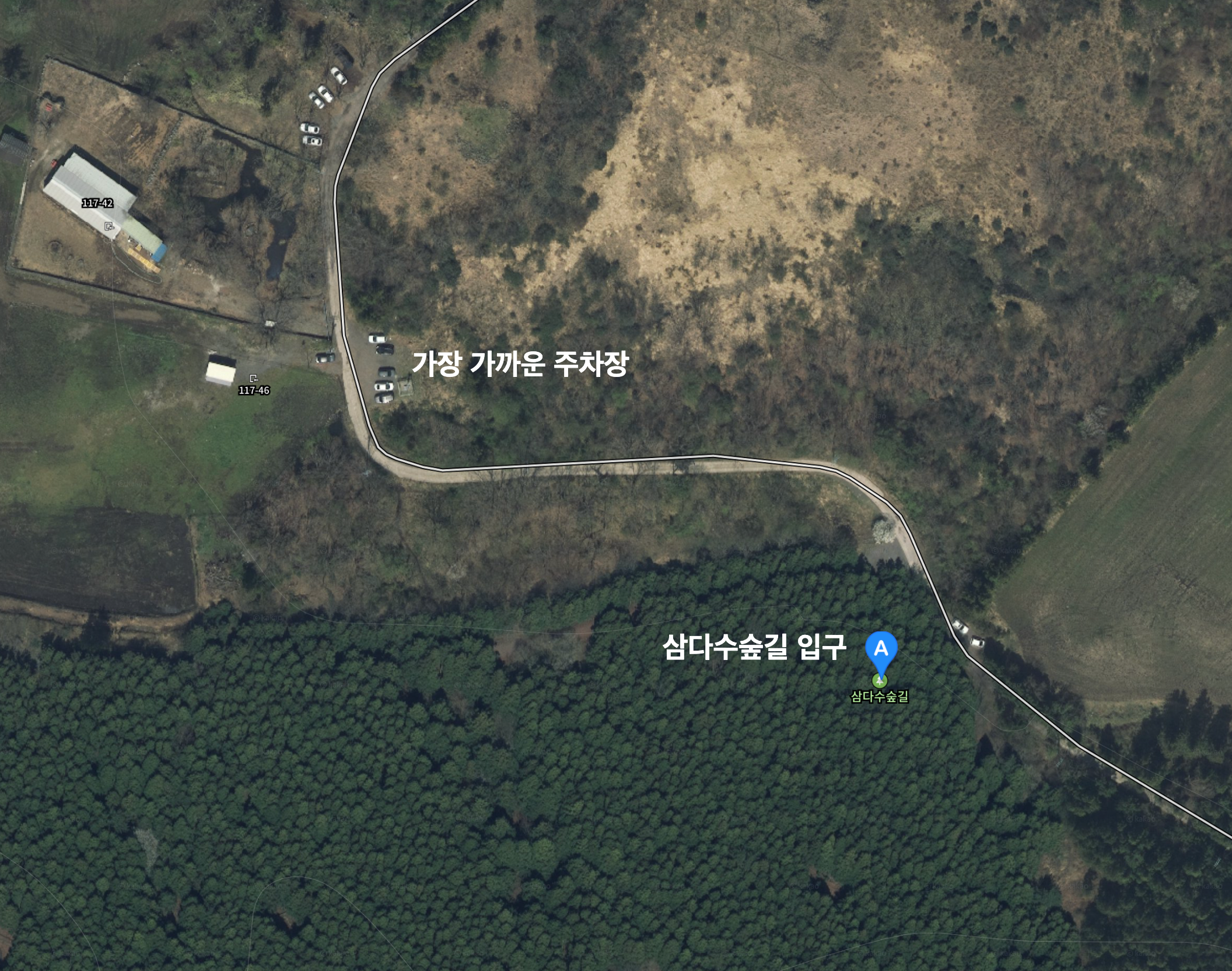 숲길 입구에서 가장 가까운 주차장은 넓지는 않지만 아직 많은 사람들이 찾아오지는 않기에 일찍 출발하신다면 주차하실 수 있습니다. 7대정도는 주차할 수 있는 공간이 있습니다. 저희가 도착했을 시간에도 한 대 정도는 여유가 있었습니다.