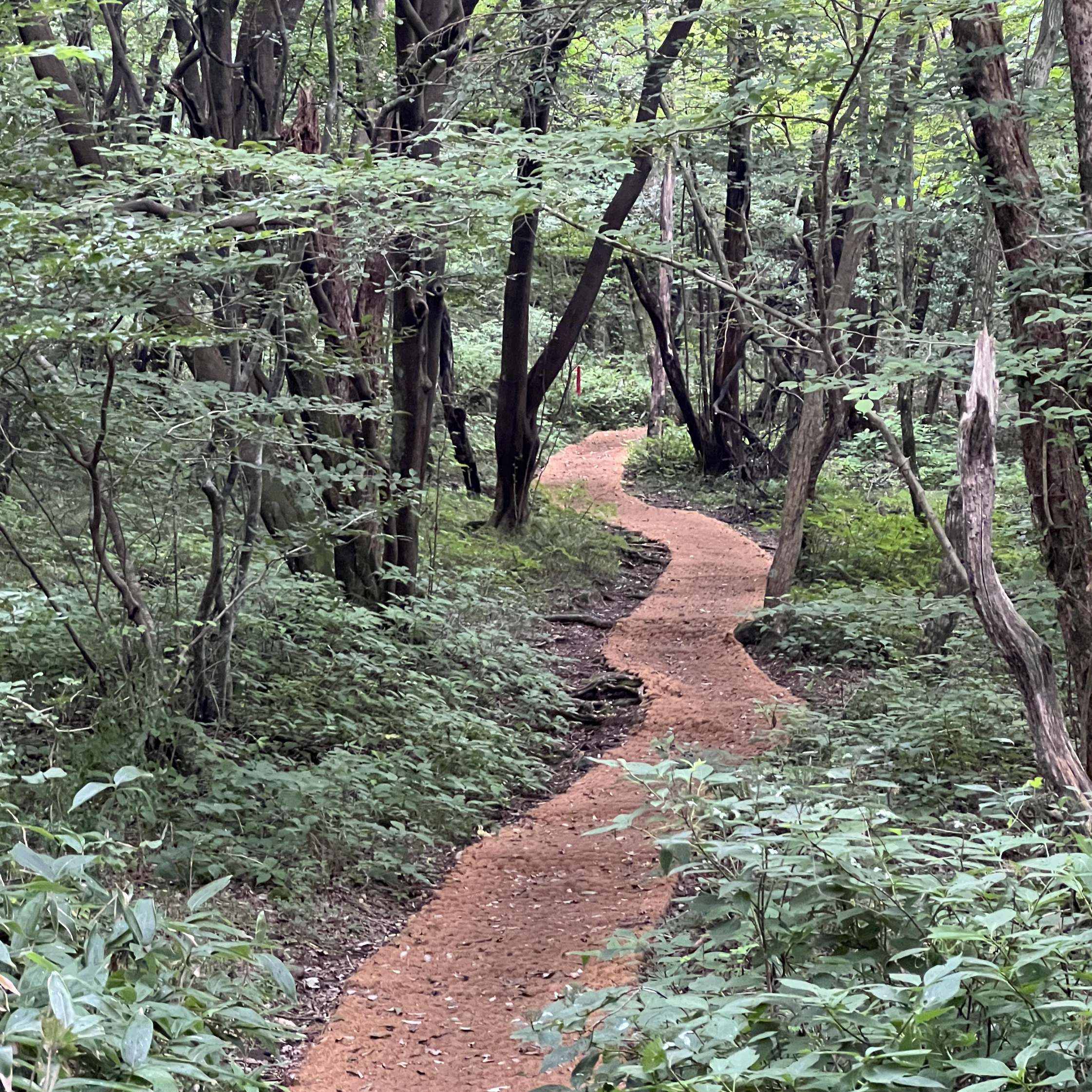 비예보를 모르고 갔지만 한두방울 떨어지는 빗방울에 차에 있는 큰 우산 한 개를 챙겨 가지고 걸었습니다. 조금만 떨어질 것 같던 비는 폭우로 돌변하며 둘이서 쓰던 우산은 역부족이었습니다. 비를 거의 다 맞고 신발도 다 젖어서 왔습니다. 입구에서 2km 구간까지는 야자매트가 잘 깔려있어 걷기 편했지만 나머지 돌아나오는 길은 흙바닥과 자연 돌바닥으로 되있어 빗물이 고이는 곳이 많았습니다. 폭우가 쏟아지는 바람에 옷도 젖고 신발도 다 젖어 나중에는 그냥 빗물을 텀벙 텀벙 밟고 왔네요. 비가 오는 날이더라도 조금씩 흩뿌리면 분위기라도 좋았을텐데 엄청난 비를 우산쓰고 걷기엔 정말 비추였습니다. 물웅덩이가 많아 신발은 다 젖을 수 밖에 없었는데 그나마 운동화를 신어서 다행이었습니다. 슬리퍼나 샌들을 신고 갔으면 정말 낭패를 볼 뻔했습니다. 생각보다 바닥이 고르지 못해 오늘 처럼 비가 많이 오는 날이면 위험할 수 있다는 생각이 들었습니다.