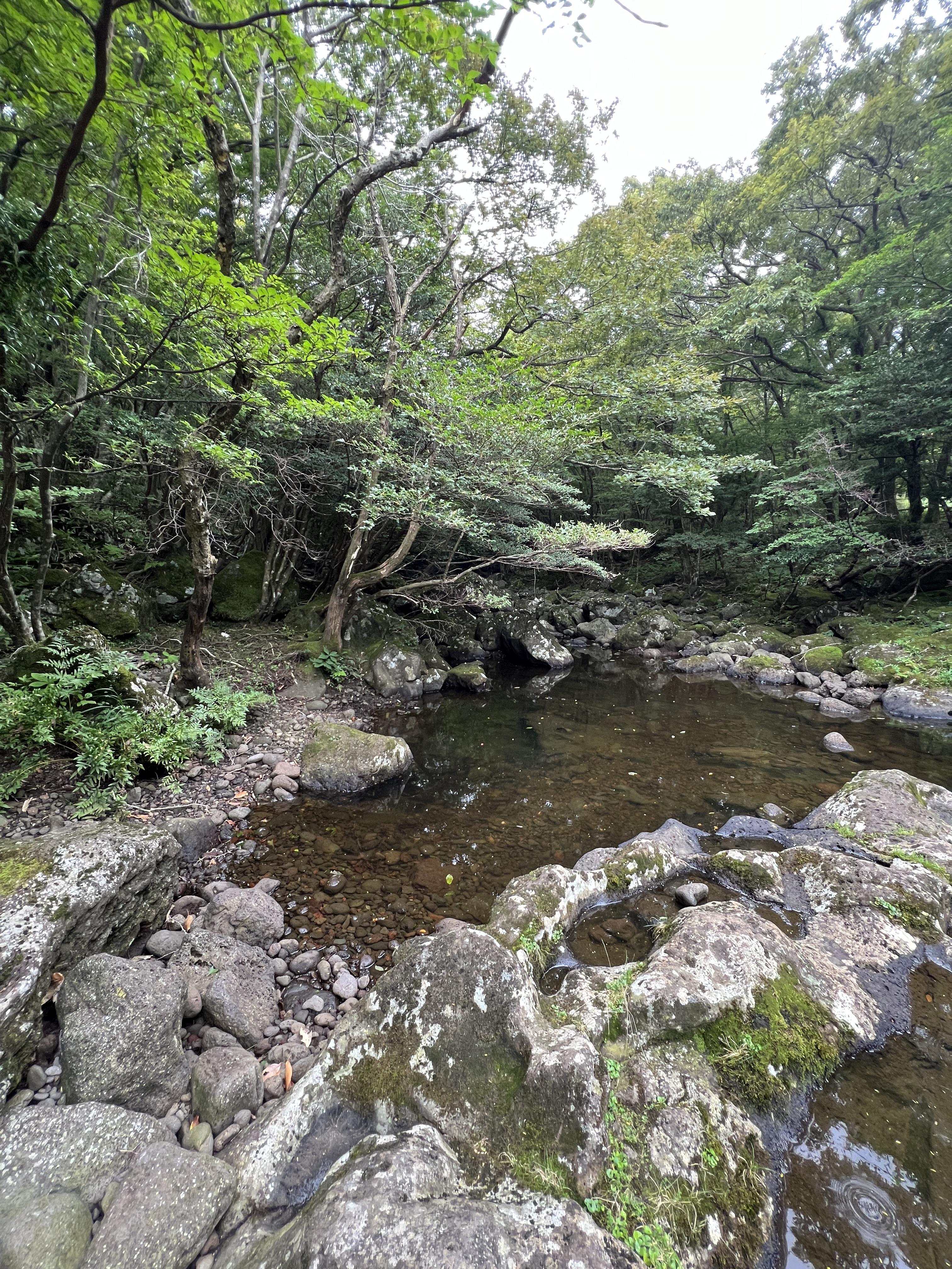 용암에 의해 형성된 지형의 모양은 독특하고 아름다웠습니다. 물이 고여 있었지만 빗물이 담겨 있는건지 맑아 보이진 않았어요. 숲속에서 만난 계곡 분위기나는 하천은 덤이었습니다.