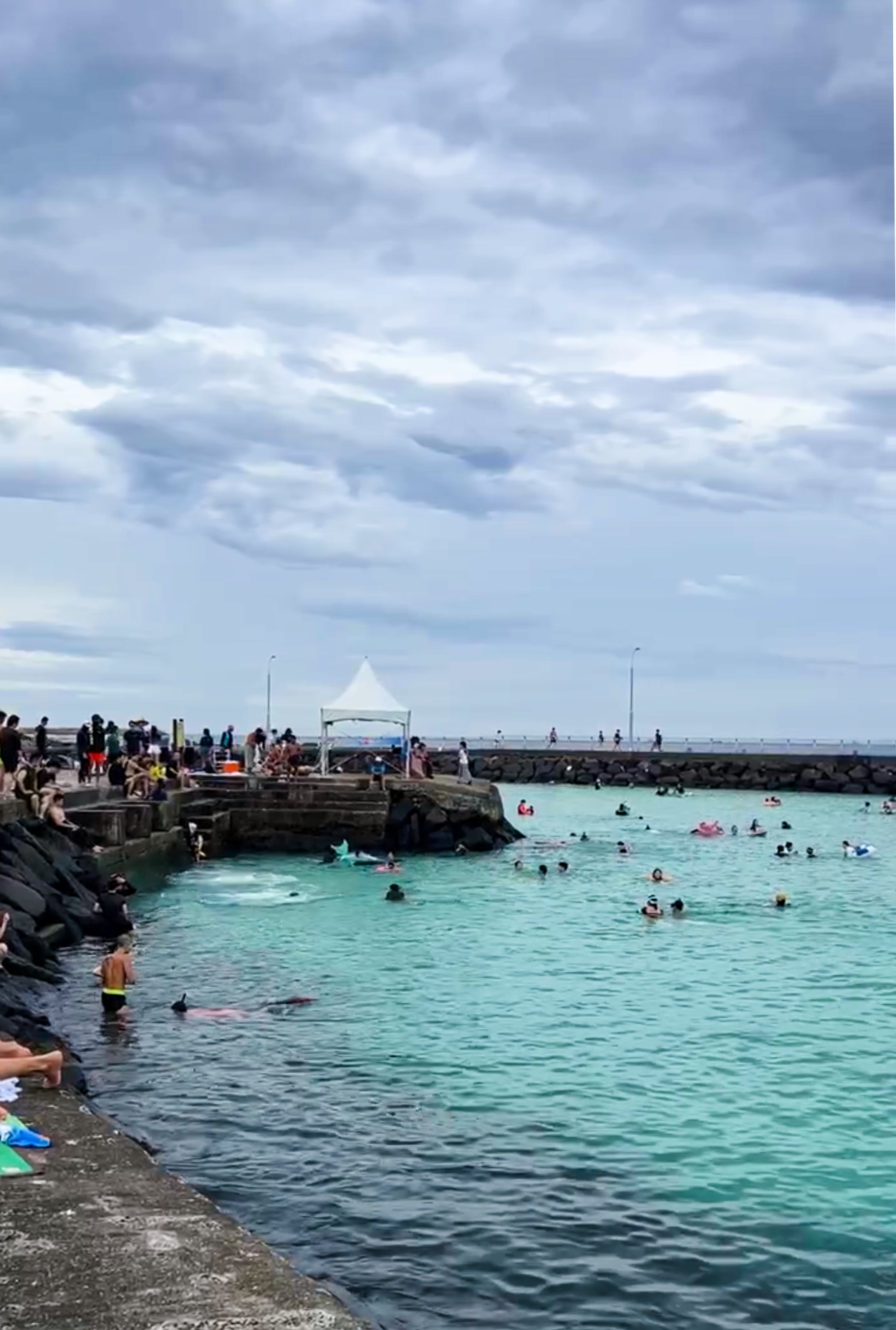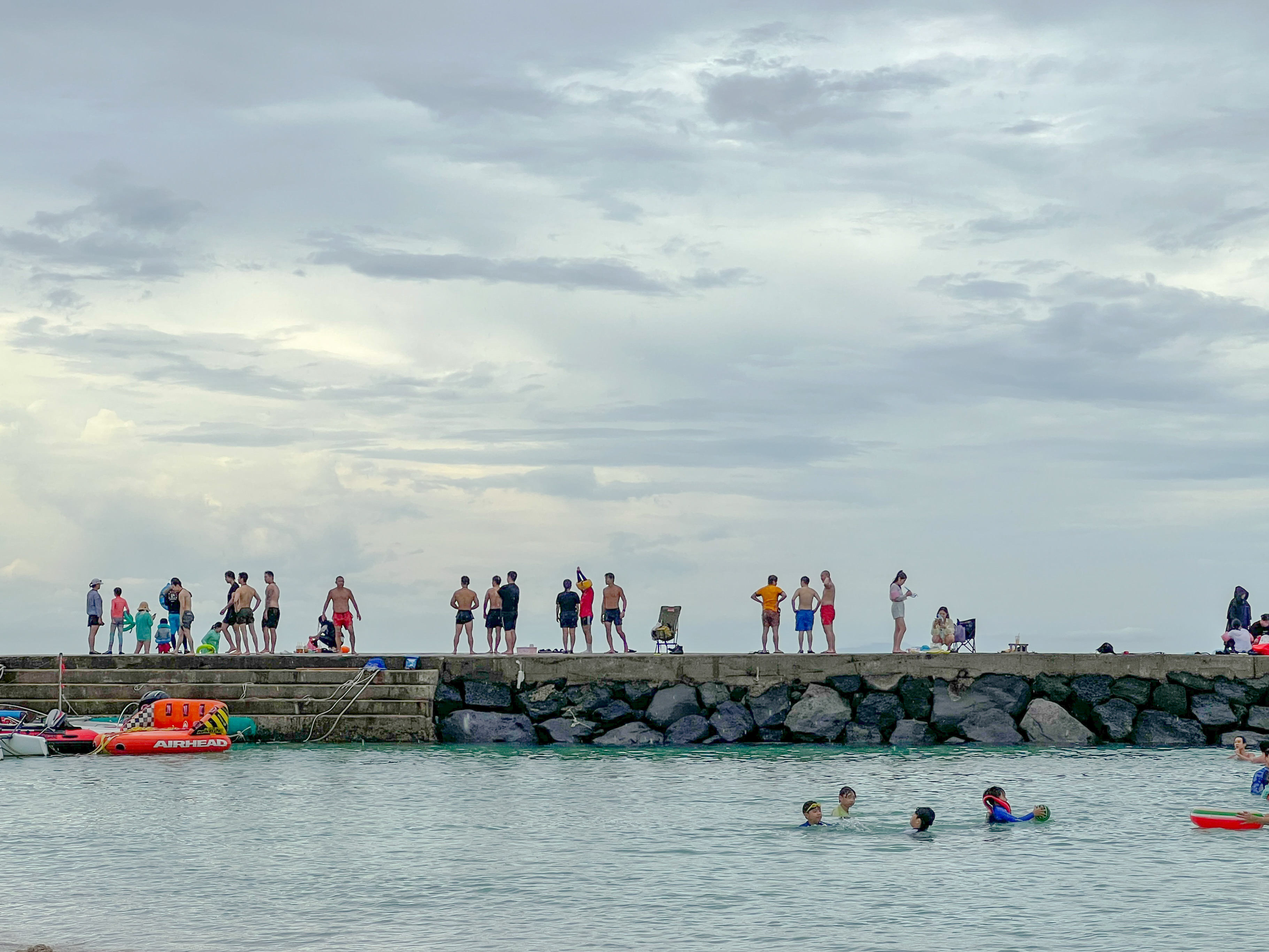 사진은 7월에 찾아갔을 때 다이빙 하던 모습의 풍경입니다. 방파제로 둘러쌓인 이 곳은 수심이 있어 저도 가지는 않고 있습니다. 다이빙을 즐기는 사람들과 구명조끼를 입고 스노클링을 즐기는 사람들이 주로 물놀이를 하는 곳입니다. 지금은 이런 풍경도 없고 다이빙금지 빨간 봉까지 박혀 있어 위협감을 주고 있습니다. 태풍의 영향이 있던 이번에는 쓰레기들이 밀려와 둥둥 떠있는 모습만 보고 왔습니다. 여름 물놀이가 즐거운 만큼 안전을 꼭 생각하면서 위험하지 않게 행복한 휴가 즐기다 돌아가셨으면 좋겠습니다.