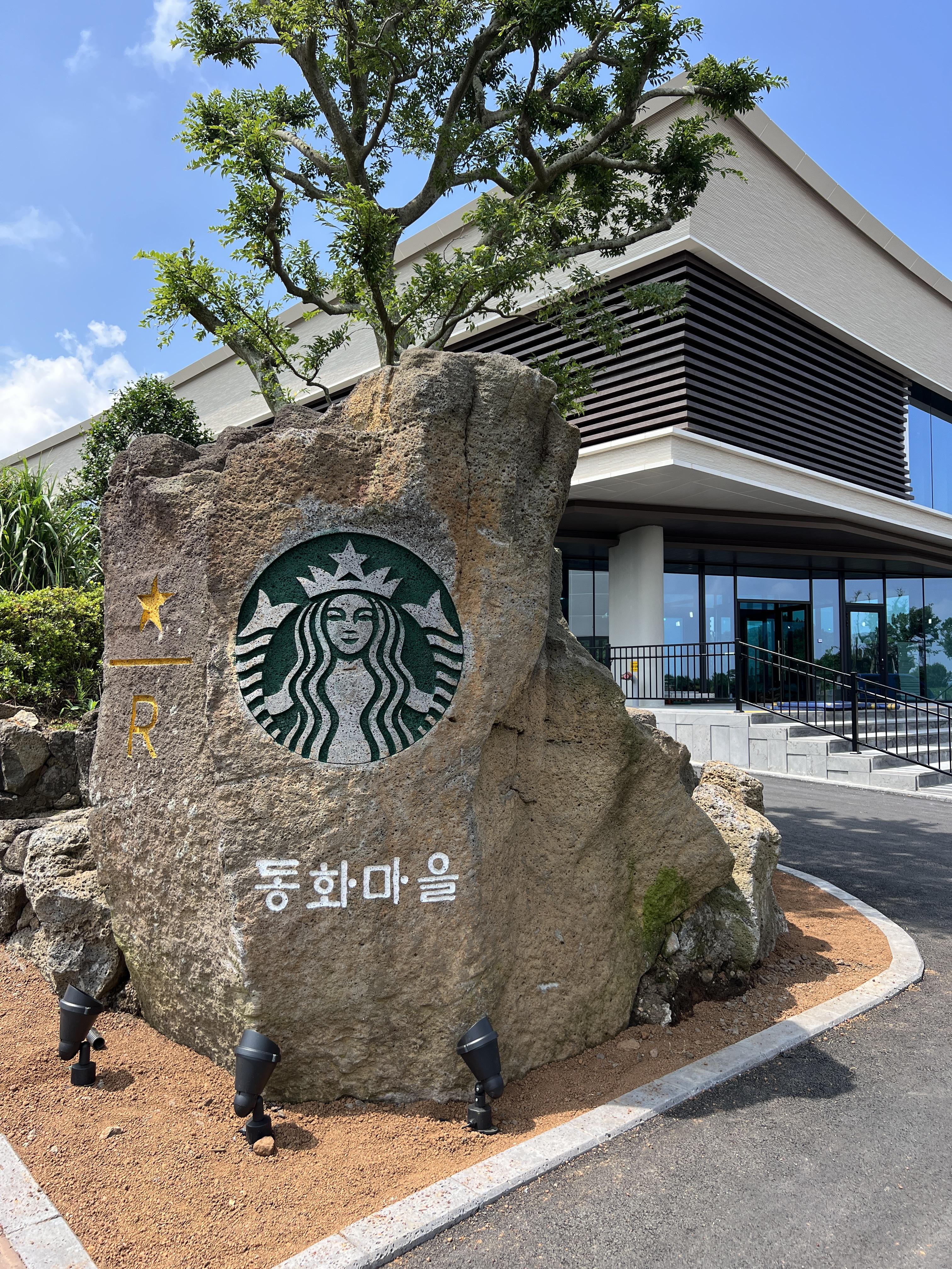 주차장에 차를 세우고 큰 건물 안쪽으로 걸어갔습니다. 스타벅스가 들어설 건물 앞에는 커다란 바위에 스타벅스 로고를 크게 박고 동화마을이라는 글씨를 새긴 입간판을 세워놨습니다. 멋지더군요. 빨리 매장이 오픈했으면 하는 바램이 들었습니다. 웅장한 건물에 들어설 스벅의 인테리어가 엄청 기대됩니다.