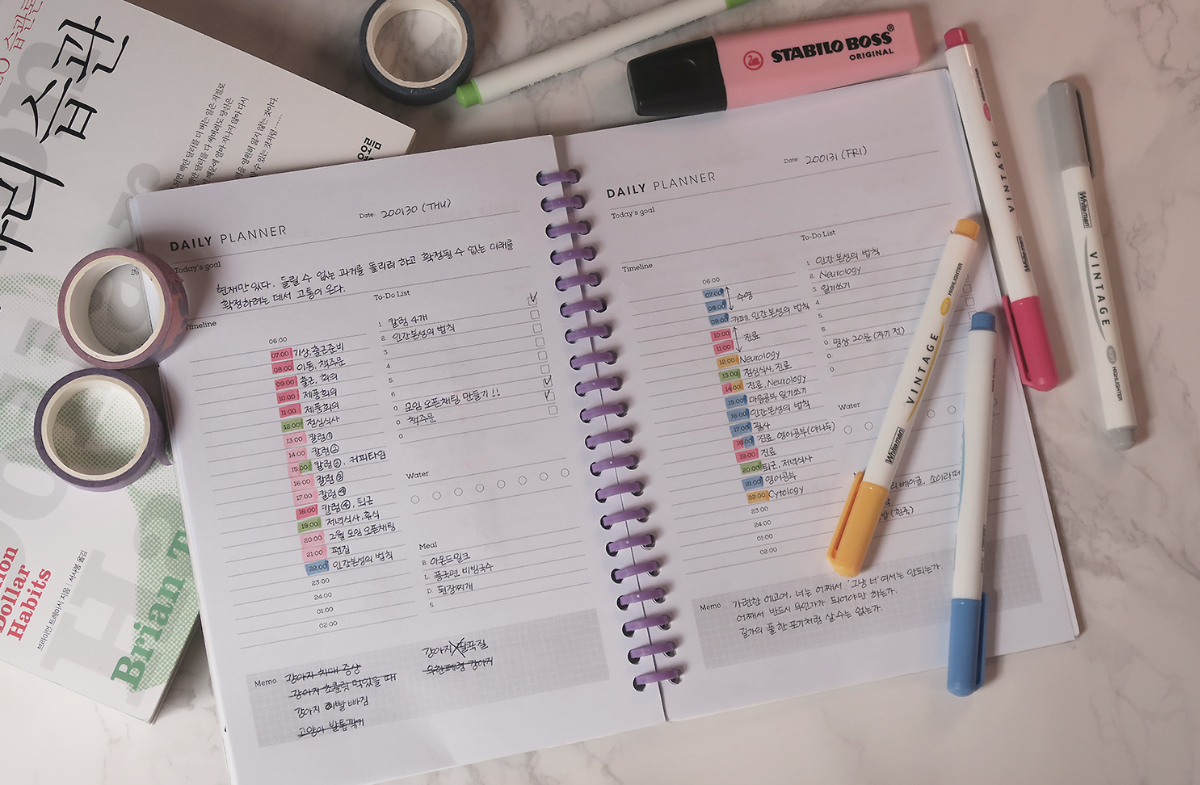 데일리 플래너라고 들어보셨나요? 요즘엔 다양한 배움이 많습니다. 저도 강의찾다가 발견해서 듣게 됐는데 시간관리하는데 많은 도움이 됐습니다. 저는 아이패드로 하려고 했다가 맘에드는 어플을 아직 발견하지 못했는데요, 이렇게 종이로 된 플래너도 나쁘지 않을 것 같다는 생각을 해봤어요. 그래서 저도 제가 직접 디자인해서 활용하고 있습니다. 주로 회사에서 활용하고 있는데 일하는 데 도움이 많이 되고 있어요. 주말이나 퇴근 후 집에서 사용해도 시간관리를 하니 무심코 흘려버릴 시간을 잘 사용할 수 있는 장점이 있는 것 같아요. 강의가 아주 알차게 잘 되있어서 들어 볼 만합니다.