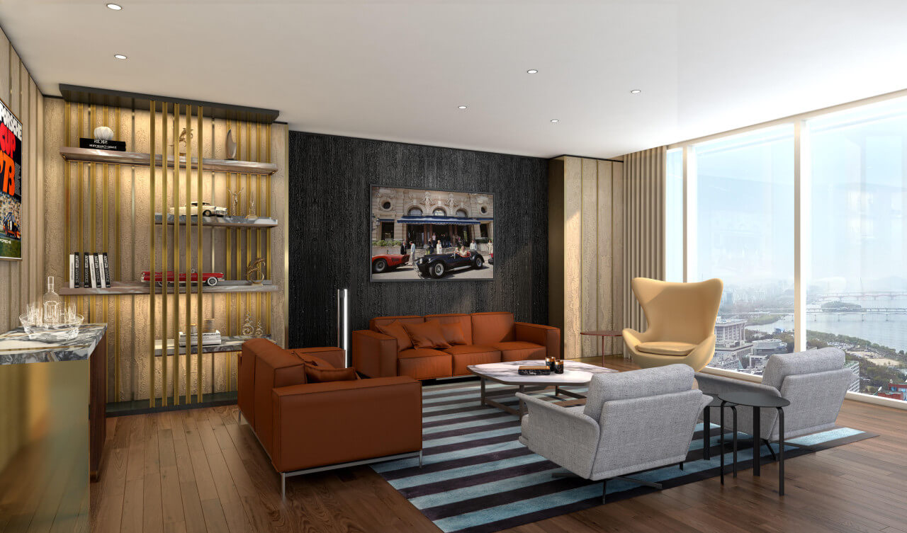 쇼파 위에 있는 조형물은 작품입니다. 공간의 멋스러움을 한껏 더해주네요!