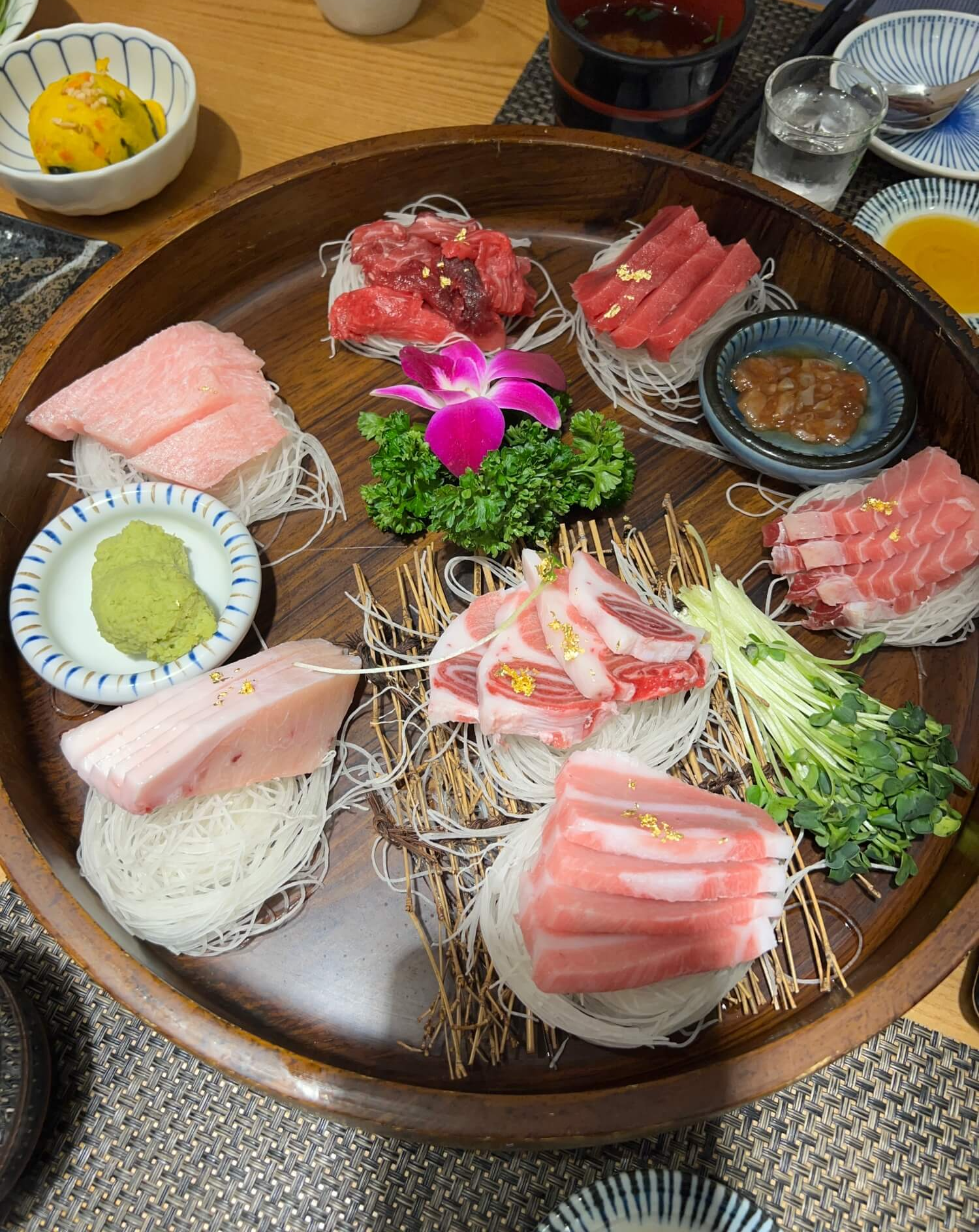 메인 참치가 나오기 전에 기본 세팅되는 음식들입니다. 초밥을 비롯해서 안주거리가 푸짐하게 나오네요. 가볍게 소주 한잔 하며 식사를 시작했습니다.