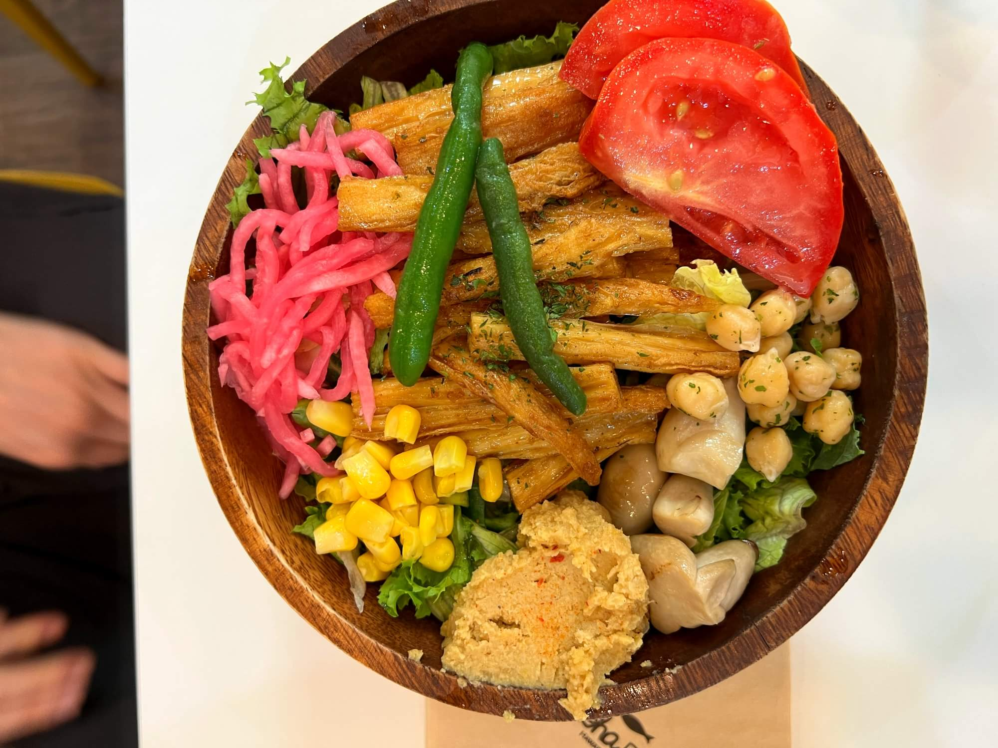 함께간 동료가 시킨 두부포케입니다. 두부를 굵게 채썰어 튀긴건데 이것도 맛은 좋았네요. 병아리콩이 요즘 맛있는 것 같아요. 병아리콩은 생긴모양이 병아리머리모양 같다하여 붙여진 이름이라고 합니다. 슈퍼푸드로 알려지면서 다이어트 하는 사람들에게 인기를 얻고 있는 식품입니다. 집에서도 샐러드는 쉽게 해먹을 수가 있긴 한데 필요한 재료들이 풍성해야 모양도 나고 하니 야채같은 건 빨리 소진해야하고 이래저래 손이 많이 가는 편입니다.