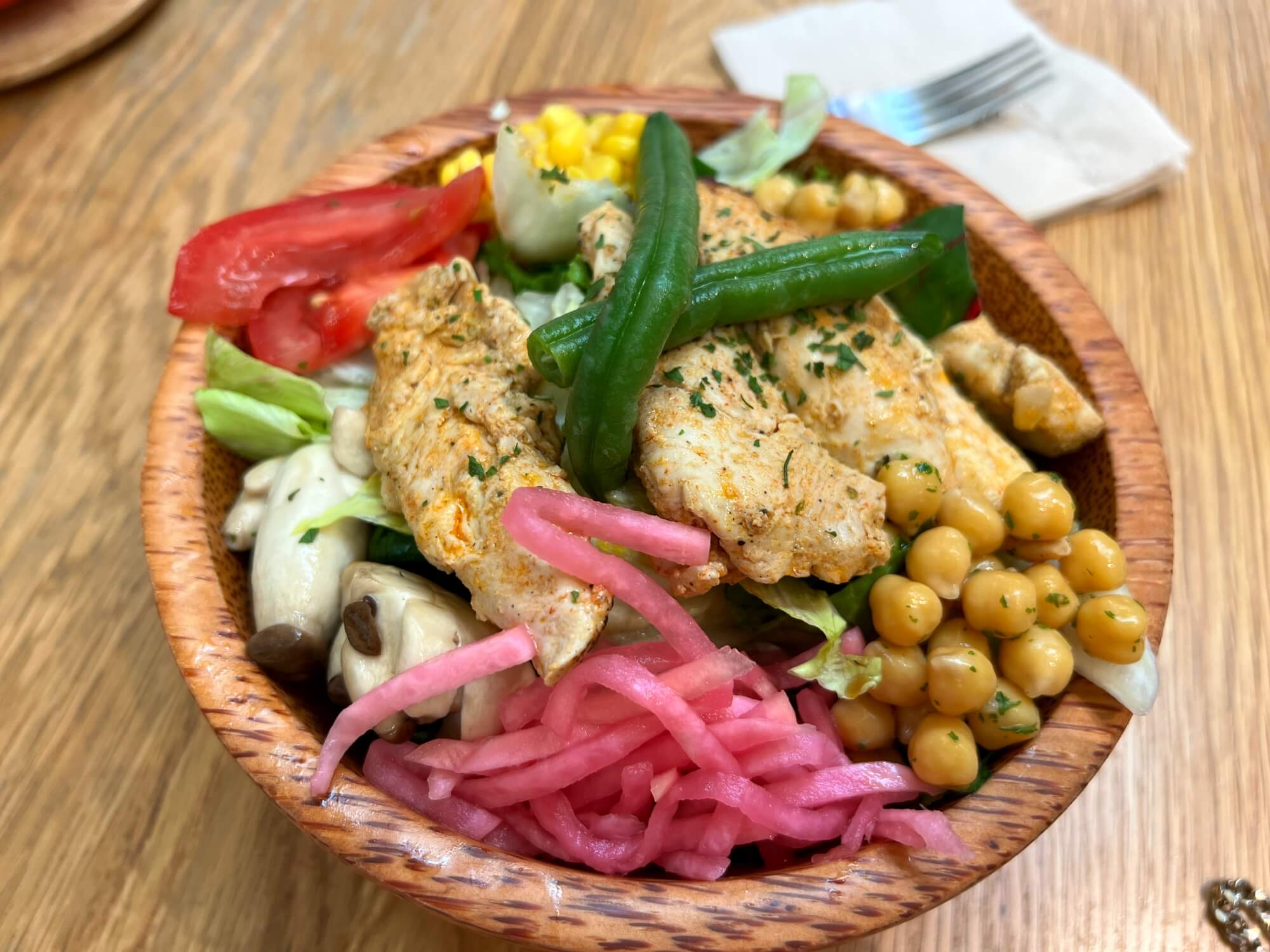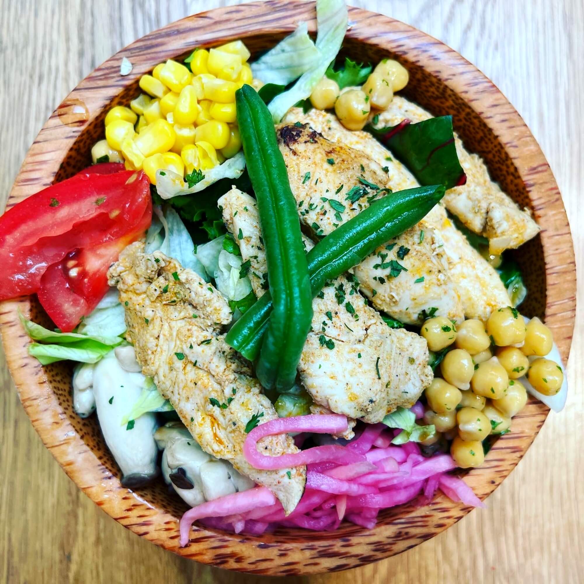 피리피리 치킨인데요. 새우와 함께 인기 있는 샐러드입니다. 닭가슴살이 푸짐하게 들어있어 포만감도 좋고 맛도 있어요.