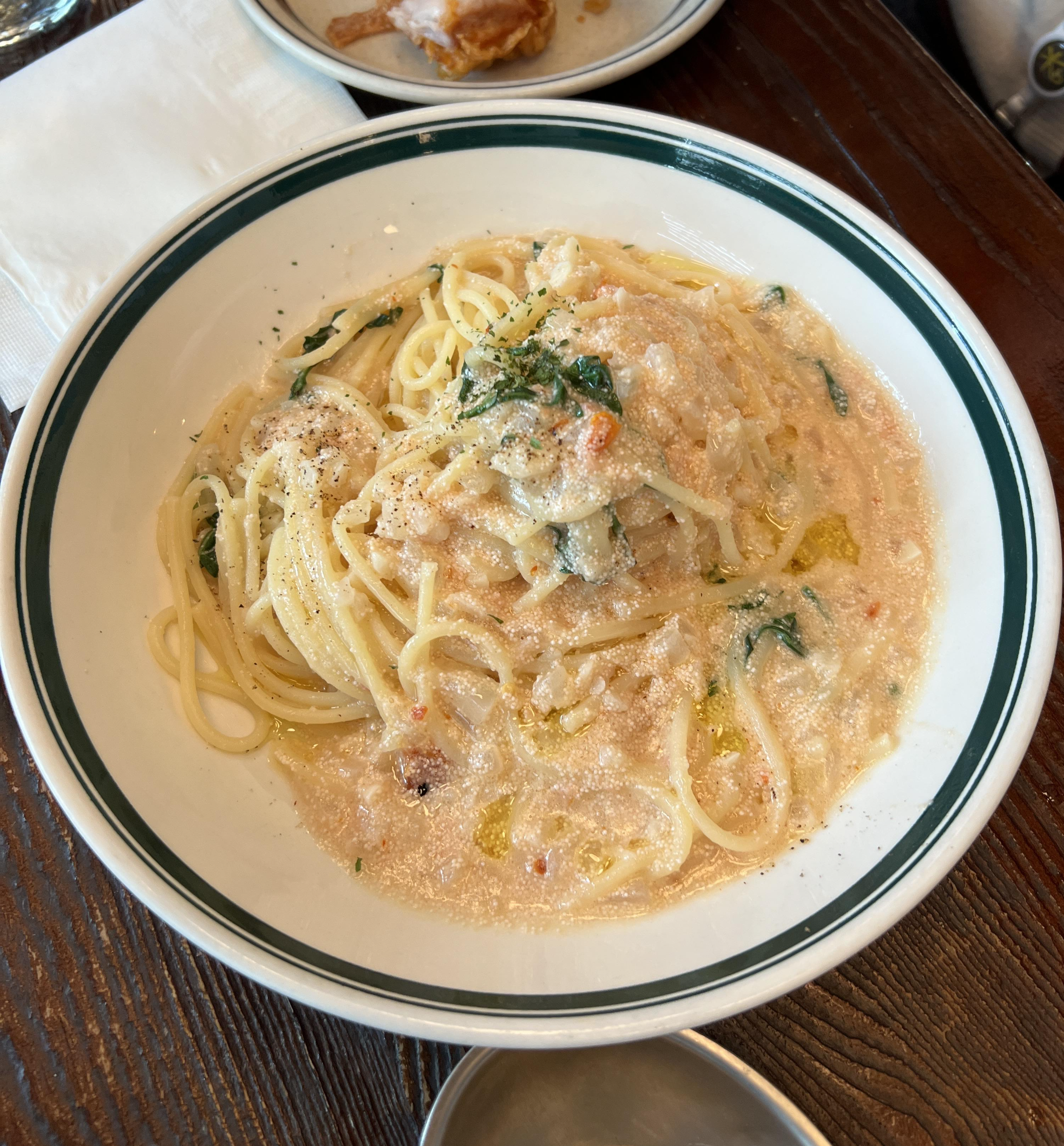 명란 파스타입니다. 사실 제가 고른 건 아니에요. 제취향은 아니지만 맛은 좋았습니다. 짜지않고 고소함이 많이 느껴져서 보기보다 맛있게 먹고 왔습니다.