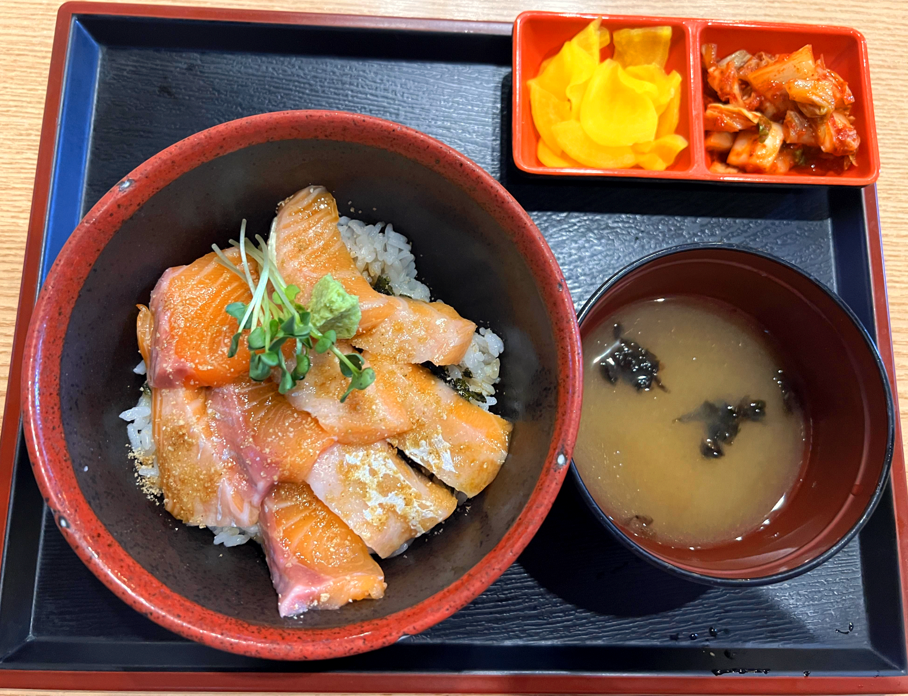 탱글탱글한 연어덮밥이 나왔습니다. 소식하는 저에게는 딱 적당한 양이었지만 대식가분들은 좀 적은 양일수도 있겠다 싶었습니다. 연어의 부드러운 식감과 고소한 밥이 잘 어우러져 저녁식사 한끼로 만족할 수 있었던 식사였습니다. 미소된장을 국물로 내주지만 저는 국물은 잘 안먹는 편이라서 한입 정도 먹었어요. 전반적으로 가격도 적당한 편입니다. 1만원이하로 먹기 어려운 요즘, 연어덮밥은 10,500원이고 1만원 미만의 식사도 있었습니다. 장어덮밥만 17,000원으로 가격대가 조금 있었네요.