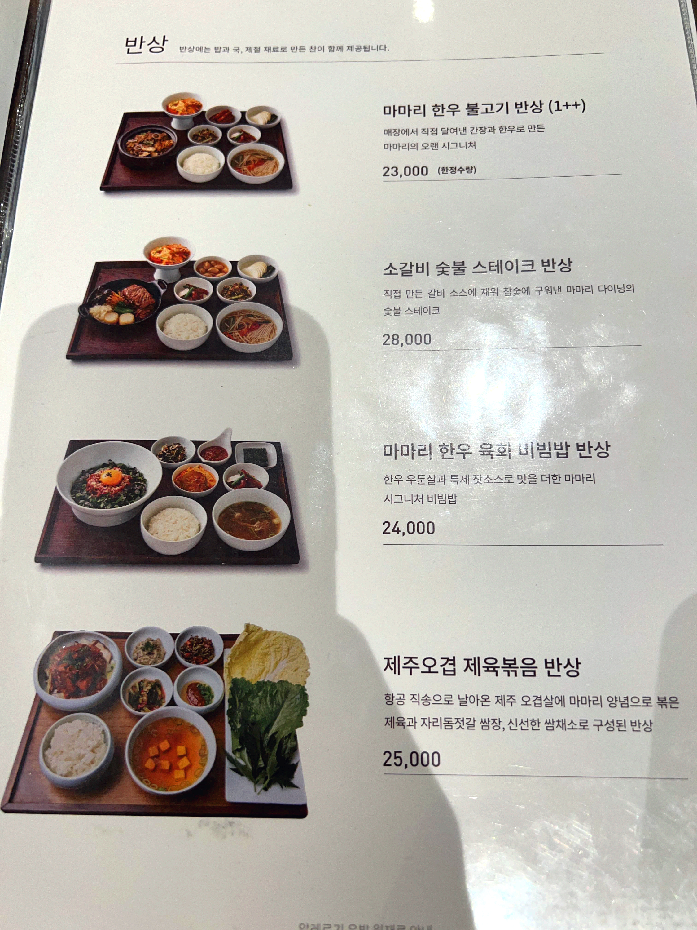 육회비빔밥도 정말 맛있어 보였습니다. 그 외 다양하게 회덥밥, 스테이크밥 등 다양한 반상이 준비되어 있답니다. 혼자 즐기셔도 좋지만 둘이가서 먹기에도 점심식사 한끼로 거뜬한 식사 메뉴 소개해봤습니다. 저는 요즘 외식하게 되면 주로 한정식위주의 식사를 찾아 다니고 있어요. 한동안 파스타와 쌀국수 요리 등을 찾아 다녔었는데 요즘엔 집밥을 잘 먹지 못하다보니 이런 것들이 땡기는 것 같습니다.
