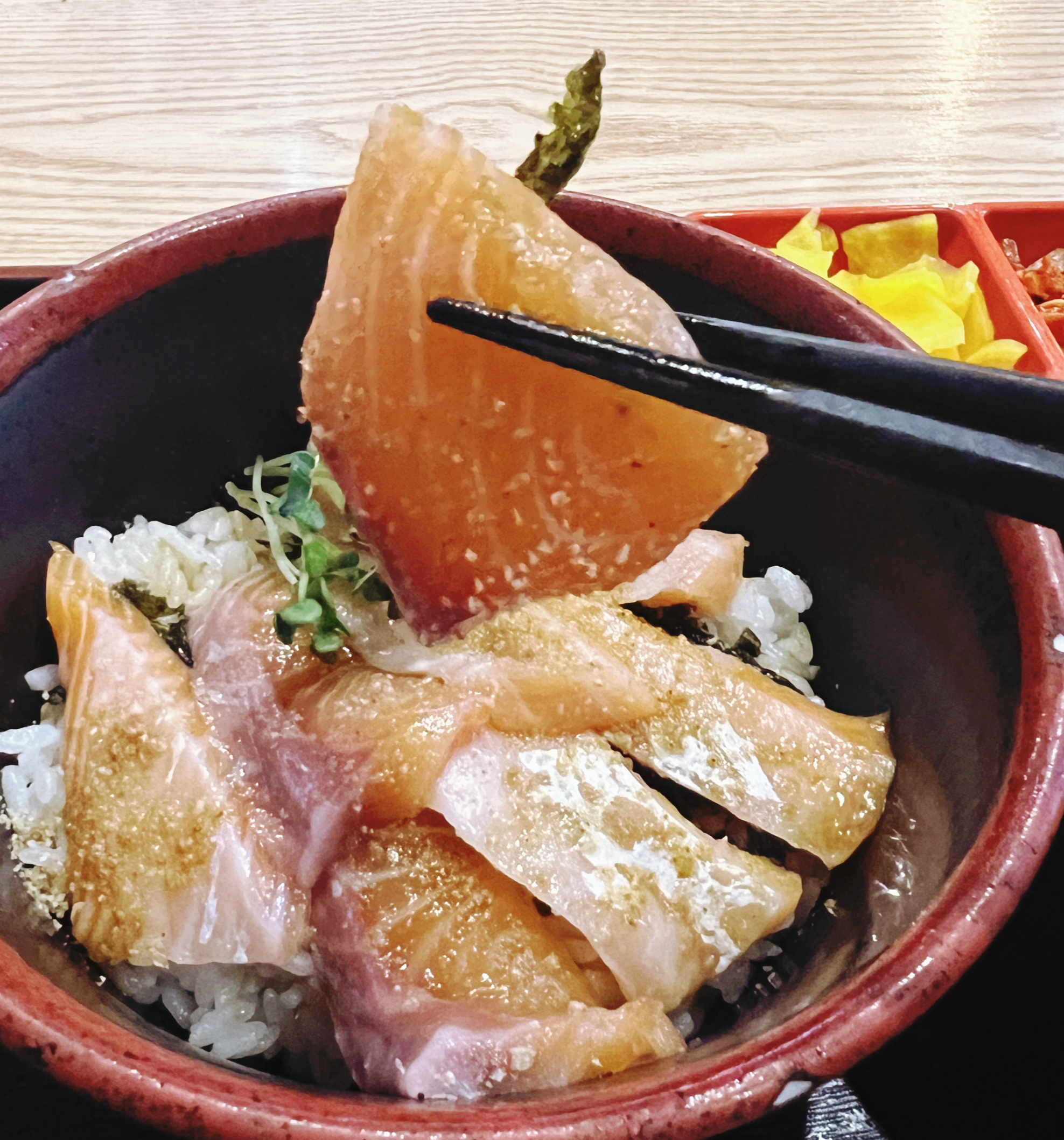 깔끔하게 1인상으로 차려져 나오는 식당이 많아 졌습니다. 반찬도 같이 섞어 먹지 않으니 위생에 더욱 좋은 것 같아요. 처음 소개할 집은 오미식당입니다. 가로수집에서 유명세를 타던 덮밥집이라고 하는데요, 꽁치덮밥이 맛있다고 하네요. 저는 연어덥밥이 먹고 싶어서 연어덮밥으로 주문했습니다.