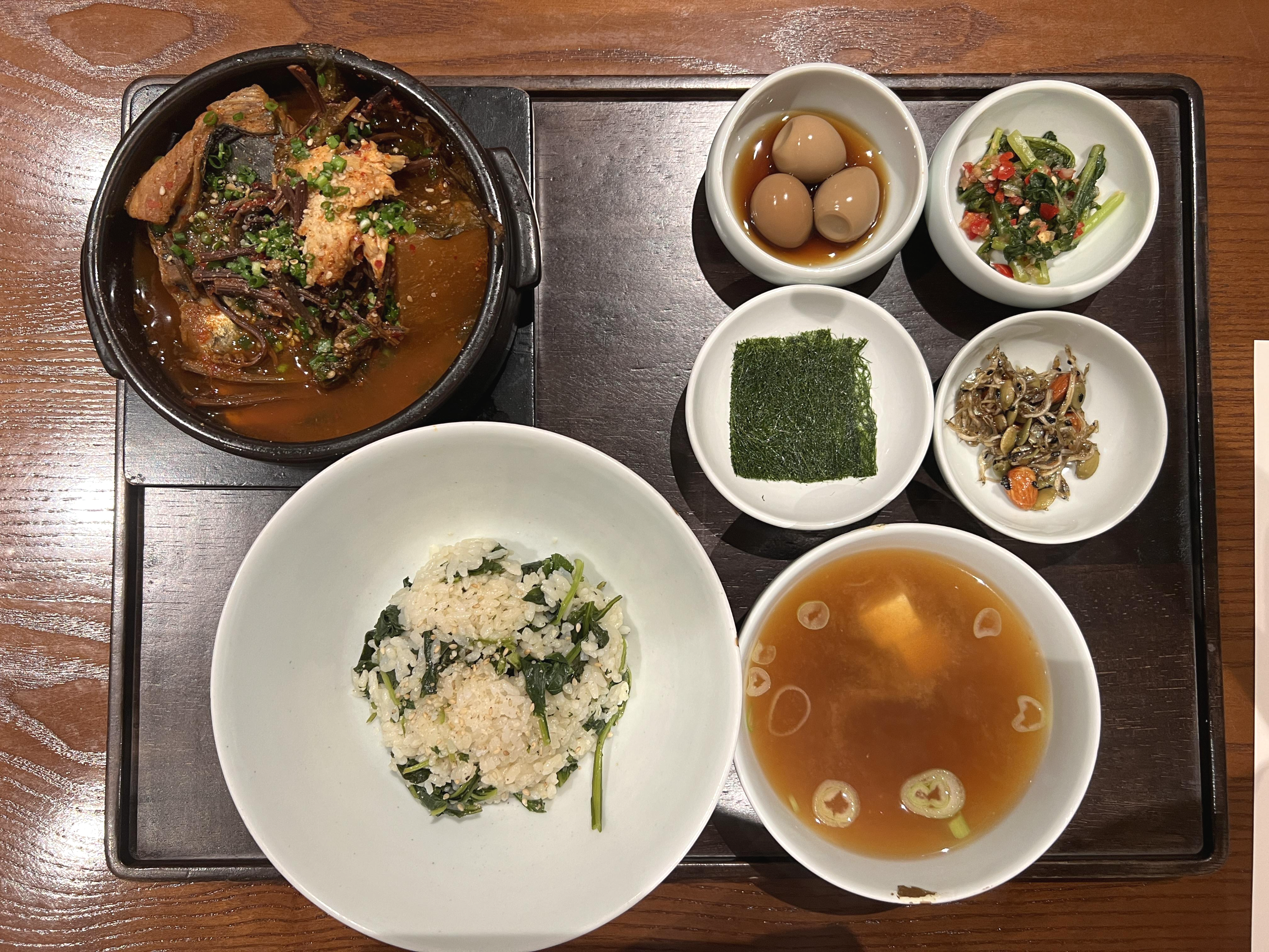 가장 최근에 다녀온 마마리다이닝입니다. 둘이가서 먹기에도 아주 좋은 깔삼한 식사였습니다. 저는 제철나물과 삼치조림을 주문했는데 삼치조림은 양이 정말 많았어요, 제 기준으로 많았겠지만 삼치도 정말 맛있었고 조림인데 짜지 않고 담백해서 좋았습니다. 나물은 곤드레나물같아 보였는데 밥을 이렇게 나물과 함께 먹으니 정말 고소했습니다.
