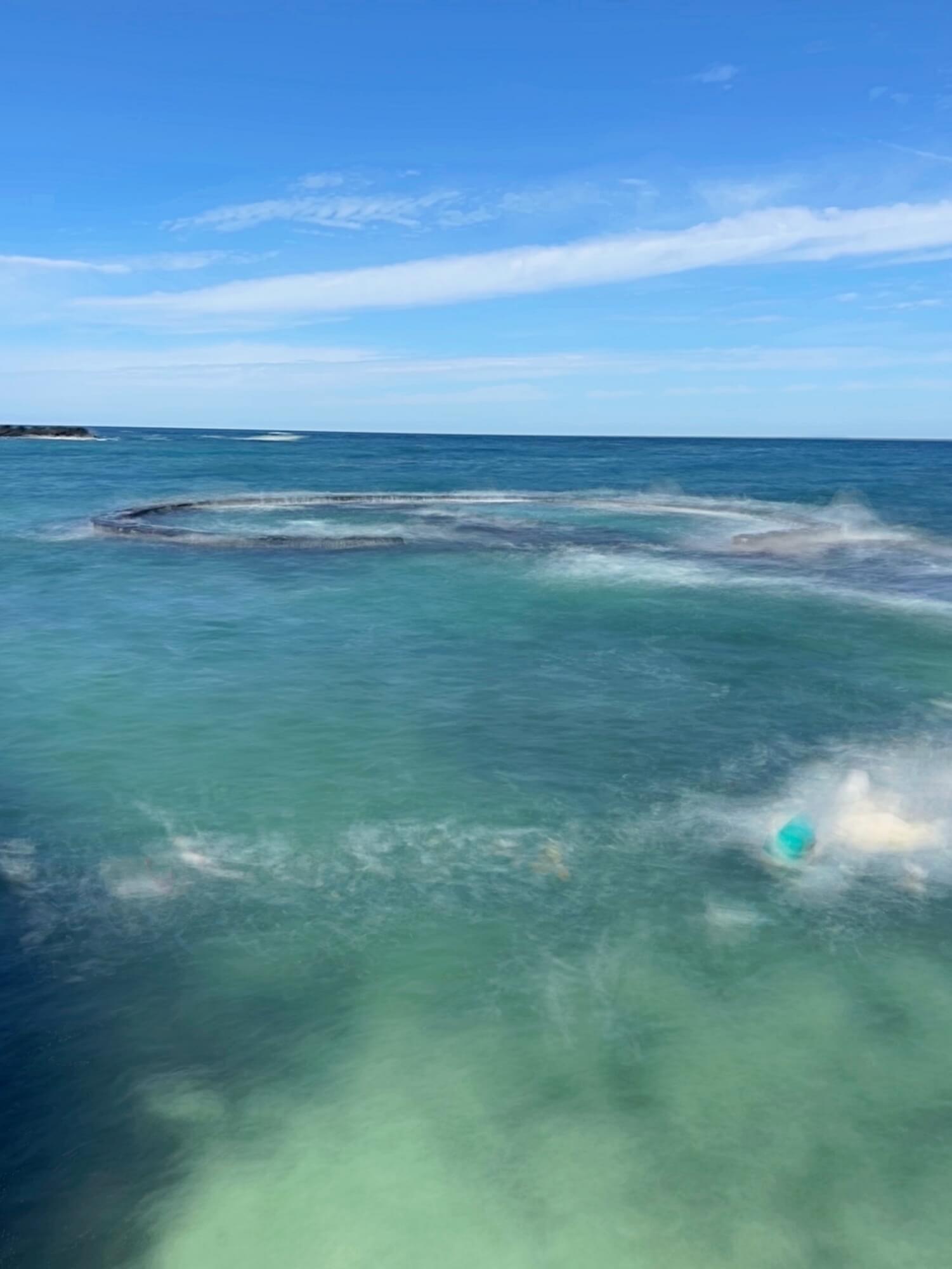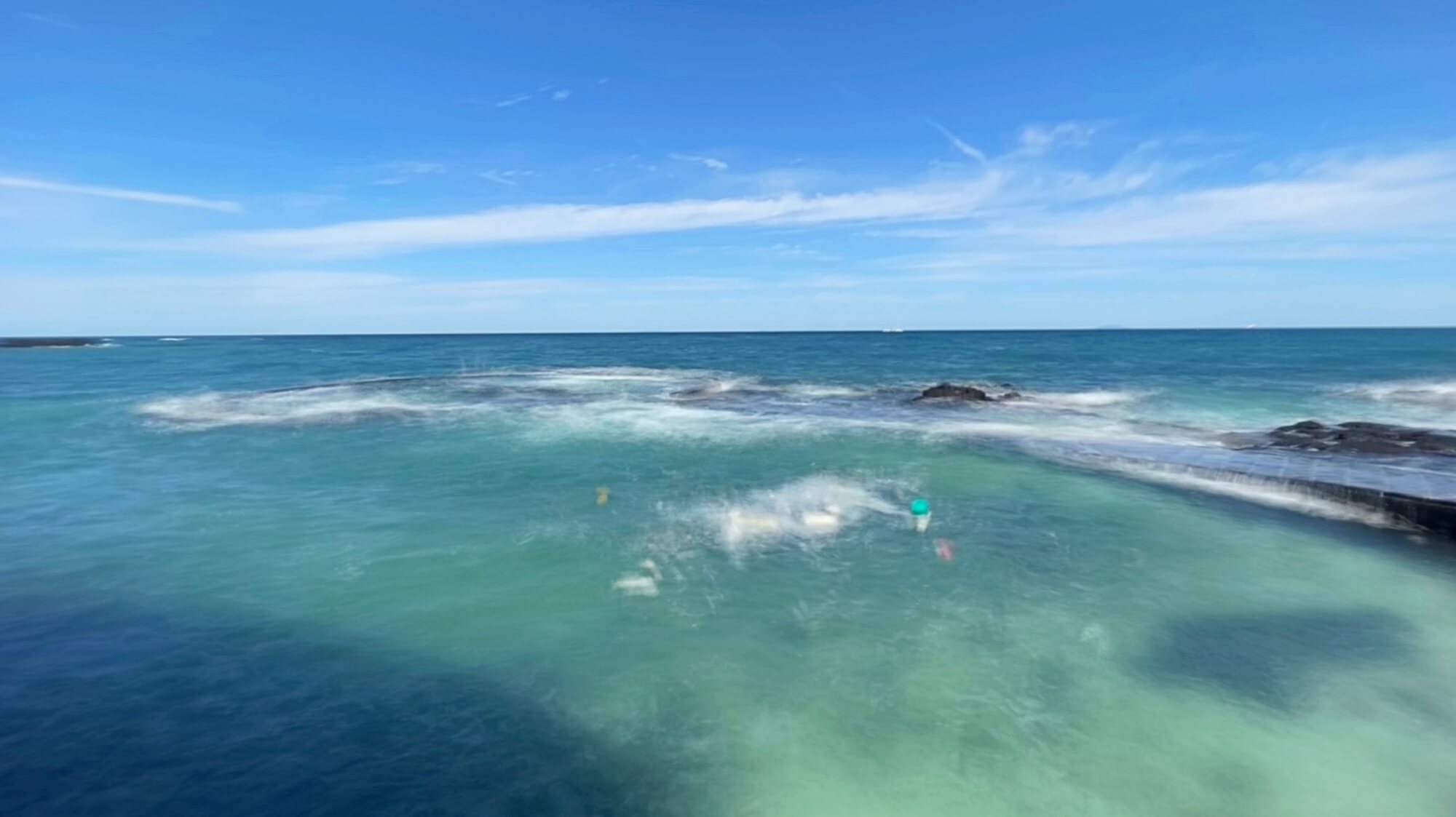 쓰레기가 중간에 두둥실 떠다니고 있었어요. 바다에 쓰레기를 버리는 걸까요? 바람에 날라오는 거겠죠? 워낙 제주는 바람이 드세니까요!