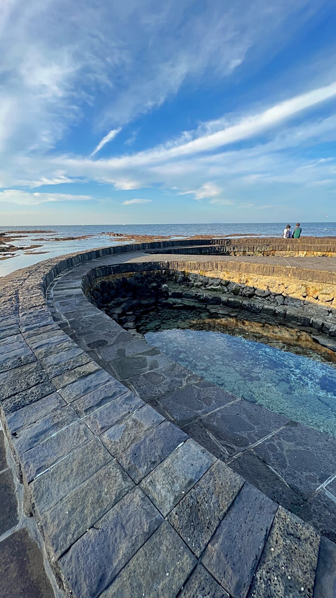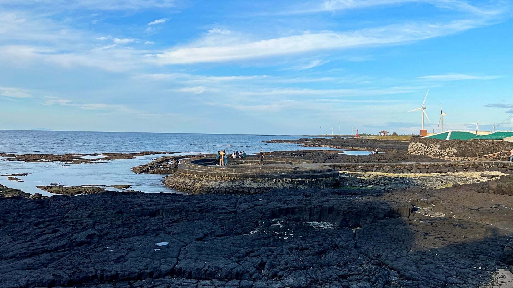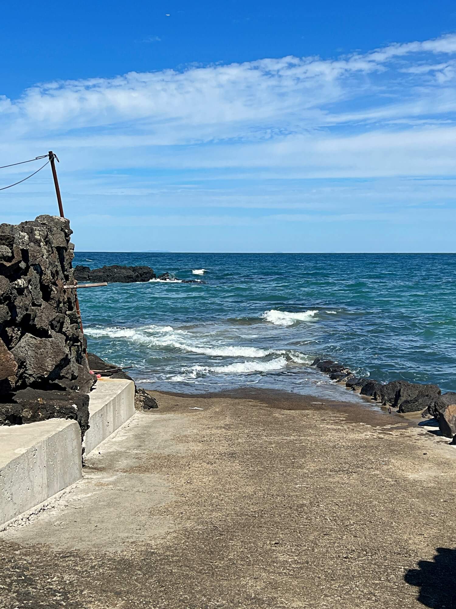 가족과 함께 온 부부가 앉아서 쉬는 모습이 보기 좋았습니다. 저도 여유있게 저렇게 앉아서 바다를 바라볼 수 있었다면 얼마나 좋았을까요? 언제든지 매일 와서 볼 수 있다는 생각에 사진만 찍고 휭하니 떠나게 됩니다. 이곳 청굴물은 용천수가 나오는 곳으로 가장 시원한 물을 느낄 수 있다는데요. 예전에 한번 담궈봤을 때 정말 차갑다고 느껴졌습니다.