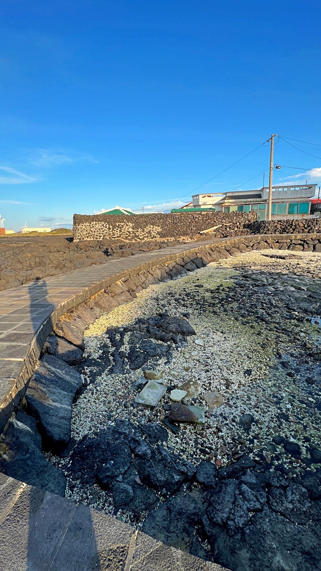 그제 김녕바닷길과 함께 다녀왔던 청굴물의 모습입니다. 간조시간인 최저의 시간에 갔더니 물이 너무 많이 빠져 있었네요. 바닷길에서 바닷길로 연결되는 길로 걸어갔어요. 그 길도 마을과 연결된 바닷길인데 만조가 되면 걸을 수 없답니다.