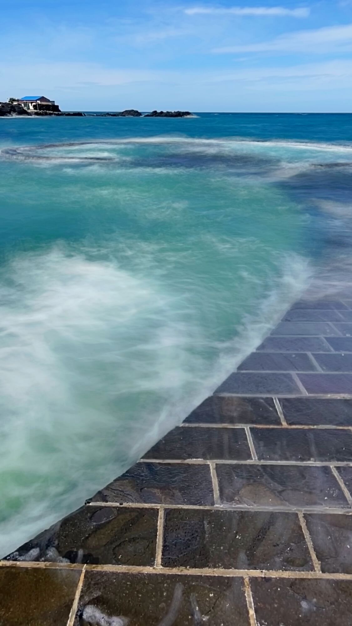 김녕바닷길 옆 청굴물로 가는 마을과 바짝 붙어있는 바닷길입니다. 물이 점점 차오르면서 완전 가득차올랐습니다.