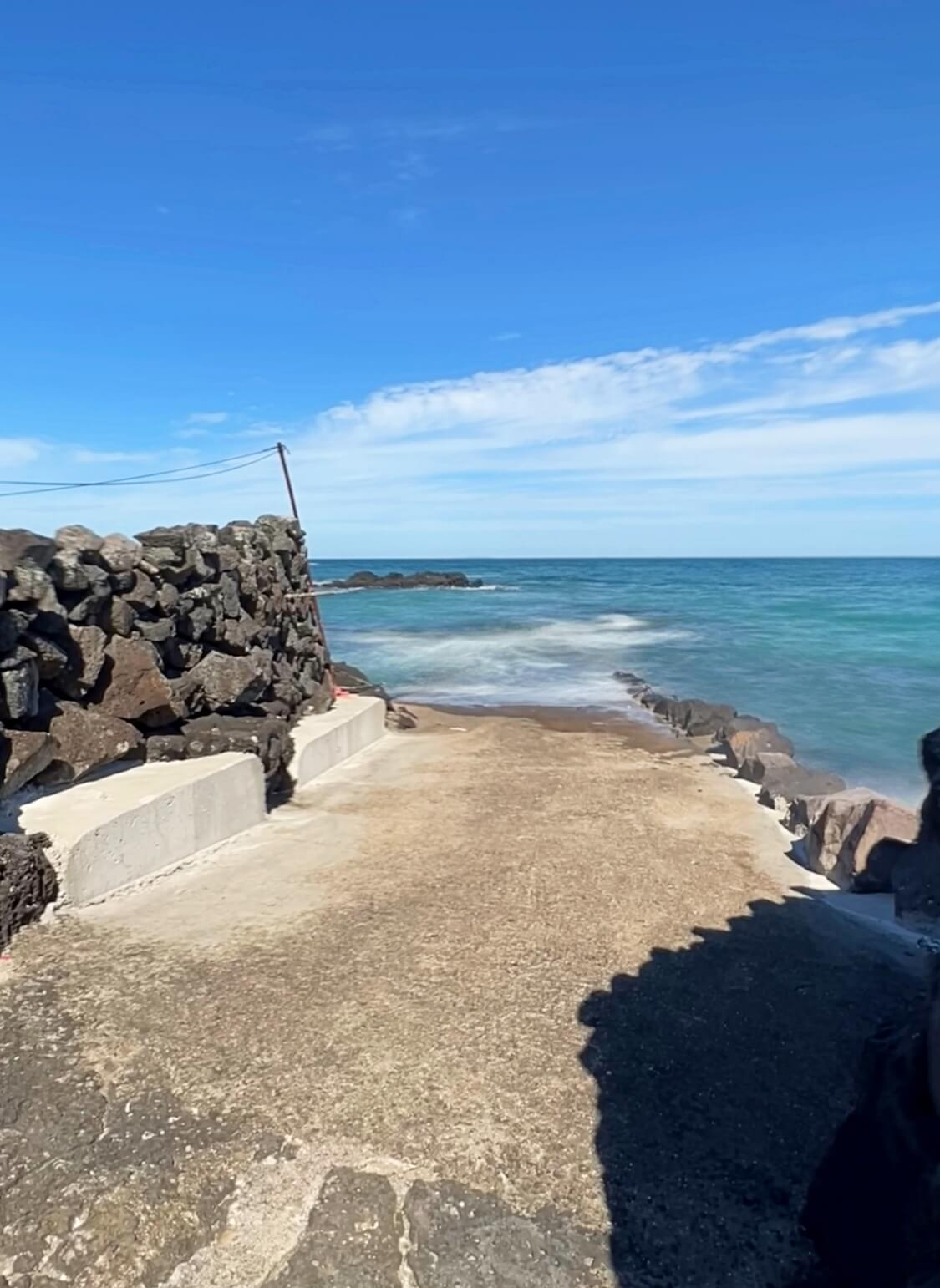 이곳은 청굴물 옆쪽으로 바닷길과 이어지는 길인데 간조(왼쪽)때와 만조(오른쪽) 때의 모습을 담아봤습니다. 돌담 옆으로는 바로 집인데 태풍불면 좀 무서울듯도 해요. 바다가 바로 붙어 있는 집. 낭만적이긴 합니다.