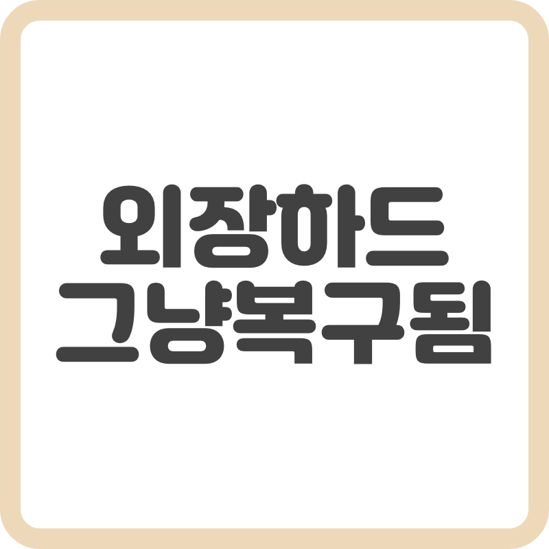 저도 최근에 백업해두었던 자료들이 있어 걱정을 많이 했는데 이렇게 쉽게 복구가 되는 걸 보고 안심이 됐습니다.SSD 외장하드 복구하기 외장하드는 데이터를 저장하고 이동할 수 있는 편리한 장치입니다. 하지만 갑작스럽게 외장하드에 문제가 생겼을 때는 당황스러울 수 있습니다. 이런 상황에서 복구를 위해 필요한 프로그램과 체계적인 복구 방법을 알려드리겠습니다.