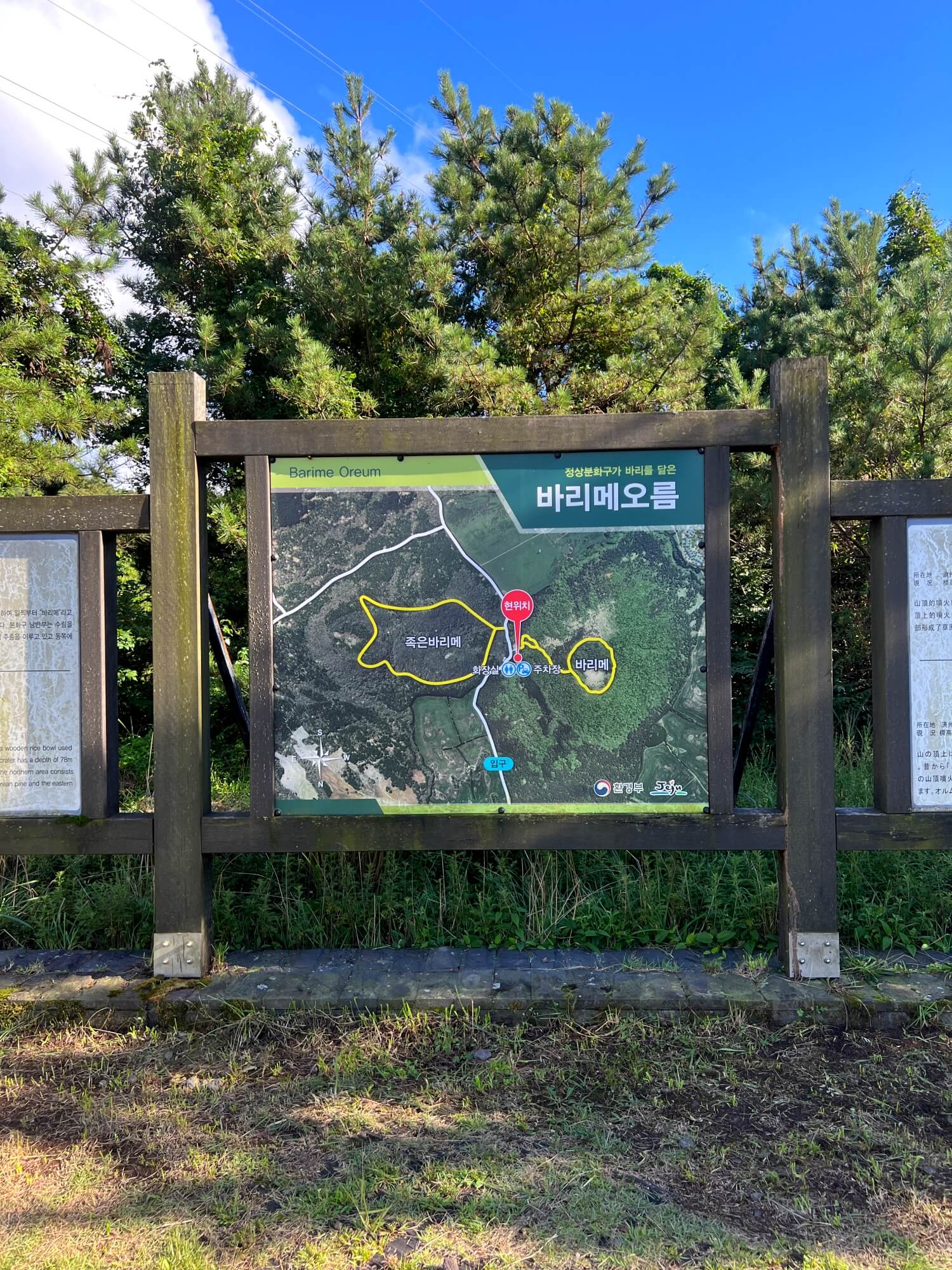 바리메오름 입구에 있는 화장실과 안내판입니다. 정면을 기준으로 오른쪽이 큰바리메오름 왼쪽이 족은바리메오름입니다. 입구 주변은 관리가 잘되고 있는 곳 같았습니다.