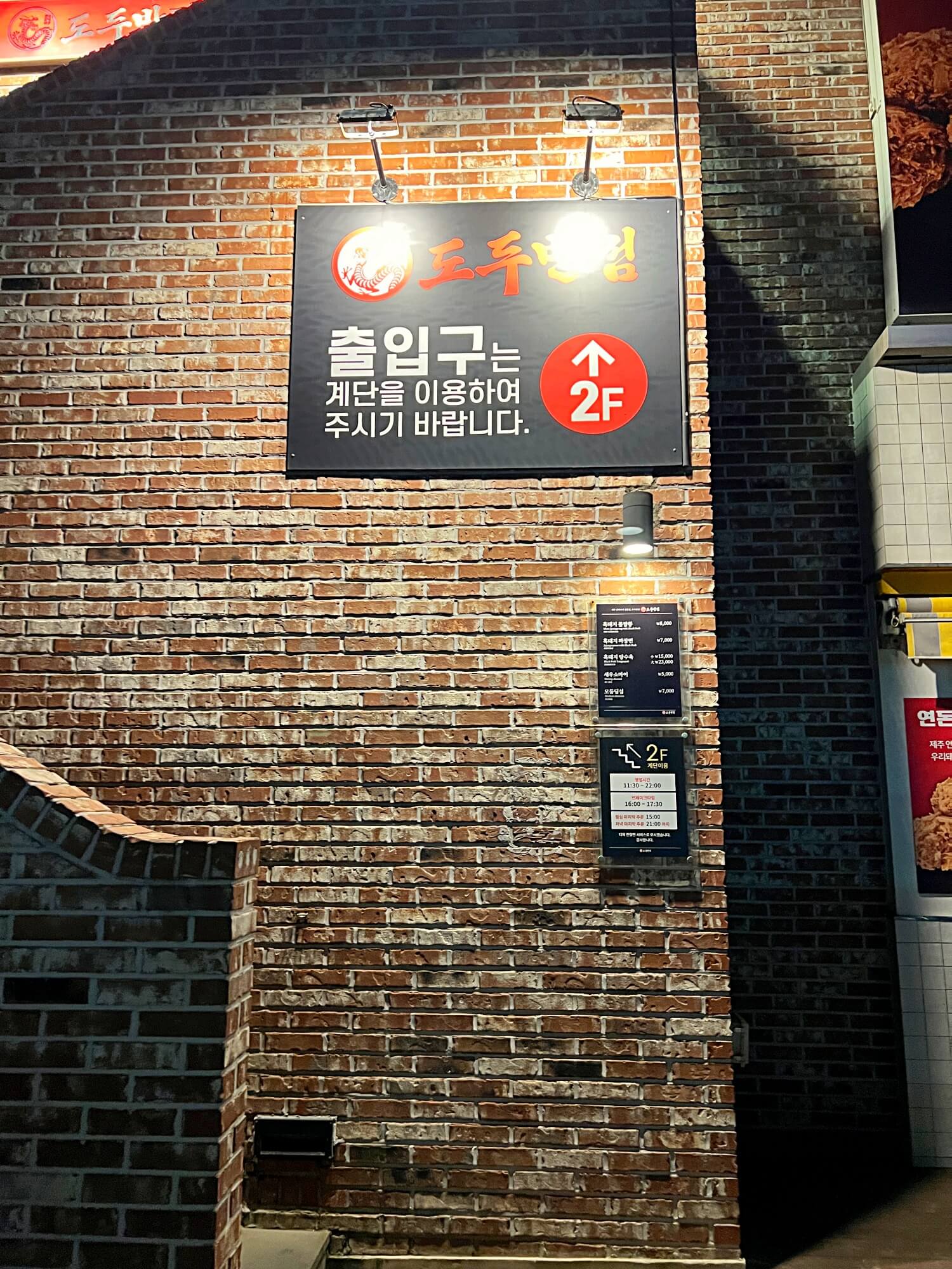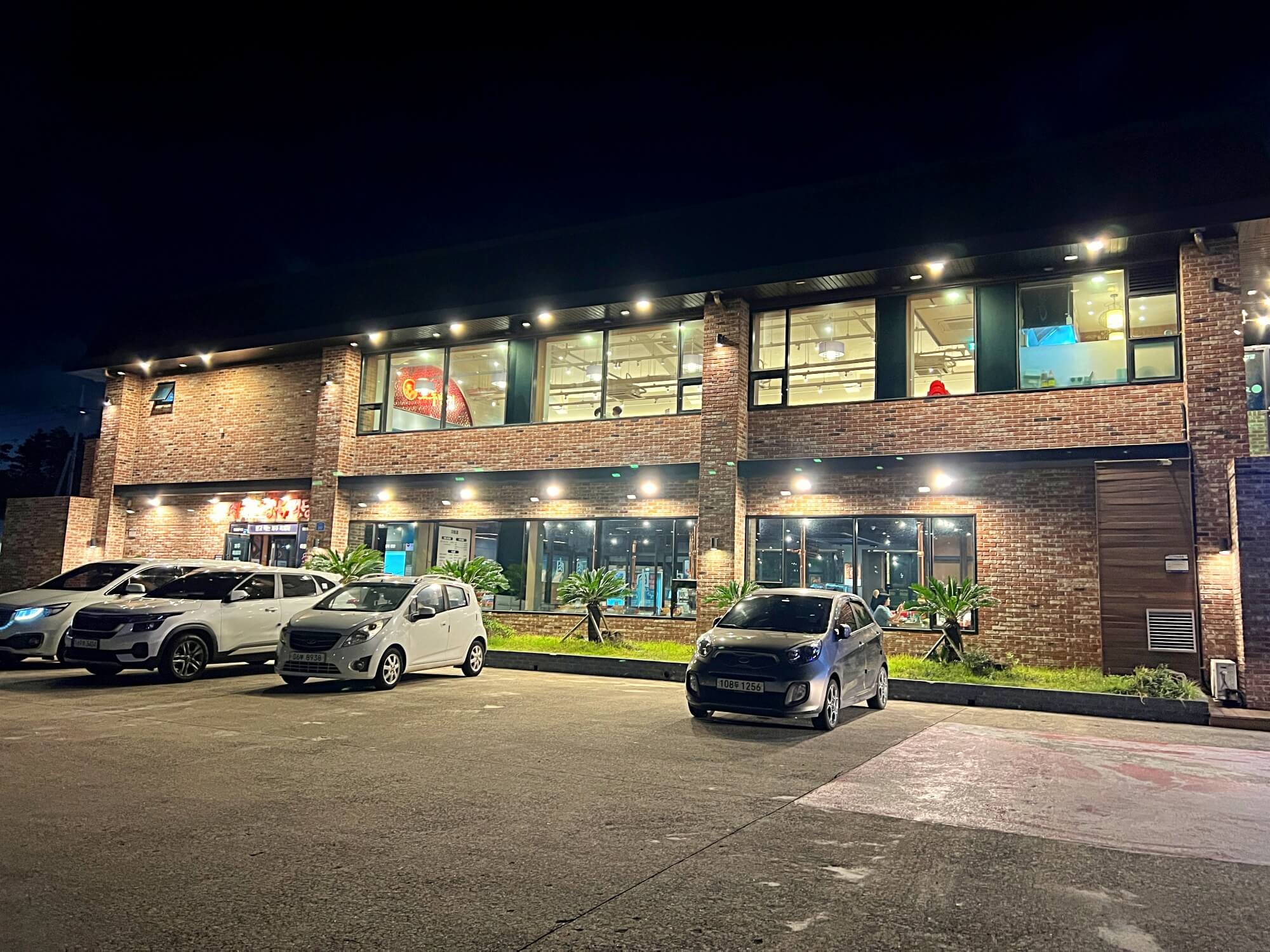 빨간벽돌로 지어진 2층 건물입니다. 길게 뻗어 있는 건물의 1층은 다른 식당이 자리하고 있었고 도두반점은 2층에 위치하고 있어 바다전망이 더 좋답니다. 저녁이라 사람은 별로 없었어서 주차장도 널널했고 홀에도 한가한 모습이었어요.