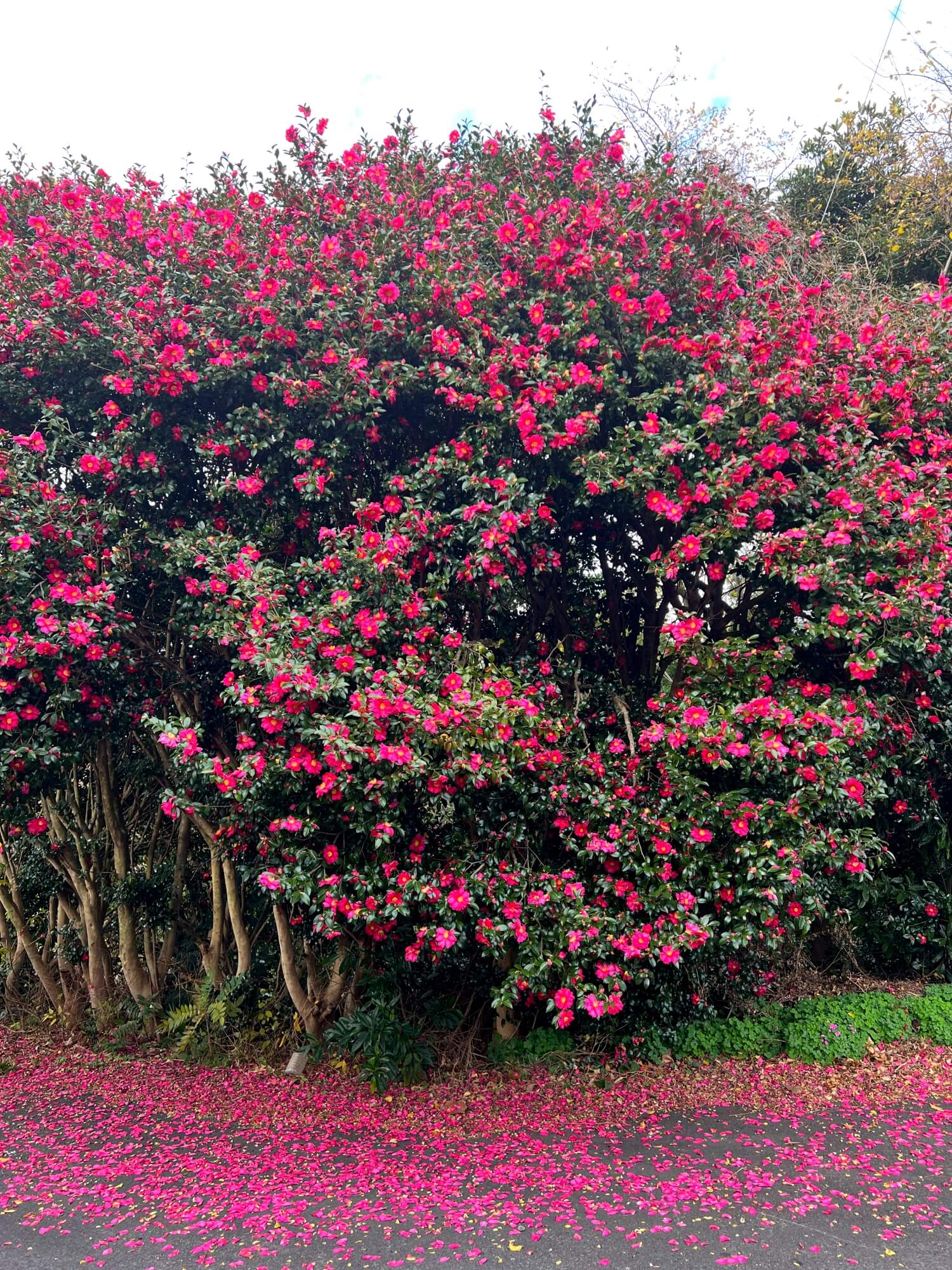 저야말로 동백꽃이 이렇게 가까이에 있는데 멀리 찾으러 갈 생각만 했습니다. 제주는 바람부는 날이 많이 꽃이 활짝 피자마자 바람에 떨어지는 꽃잎들도 있답니다. 오래 피어있지 못하는 경우도 많아보입니다. 동백꽃이 풍성하게 피어나면 온통 핑크빛으로 물든답니다.