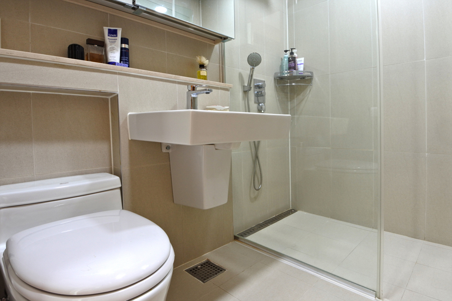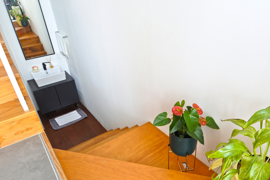 게스트 화장실은 살짝 계단 아래로 내려갑니다.