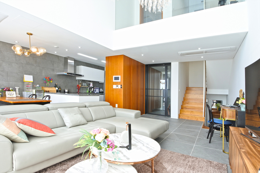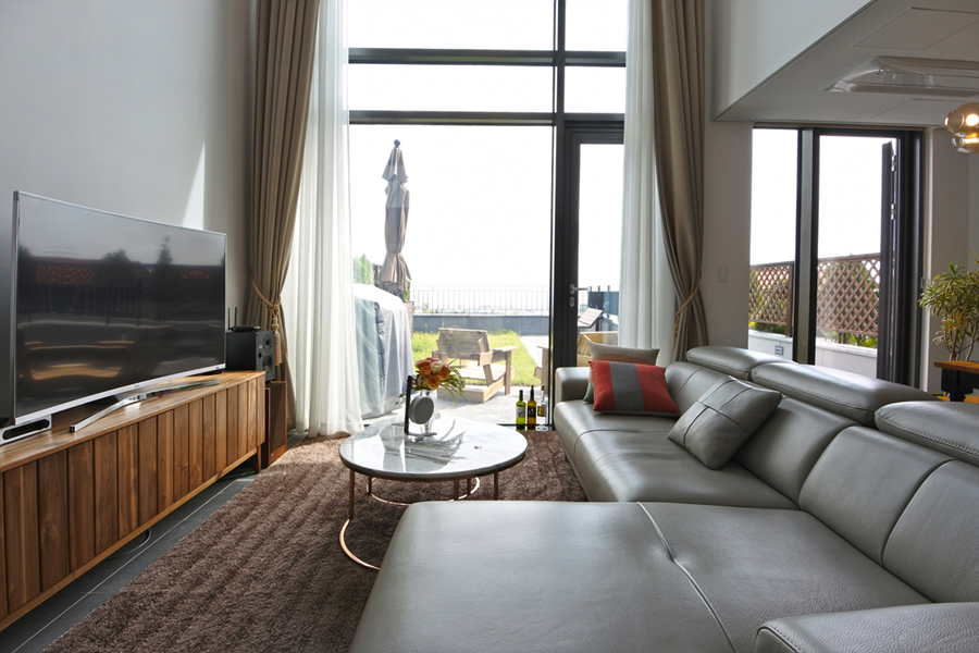 3층거실에는 미닫이 유리문이 있어 소음 등을 막을 수 있습니다.