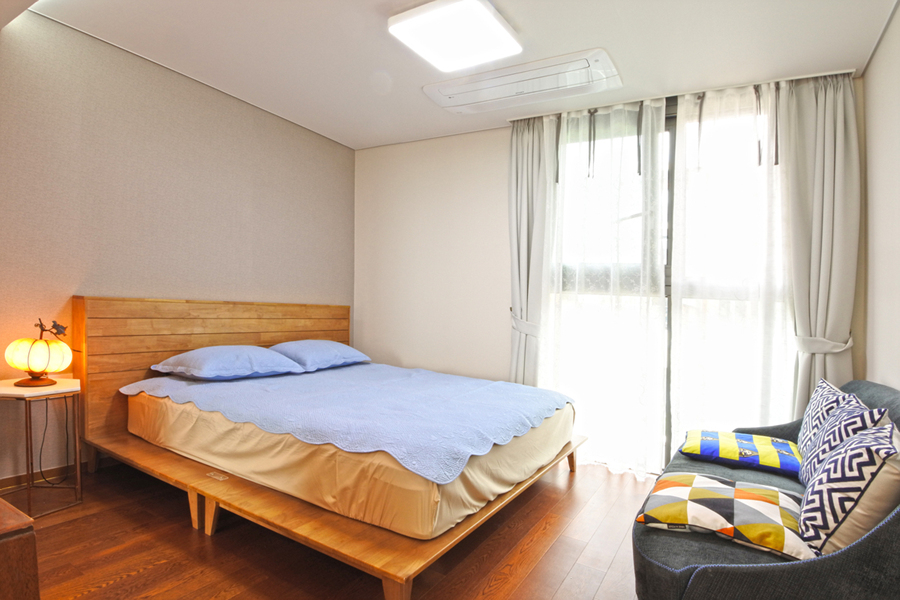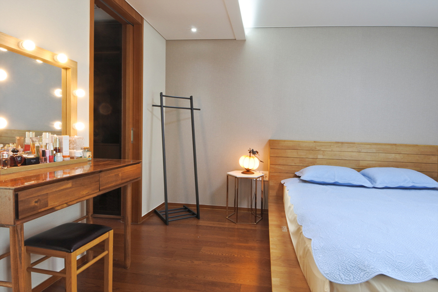 2층 침실입니다. 킹사이즈 침대와 원목 화장대가 옵션입니다.