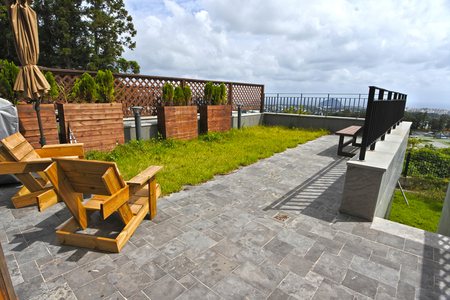 야외 테라스에요. 환상의 바베큐를 할 수 있는 공간입니다. 지금은 잔디가 어떻게 관리되고 있는지 모르겠네요. 참고로 사진을 찍지 못한 공간이 지하 입니다. 지하라고 표현하지만 그곳이 1층이라고 할 수 있을 만큼 통유리 밖으로 바다가 잘 보입니다. 다용도실로 사용하시기에 정말 좋은 공간입니다. 시스템 에어컨이 설치되어 있어 냉온풍기 같이 이용하시면 됩니다.