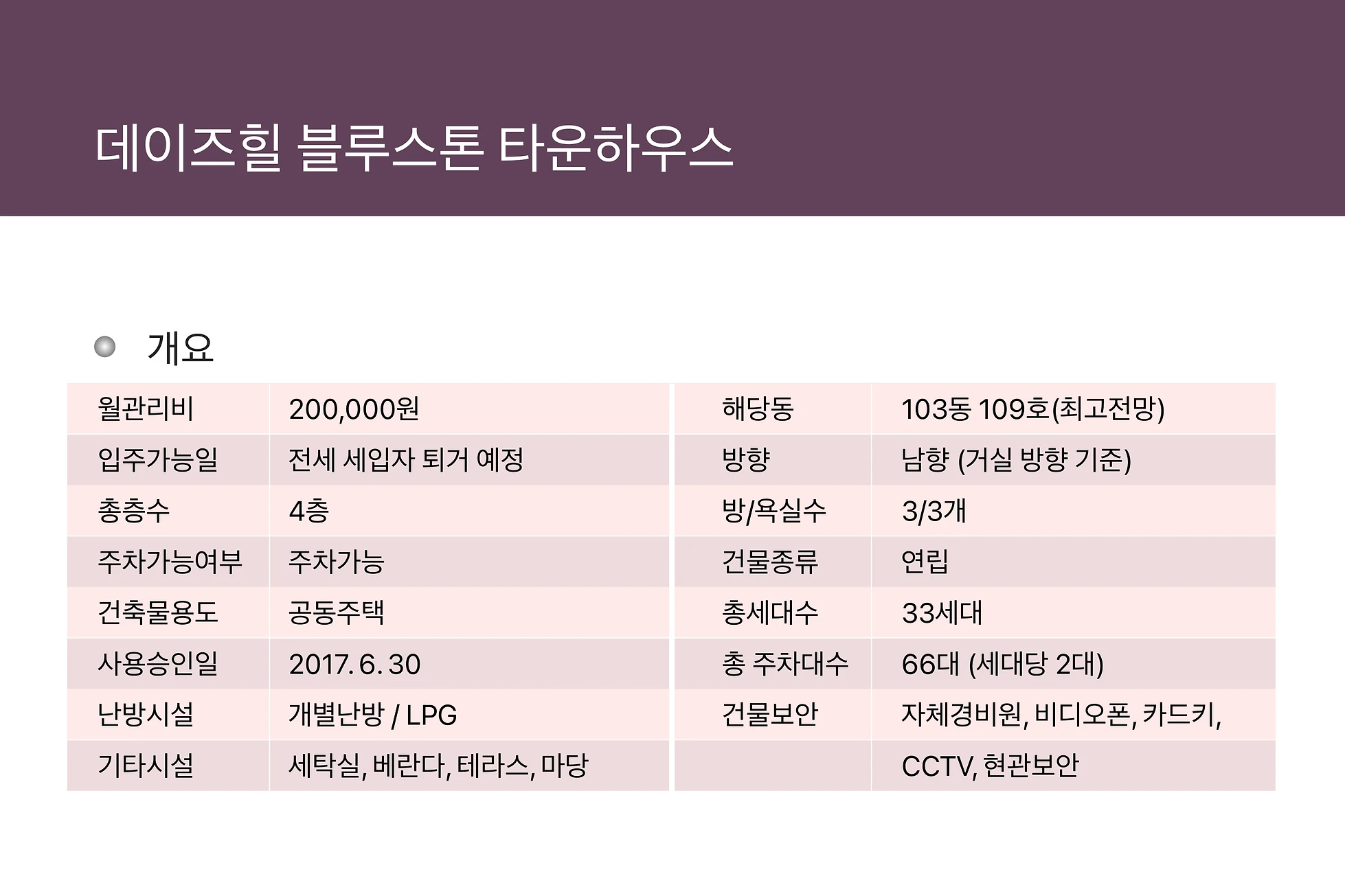 그냥 구경오실 분은 사절합니다. 집이 마음에 들고 정말 생각 있으신 분들만 연락주시면 감사하겠습니다. 이 단지는 관리자분이 타운하우스에 거주하고 계십니다. 그래서 관리가 정말 잘 되어 있고 이 곳 타운하우스에서는 한달살기 등 숙박업은 할 수 없도록 관리단에서 철저히 관리하고 있어 조용히 지내실 분들에게 최적의 공간을 제공하는 곳입니다.