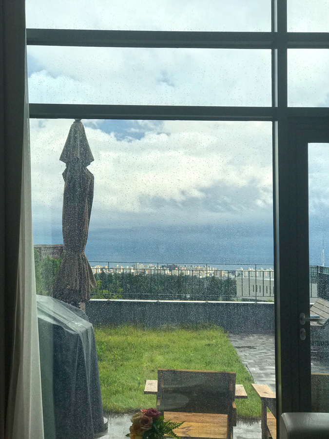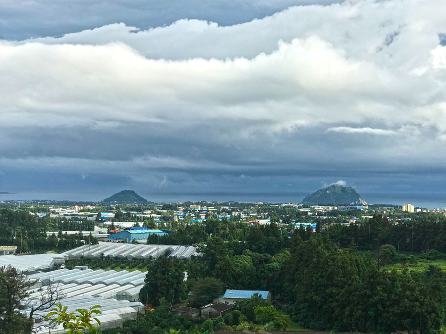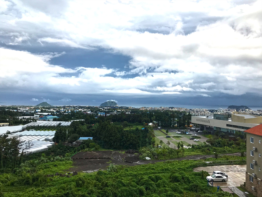 비오는 날 1층 거실에서 바라본 서귀포 바다 입니다. 앉아만 있어도 힐링이 되는 아름다운 전망이에요.
