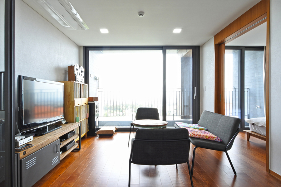 3층거실에는 미닫이 유리문이 있어 소음 등을 막을 수 있습니다.