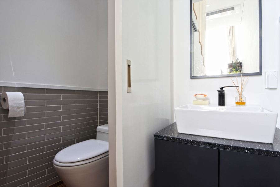게스트 화장실은 살짝 계단 아래로 내려갑니다.
