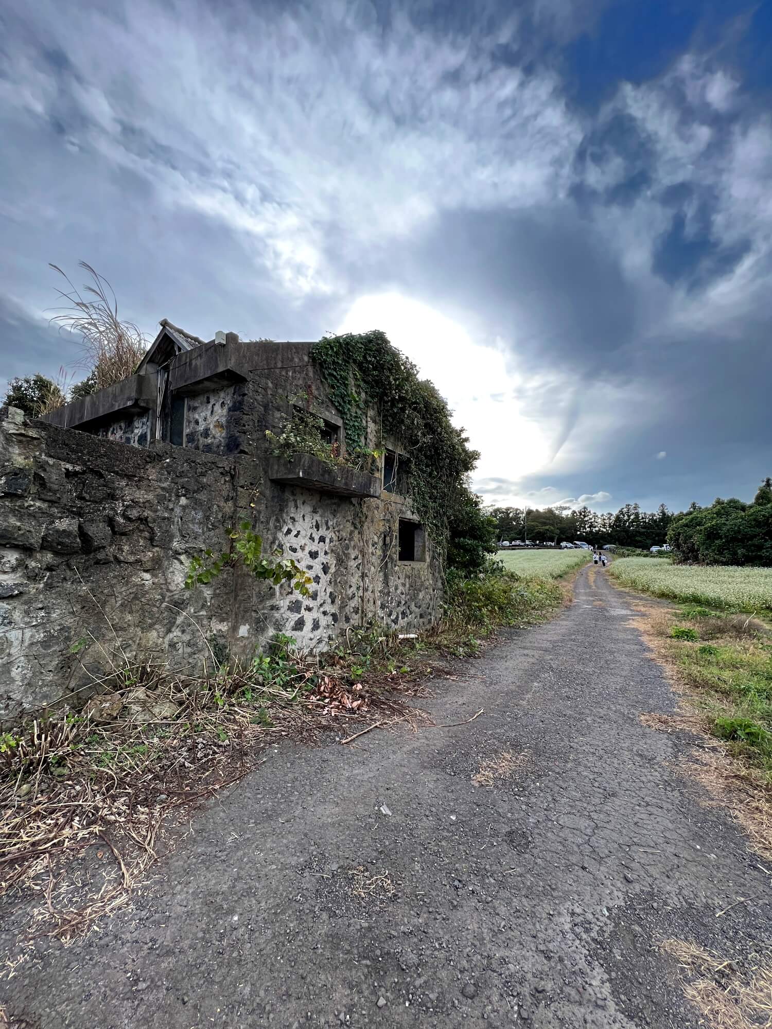 입구에서 한참을 걸어와 뒤를 바라보니 저멀리에 바다도 보였습니다. 구름이 많아서 태양은 구름속에서 잘 나오질 않았어요.