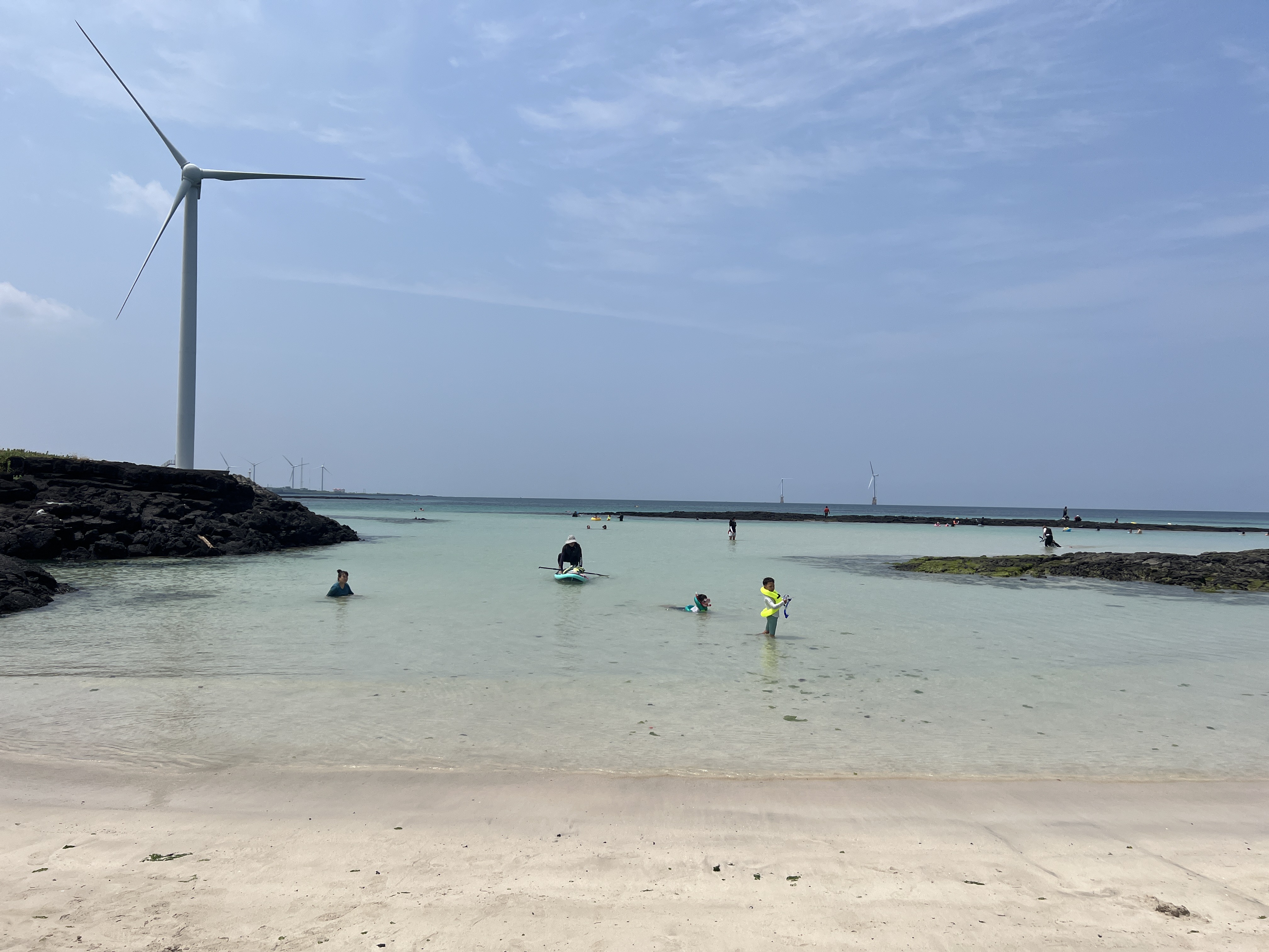 어제 날이 좋아서인지 물이 정말 맑았습니다. 물고기가 낮은 곳까지 와서 노는 모습이 많이 보였어요. 물고기와 게를 잡는데 신이난 아이들도 많았습니다. 정식 해변이 아니기 때문에 안전요원도 없습니다. 개별적으로 안전은 철저히 지켜가며 물놀이를 하셔야 해요. 주변에는 안전요원이 있는 해변으로 가서 물놀이 하라는 현수막도 붙어 있습니다.