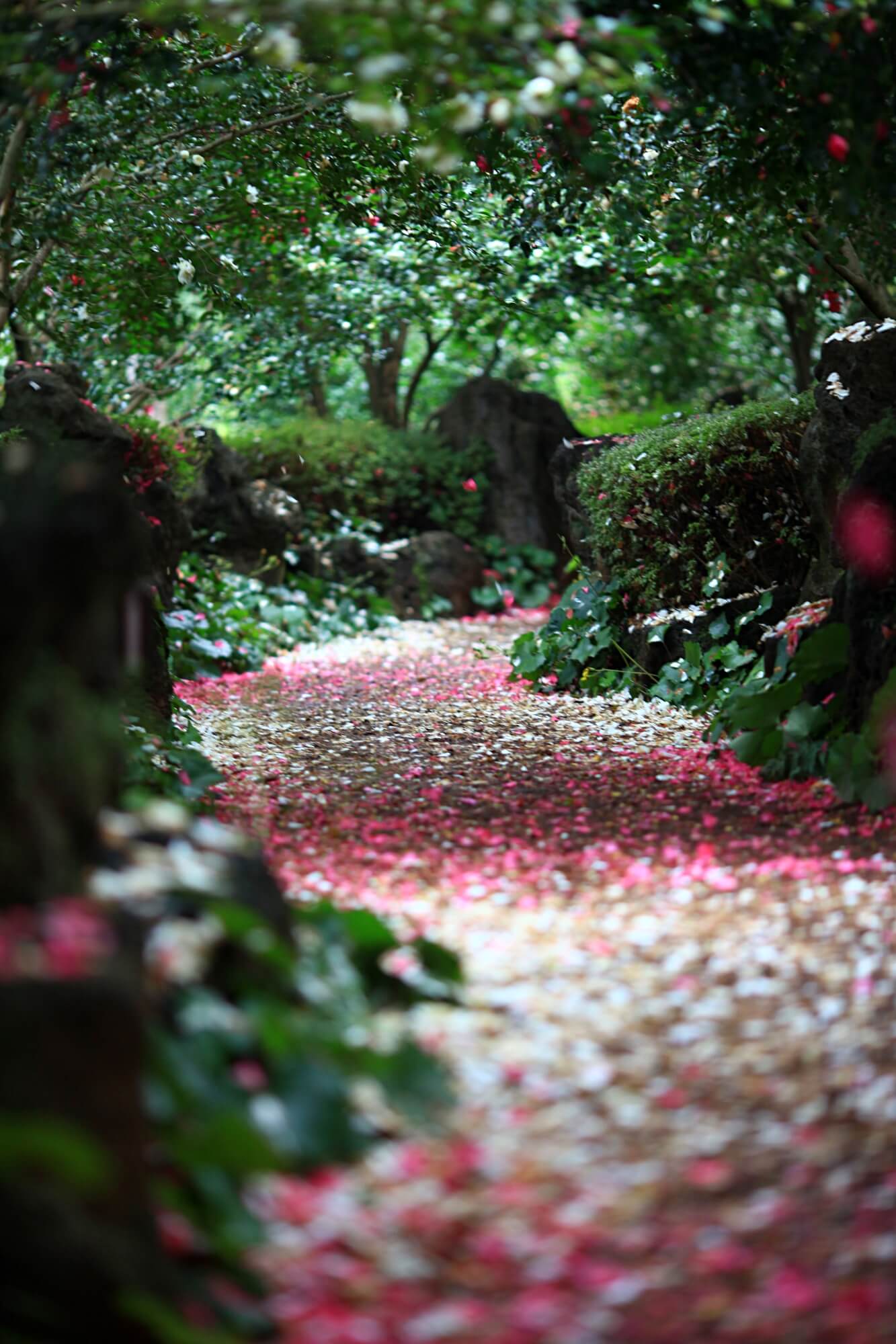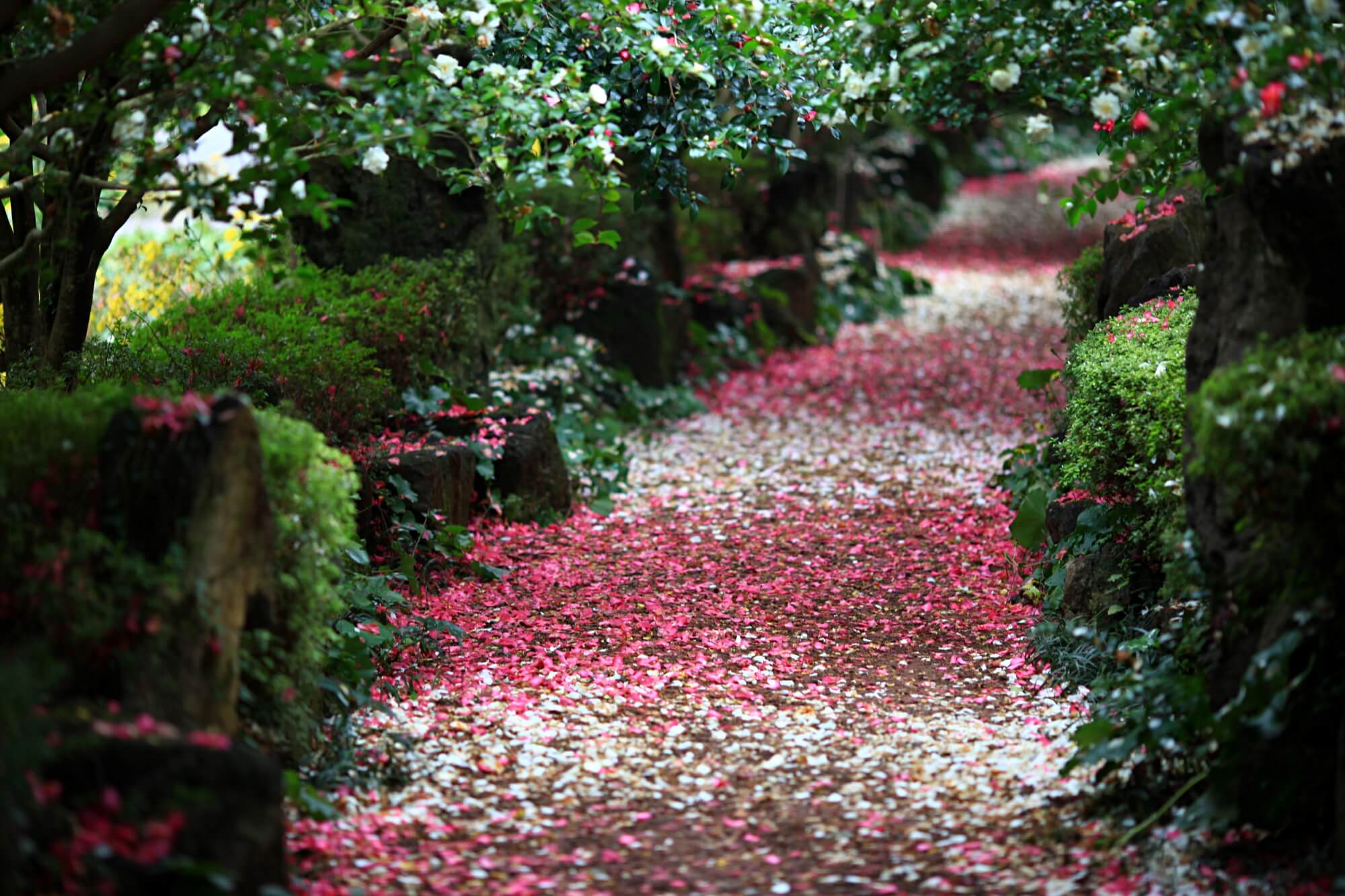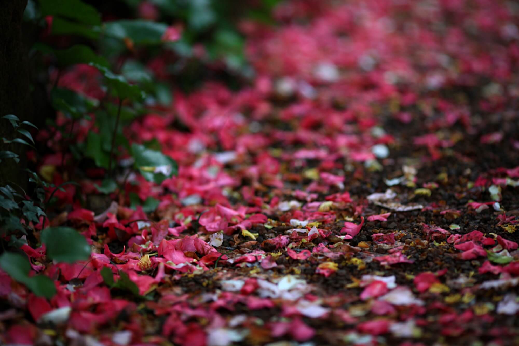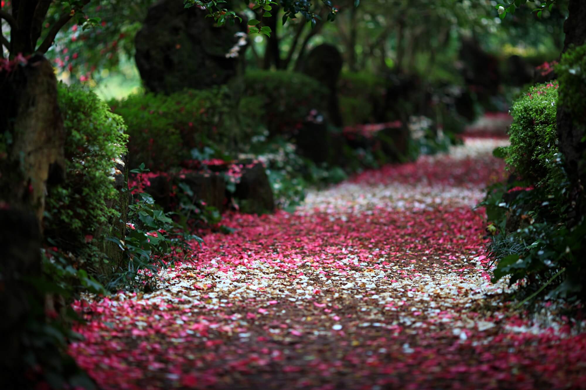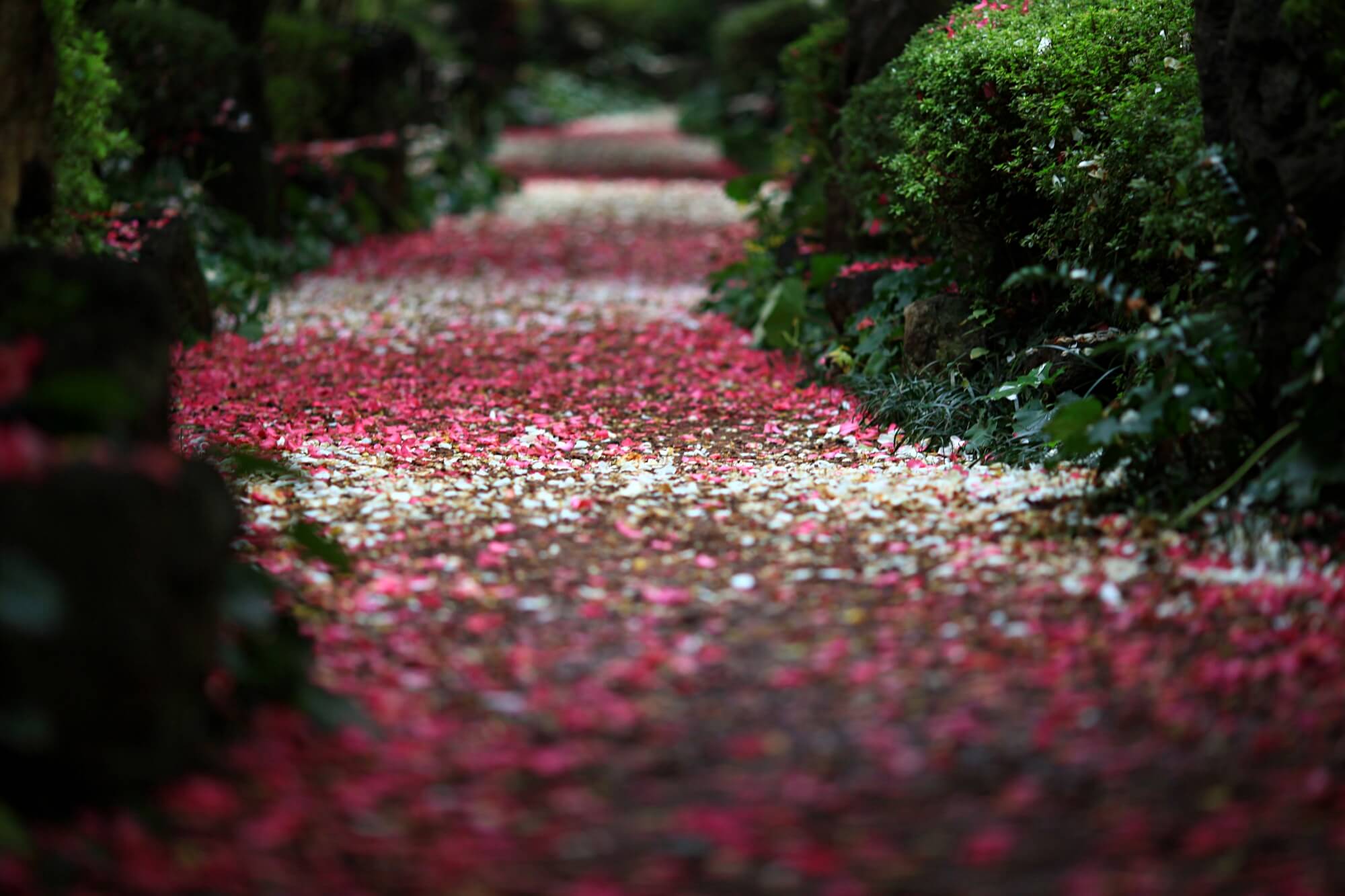 보는 화면에 따라 꽃들의 색상이 제각각 달라보일텐데요. 사진은 모두 보정하지 않은 원본입니다. DSLR카메라 단렌즈로 촬영했어요. 이 꽃잎들을 차마 밟고 지나가지 못하겠더라구요. 사진을 찍고 또 찍고 한참을 찍어도 다른 사람들이 오지 않았어요. 그래서 결국은 함께한 사람들이 먼저 이 길을 걸어갔습니다.