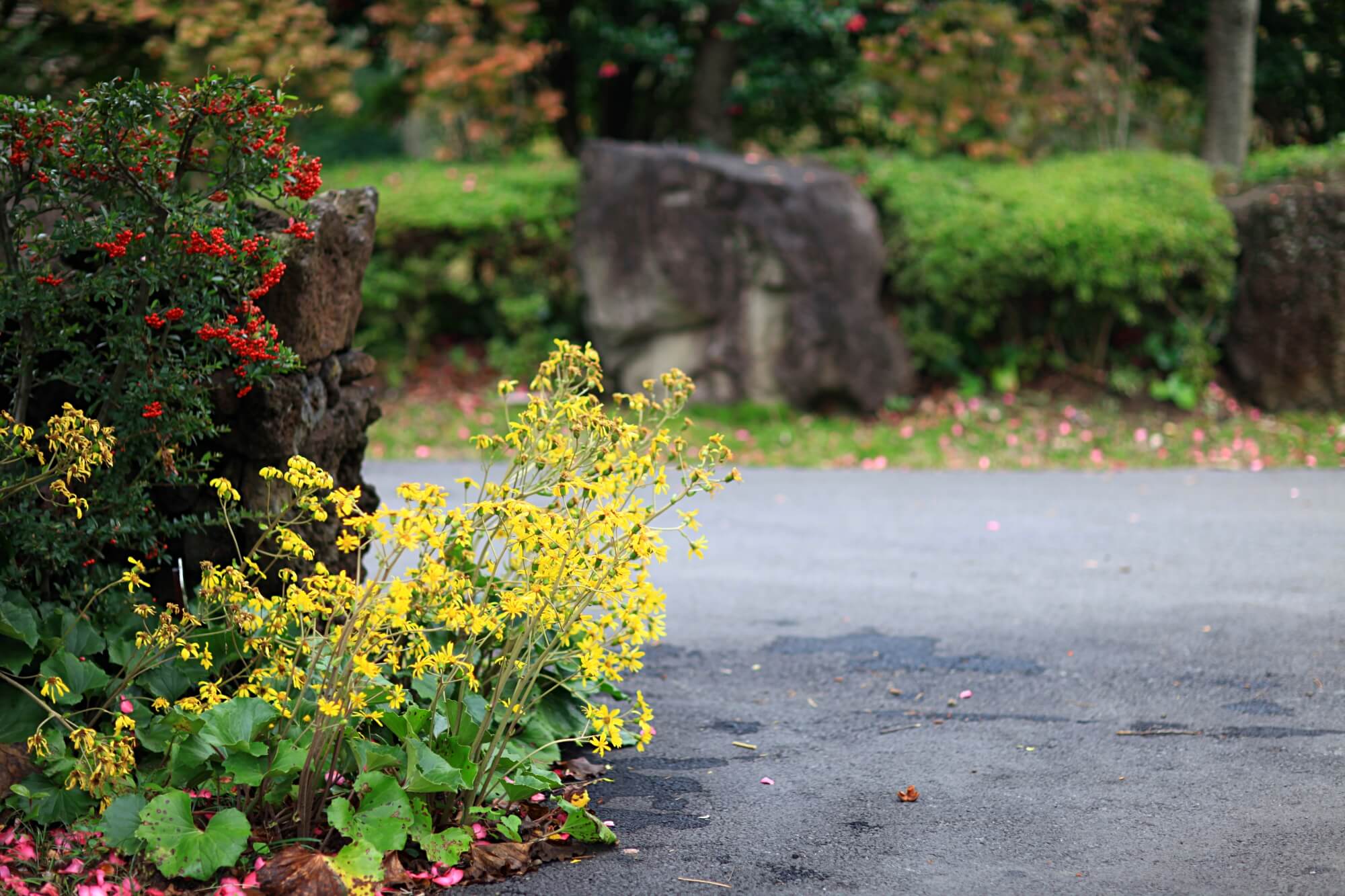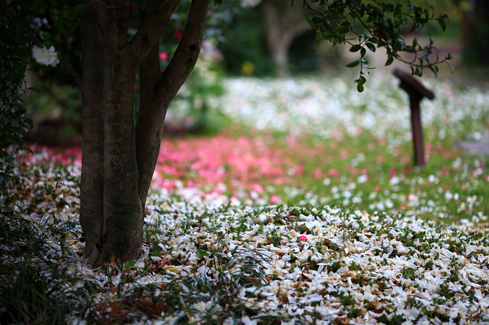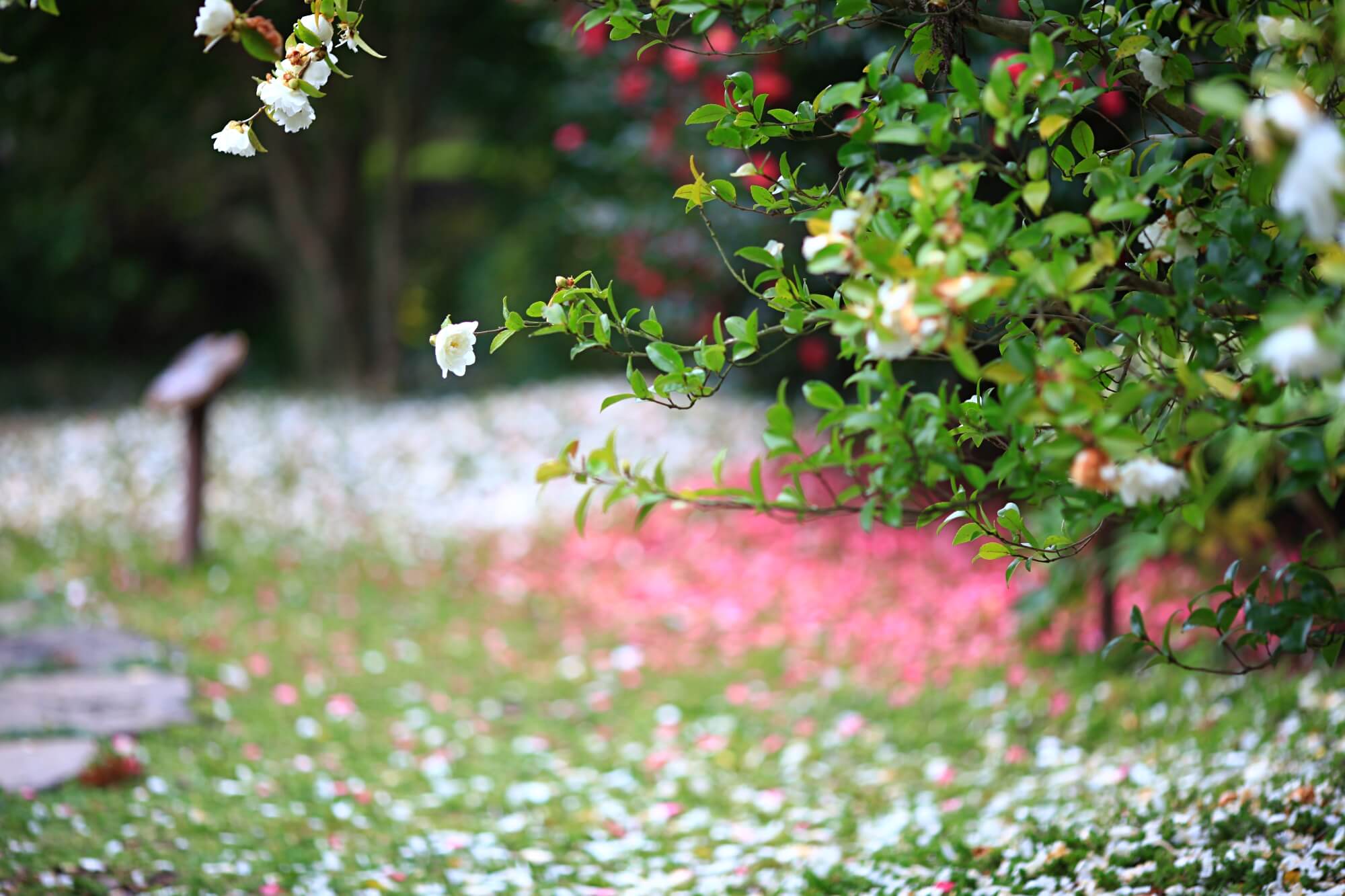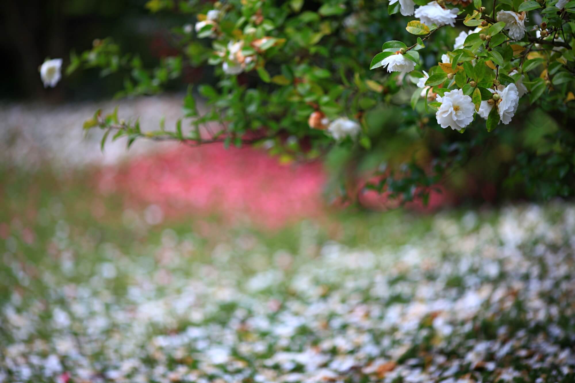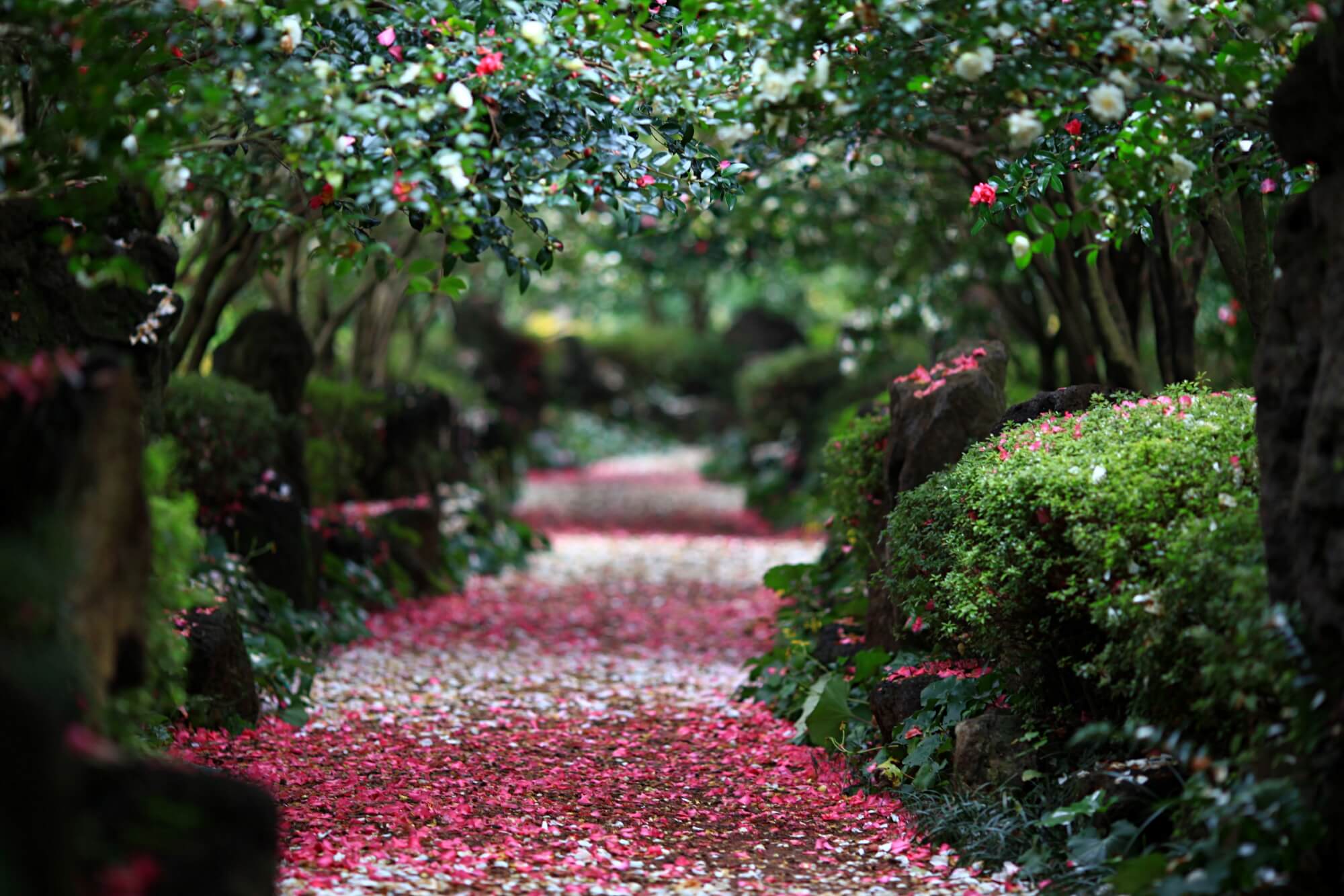 보는 화면에 따라 꽃들의 색상이 제각각 달라보일텐데요. 사진은 모두 보정하지 않은 원본입니다. DSLR카메라 단렌즈로 촬영했어요. 이 꽃잎들을 차마 밟고 지나가지 못하겠더라구요. 사진을 찍고 또 찍고 한참을 찍어도 다른 사람들이 오지 않았어요. 그래서 결국은 함께한 사람들이 먼저 이 길을 걸어갔습니다.