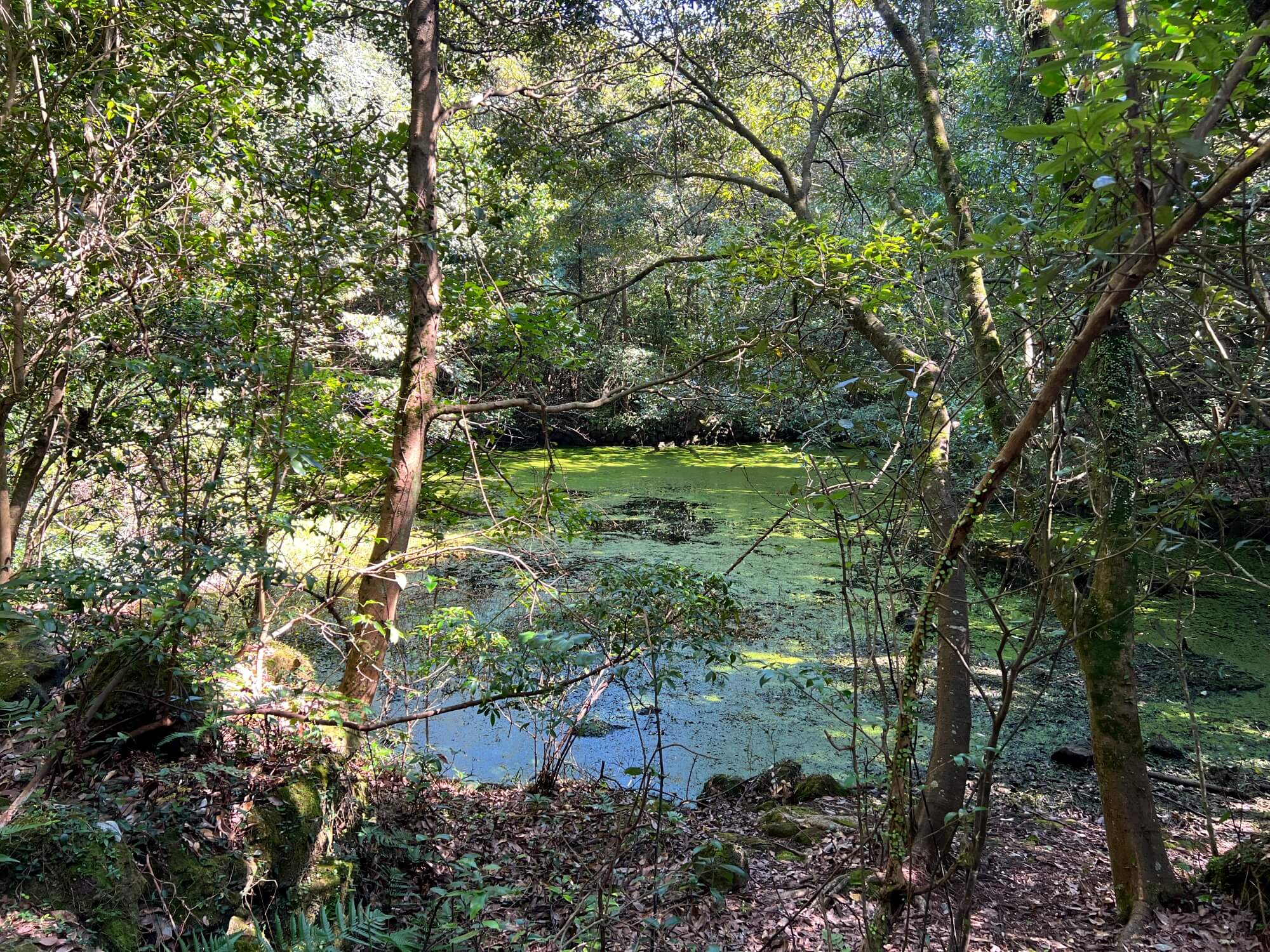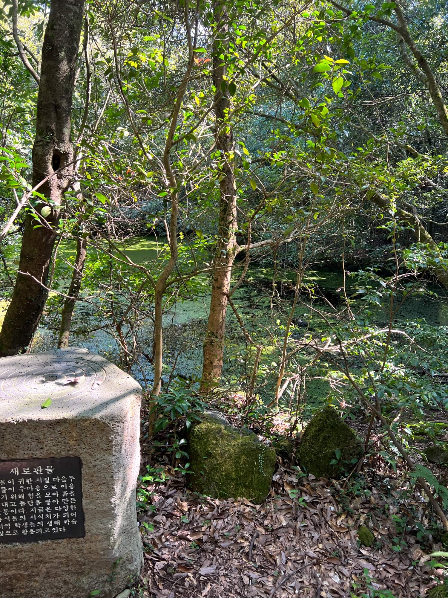 | 동백동산은 화산이 폭발해 흘러내린 용암이 쪼개지면서 형성된 곶자왈이라고 합니다. 곶자왈은 보통 연못이 만들어지기에 어려운 구조라고 하는데요, 용암이 식을 때 부서지지 않고 판형으로 남아있는 지형에는 물이 빠져나가지 않고 고여있게 되는데 이를 '파호이호이용암'이라 부른다네요. 그 유일한 것이 동백동산이라고 합니다. |