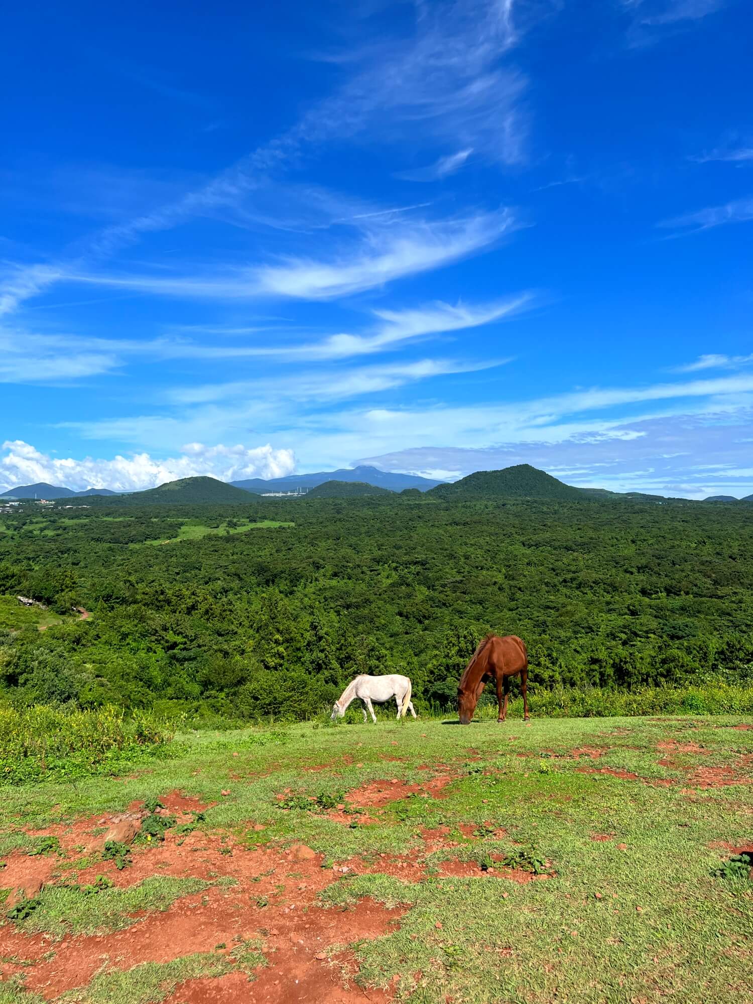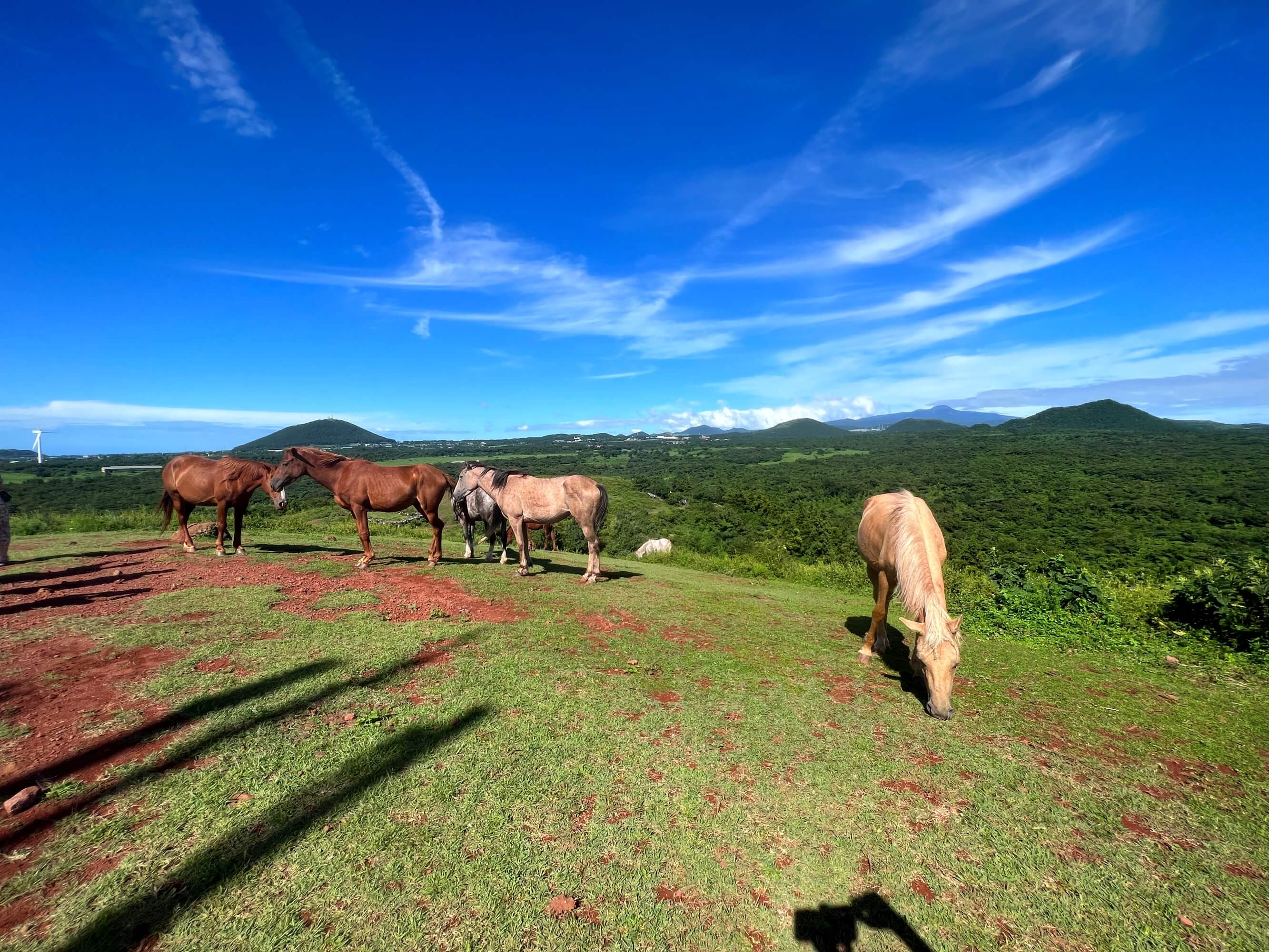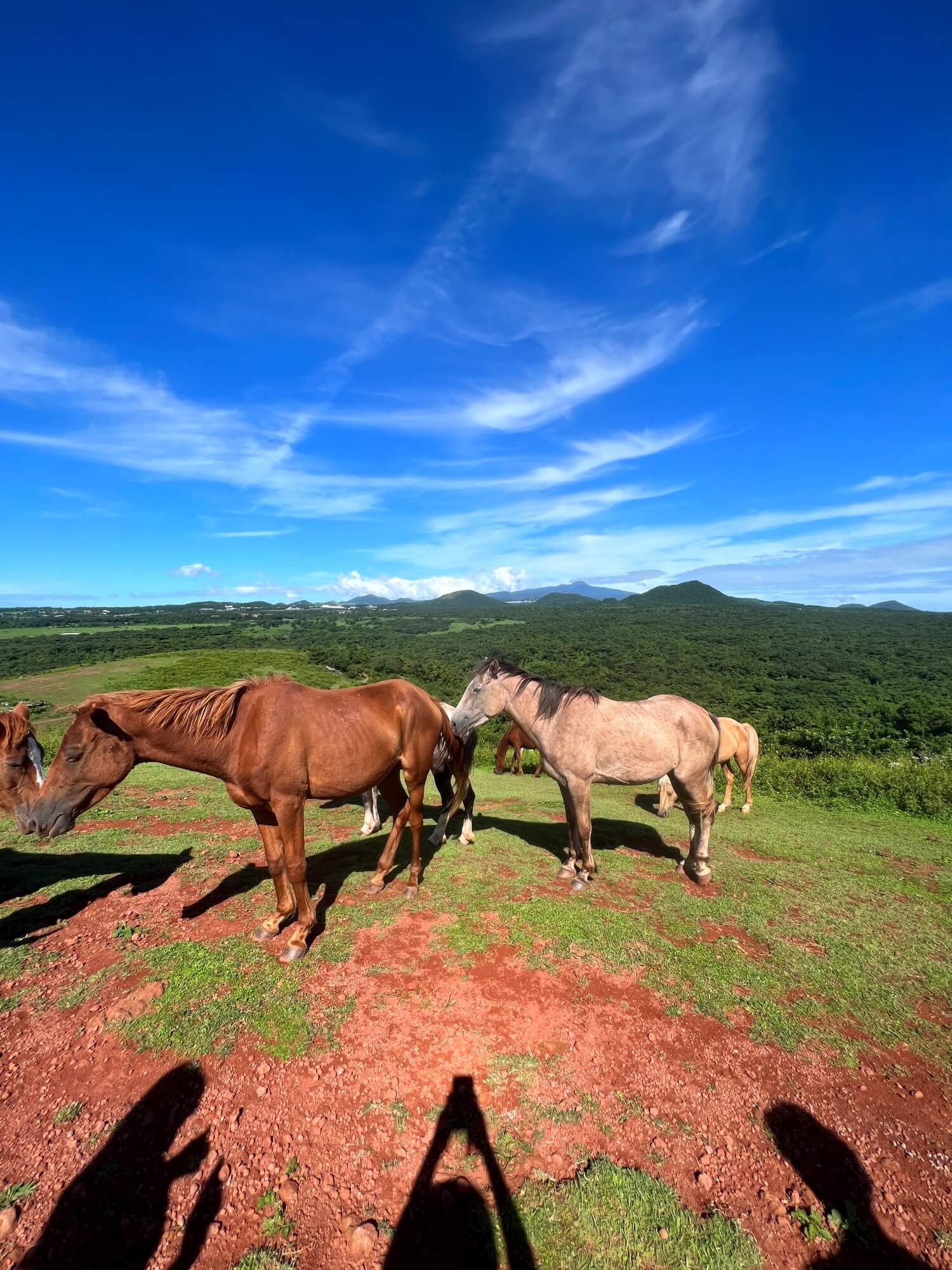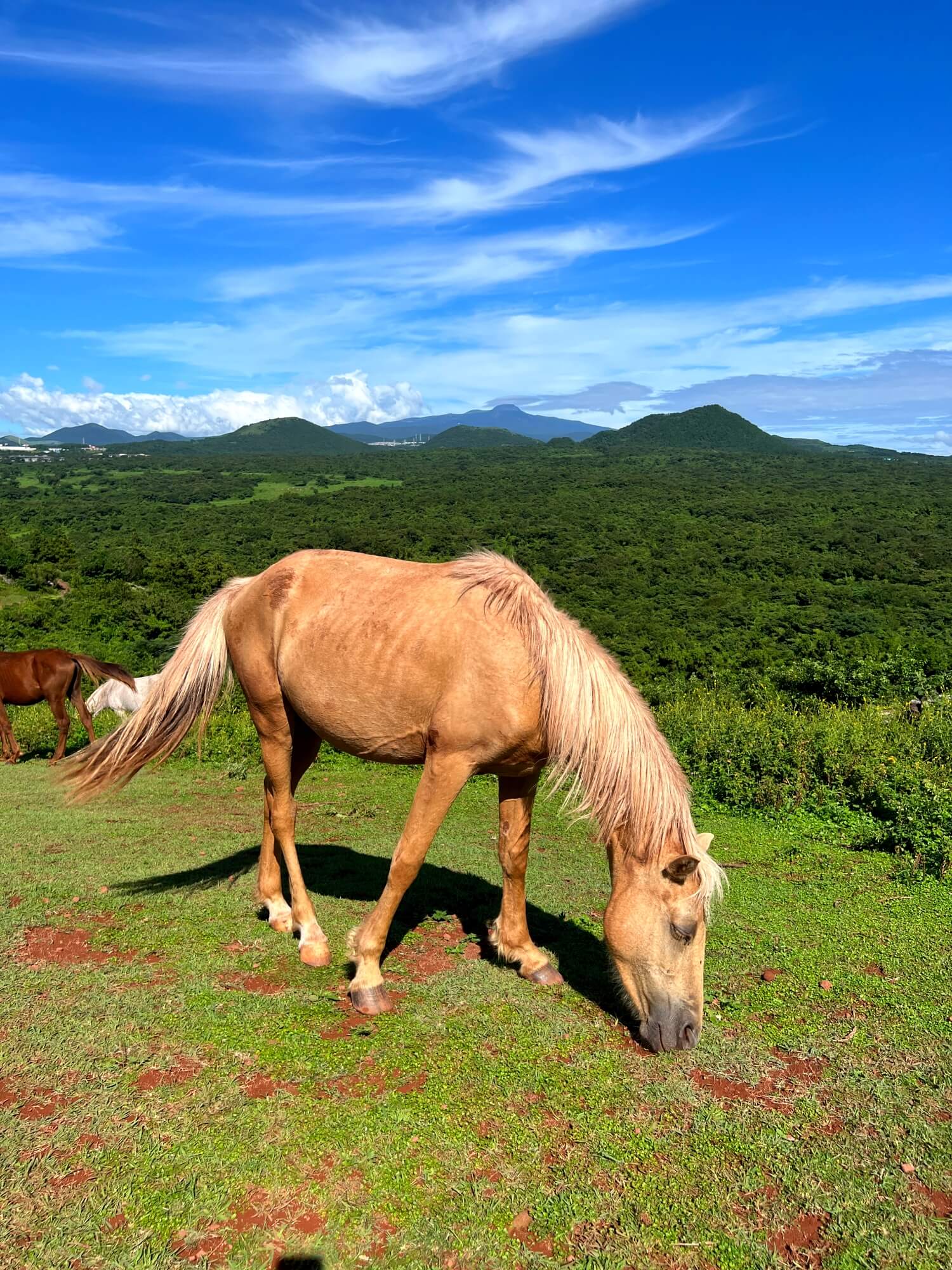 한라산이 정면으로 바라다 보이고 곶자왈로 둘러싸여 있는 주변이 정말 자연속에 들어와있는 기분이었습니다. 사람들은 말과 함께 사진찍으며 인생샷을 담기에 바빴습니다. 그런 말들은 아랑곳하지 않고 즐기는 듯 서있었어요. 말과 함께 하는 오름의 풍경은 행운이 조금 따라야 될 것 같습니다.